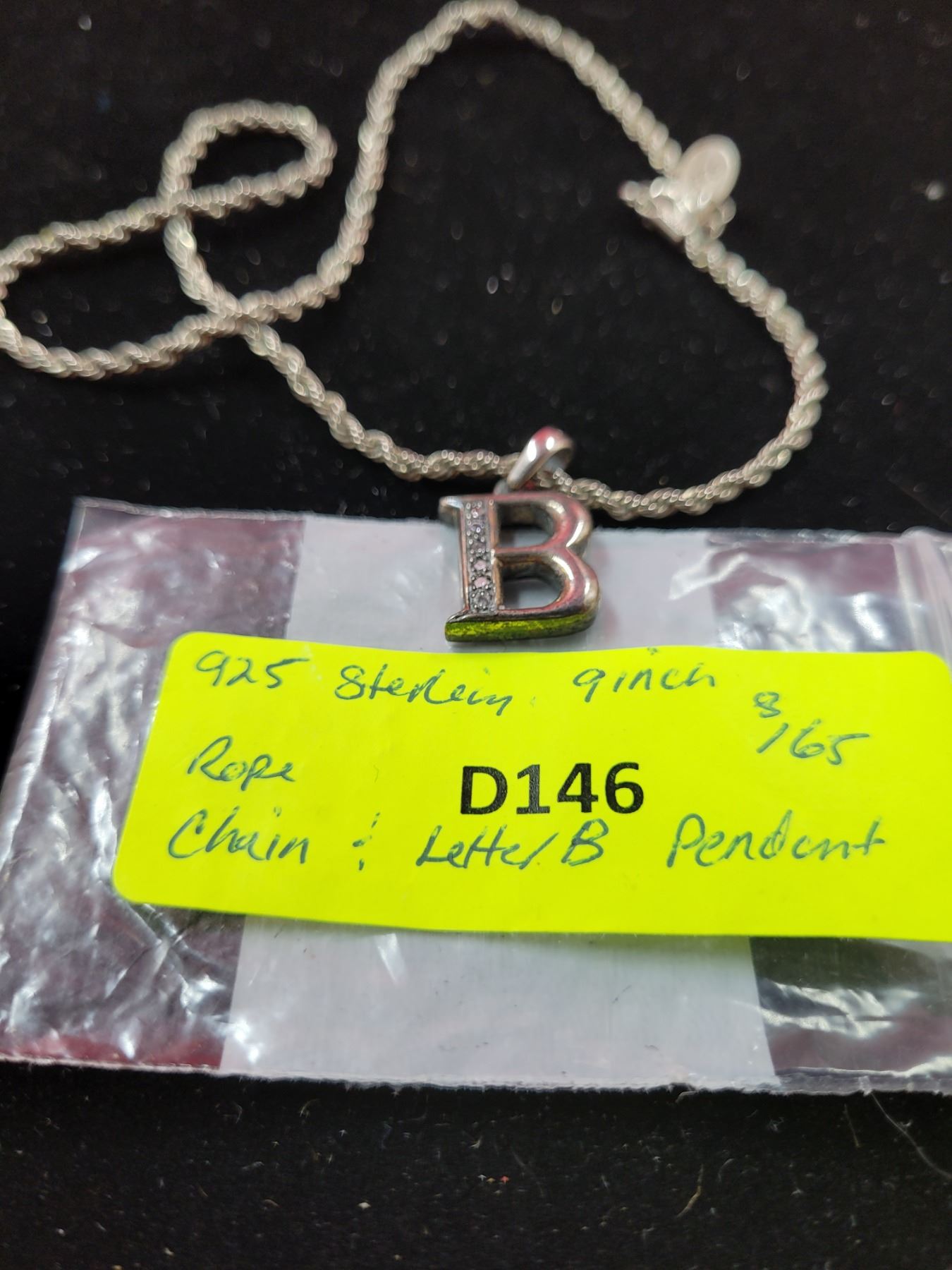 925 Sterling Rope Chain & Letter B Pendant
