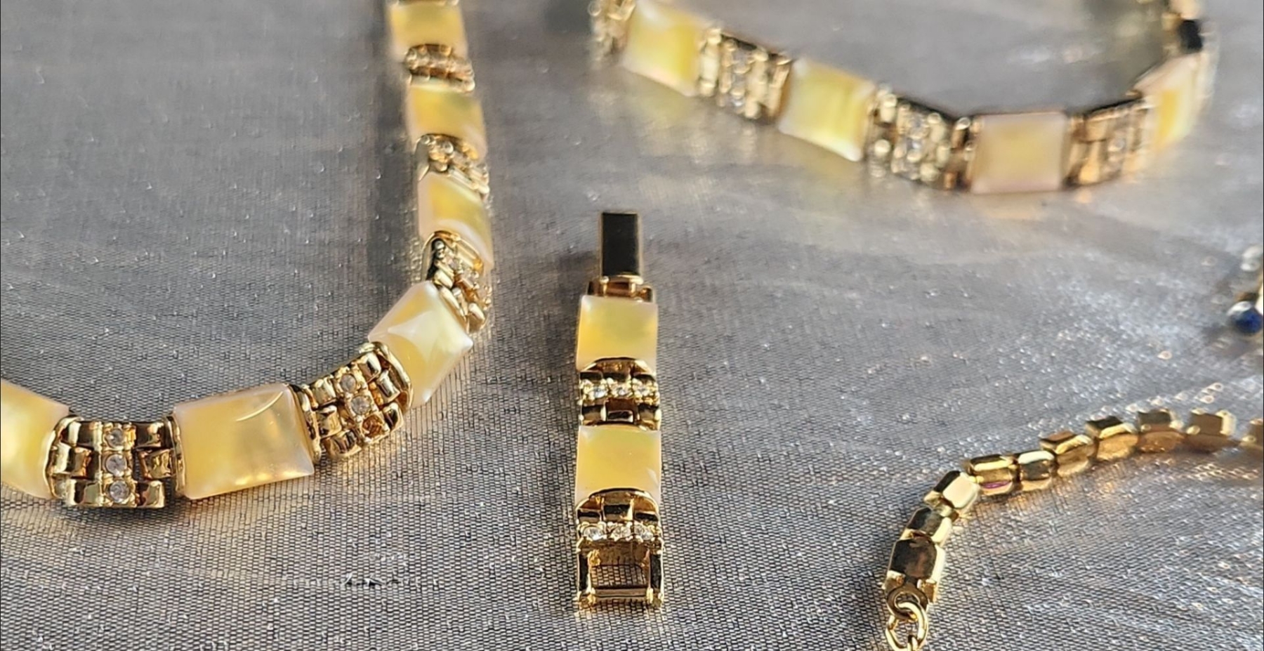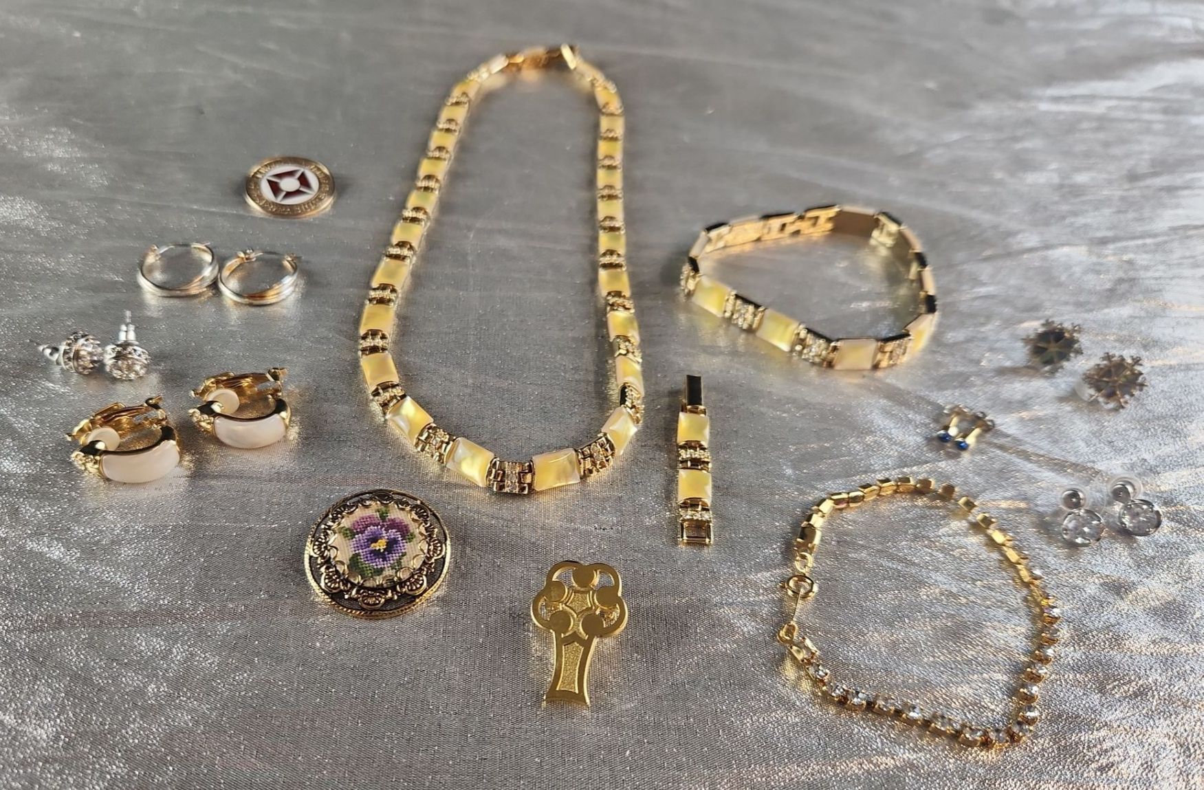 This Collection Features a Variety of Vintage and Costume Jewelry Pieces, Including 1980s BUTLER Gold-Toned Necklaces, Bracelets, Earrings, and a Decorative Floral Brooch. Some Are Stamped *Non-Verified Precious Metal*