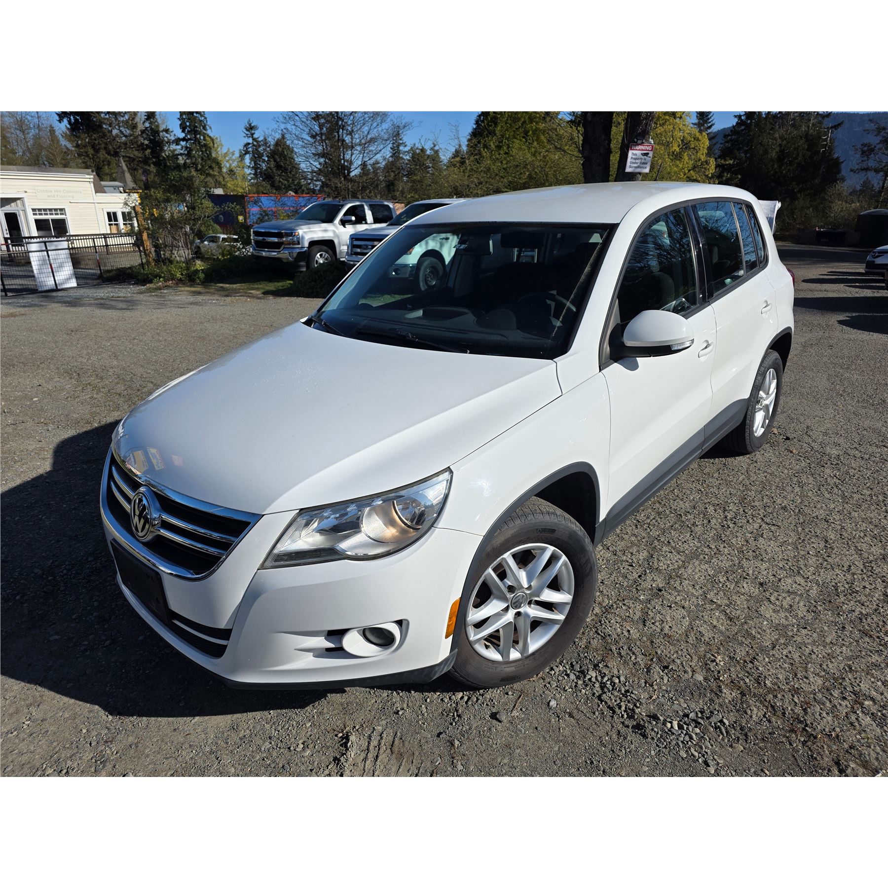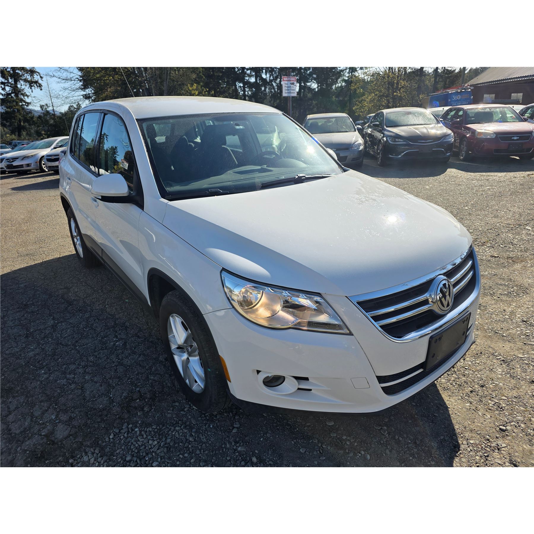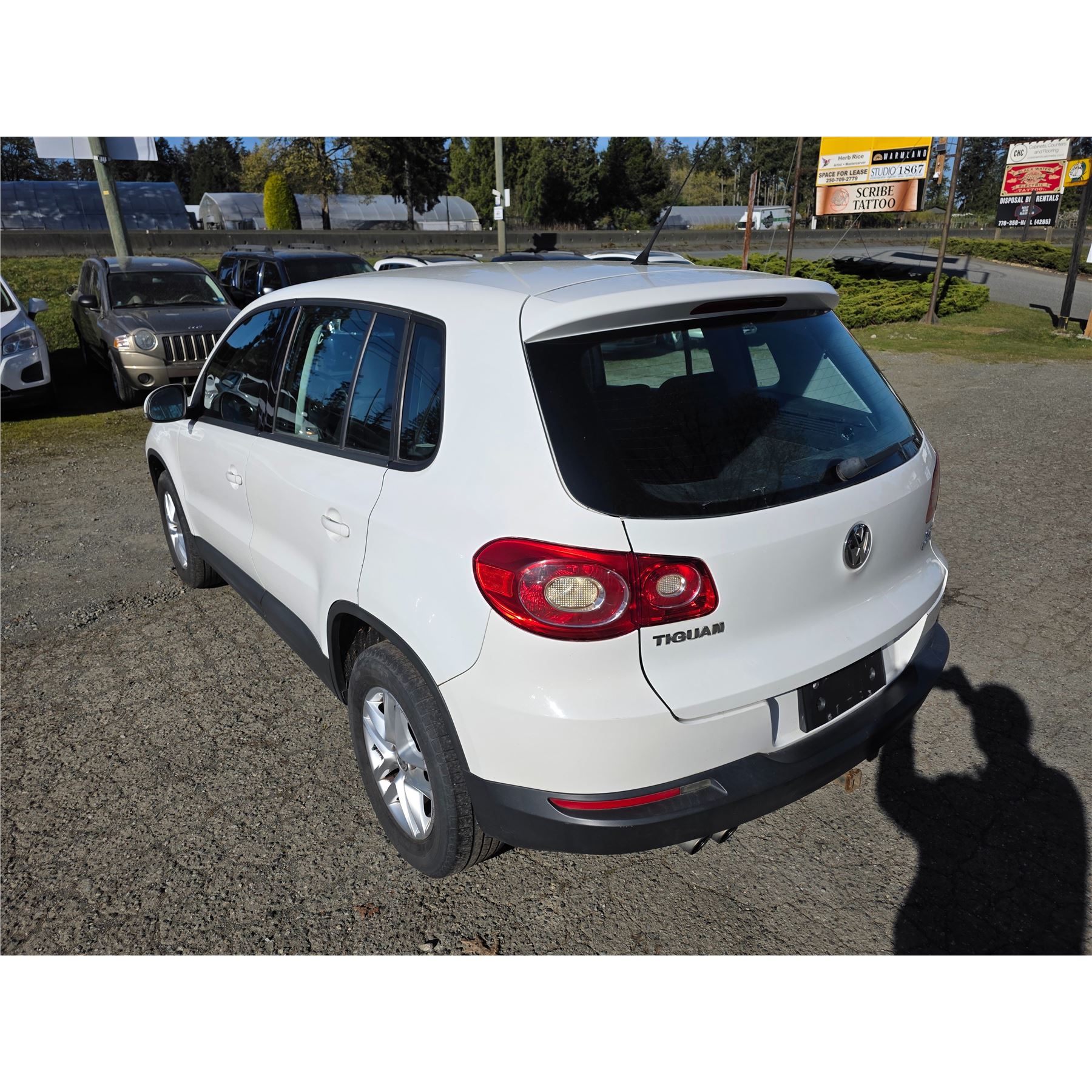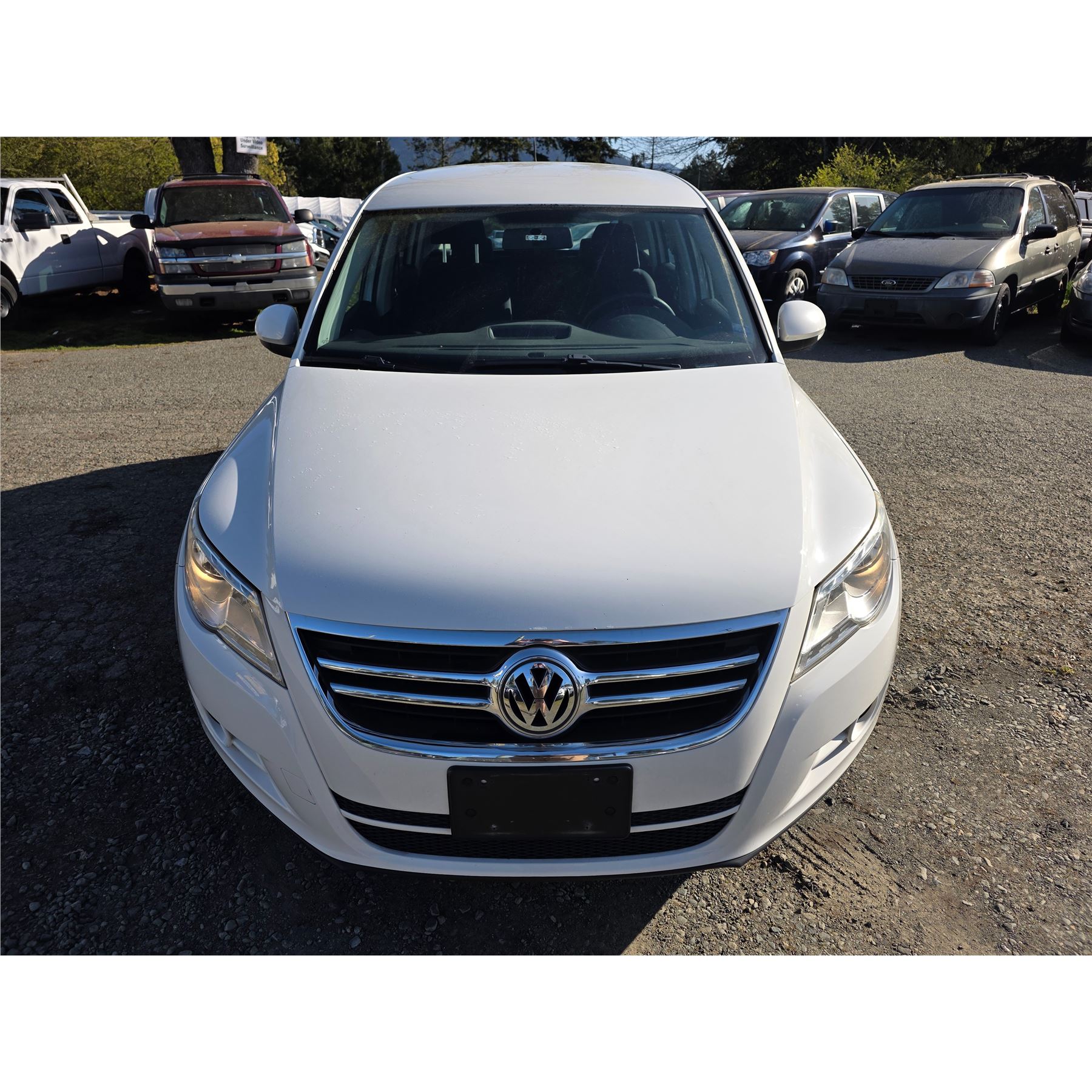 2011 VOLKSWAGEN TIGUAN 216714 KMS 2.0L GASOLINE AUTOMATIC AWD 5 PASSENGERS AIR CONDITIONING, POWER WINDOWS, POWER LOCKS, POWER MIRRORS, DUAL AIR BAGS, KEY-LESS ENTRY, CRUISE CONTROL, TILT STEERING, BLUETOOTH, TRACTION CONTROL, ALLOY WHEELS, CD PLAYER, HEATED SEATS, HEATED MIRRORS, FOG LIGHTS DESIGNATIONS 3 ACCIDENT 1 GLASS CLAIM TOTALING $5240 NOT MECHANICALLY INSPECTED, NOT SUITABLE FOR TRANSPORTATION. MUST TOW. 7 RECORDS OF SERVICE