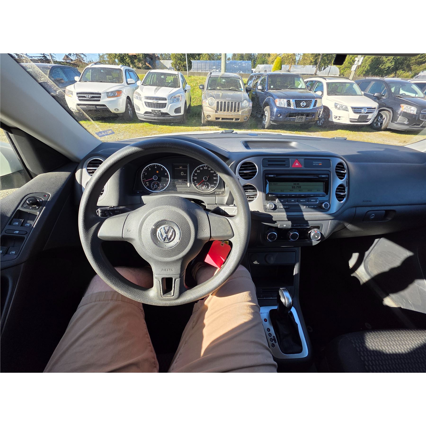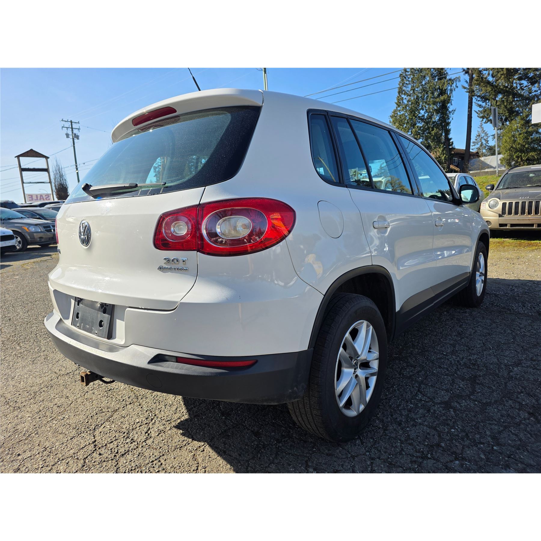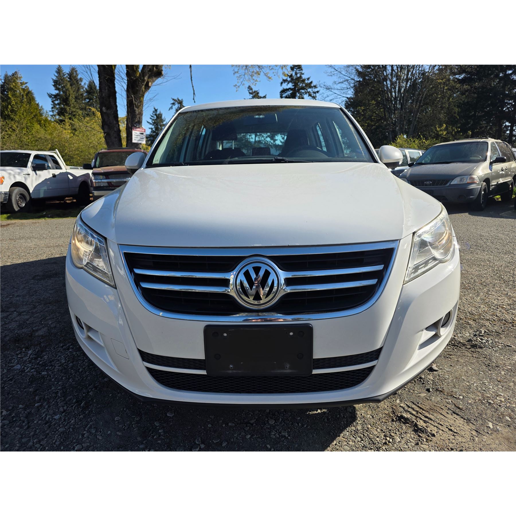 2011 VOLKSWAGEN TIGUAN 216714 KMS 2.0L GASOLINE AUTOMATIC AWD 5 PASSENGERS AIR CONDITIONING, POWER WINDOWS, POWER LOCKS, POWER MIRRORS, DUAL AIR BAGS, KEY-LESS ENTRY, CRUISE CONTROL, TILT STEERING, BLUETOOTH, TRACTION CONTROL, ALLOY WHEELS, CD PLAYER, HEATED SEATS, HEATED MIRRORS, FOG LIGHTS DESIGNATIONS 3 ACCIDENT 1 GLASS CLAIM TOTALING $5240 NOT MECHANICALLY INSPECTED, NOT SUITABLE FOR TRANSPORTATION. MUST TOW. 7 RECORDS OF SERVICE
