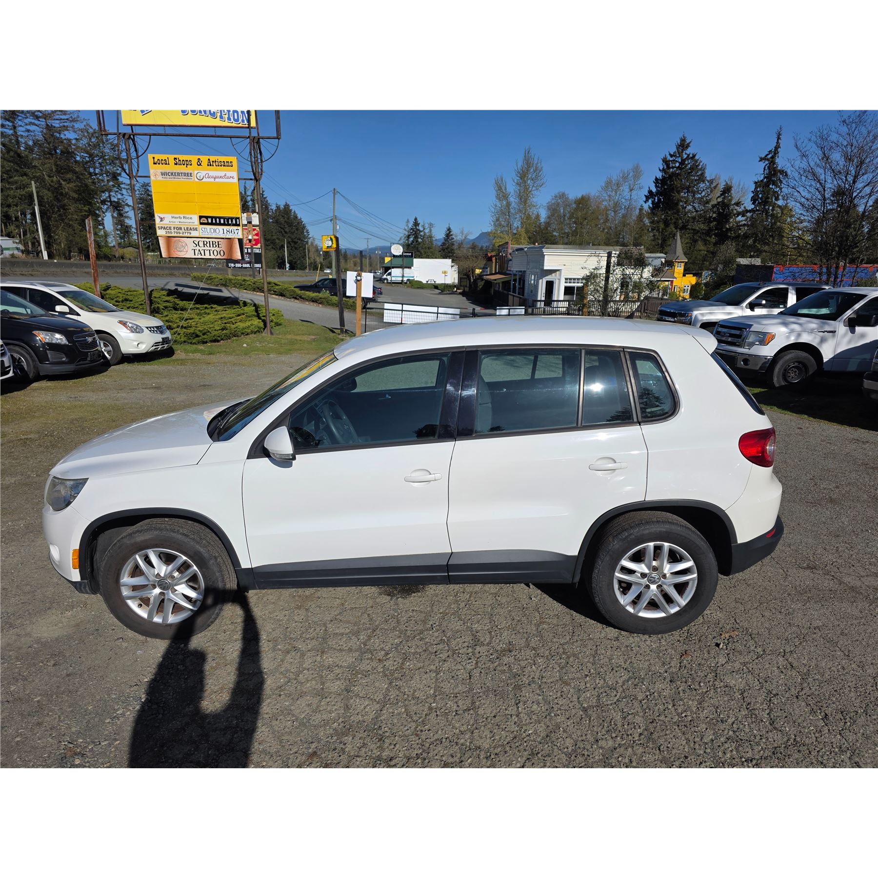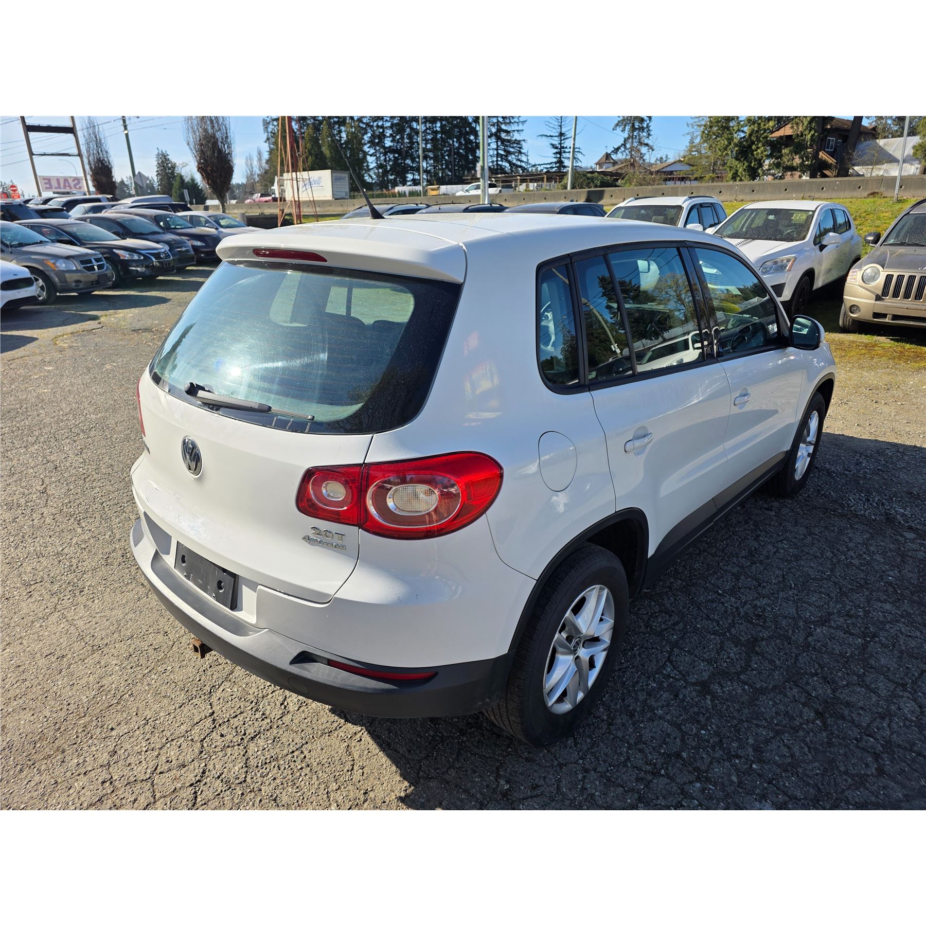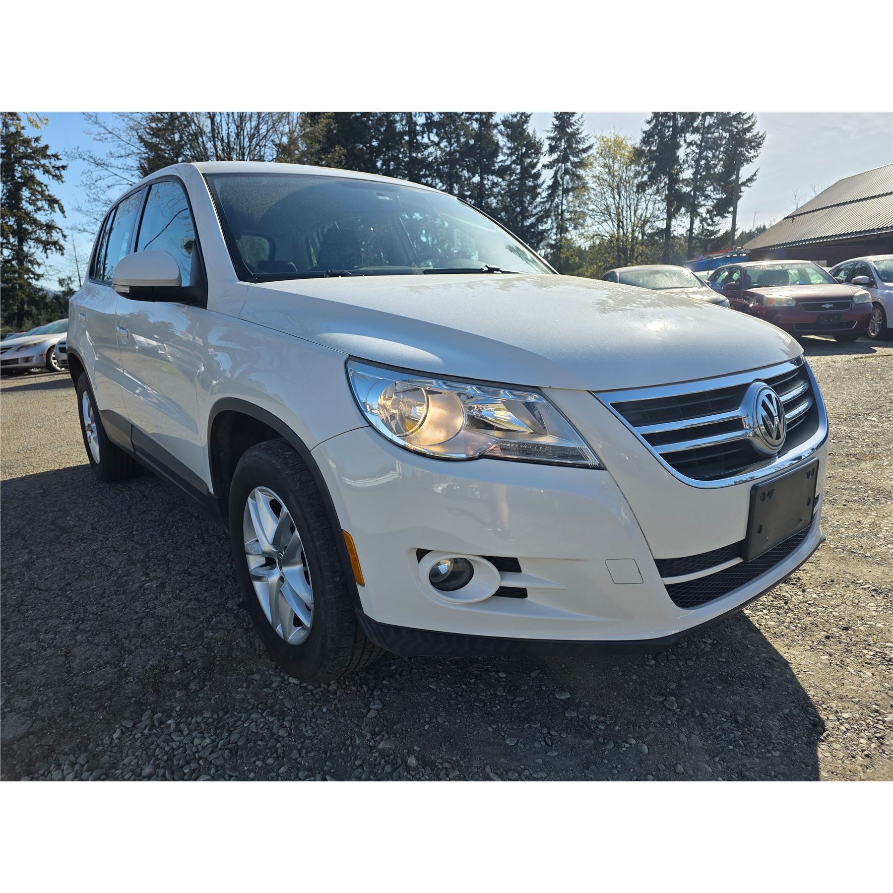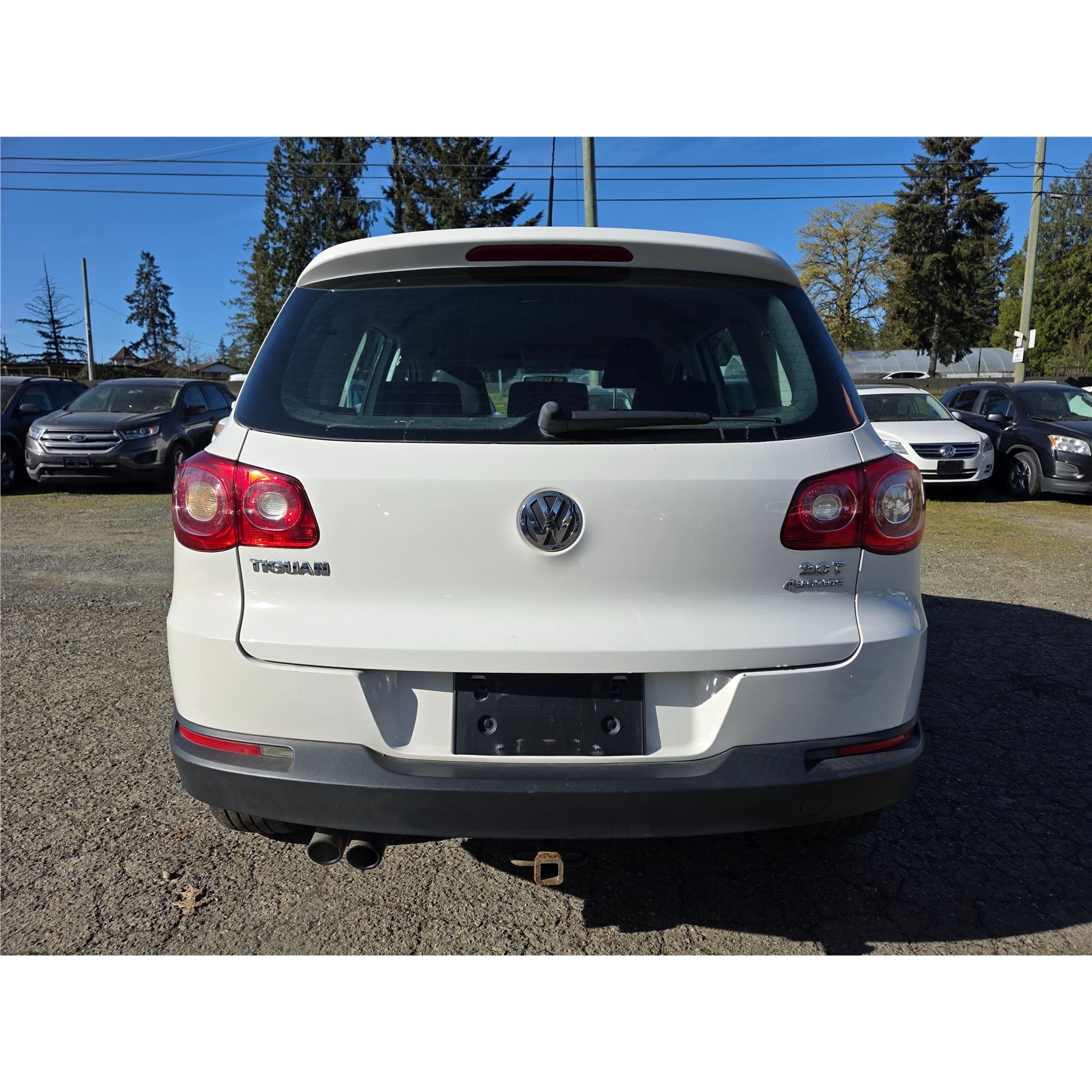 2011 VOLKSWAGEN TIGUAN 216714 KMS 2.0L GASOLINE AUTOMATIC AWD 5 PASSENGERS AIR CONDITIONING, POWER WINDOWS, POWER LOCKS, POWER MIRRORS, DUAL AIR BAGS, KEY-LESS ENTRY, CRUISE CONTROL, TILT STEERING, BLUETOOTH, TRACTION CONTROL, ALLOY WHEELS, CD PLAYER, HEATED SEATS, HEATED MIRRORS, FOG LIGHTS DESIGNATIONS 3 ACCIDENT 1 GLASS CLAIM TOTALING $5240 NOT MECHANICALLY INSPECTED, NOT SUITABLE FOR TRANSPORTATION. MUST TOW. 7 RECORDS OF SERVICE