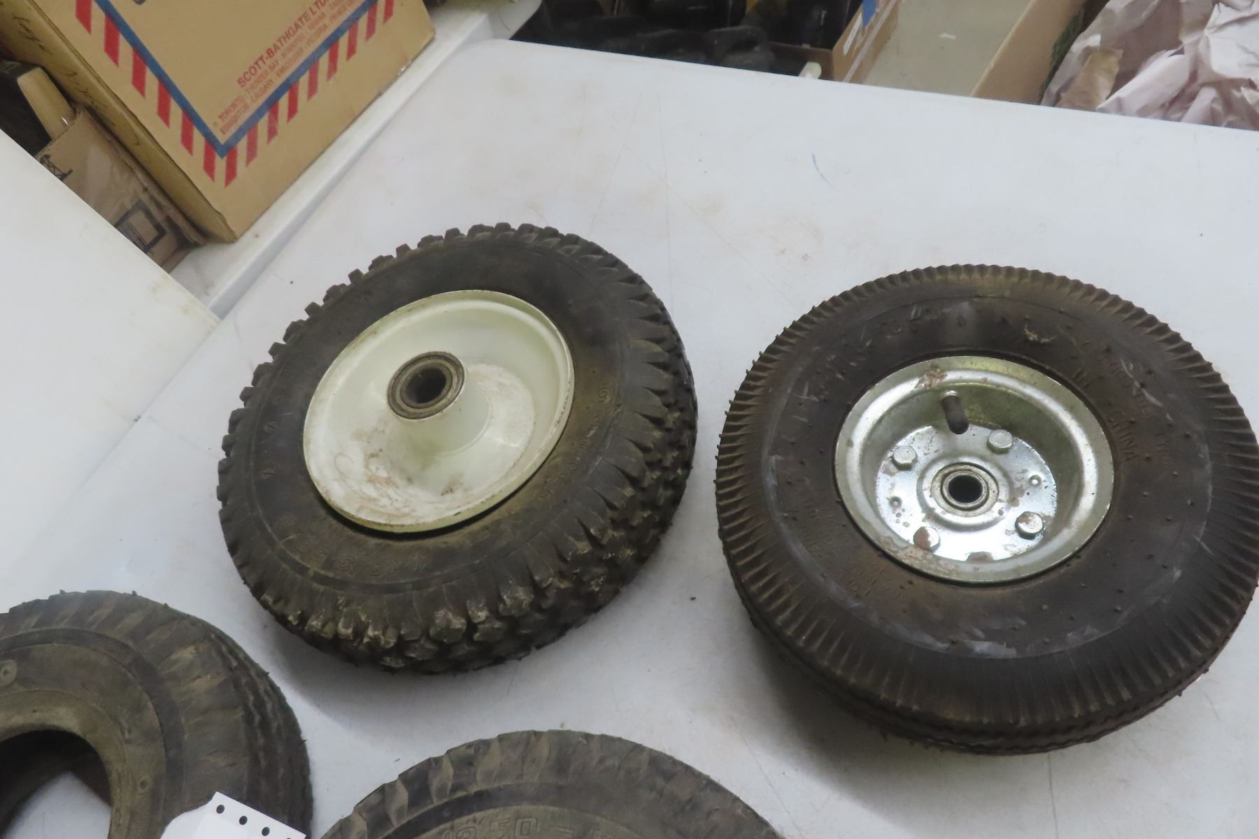 5 Tires and 2 Rims, Size 4-10/3.50-6