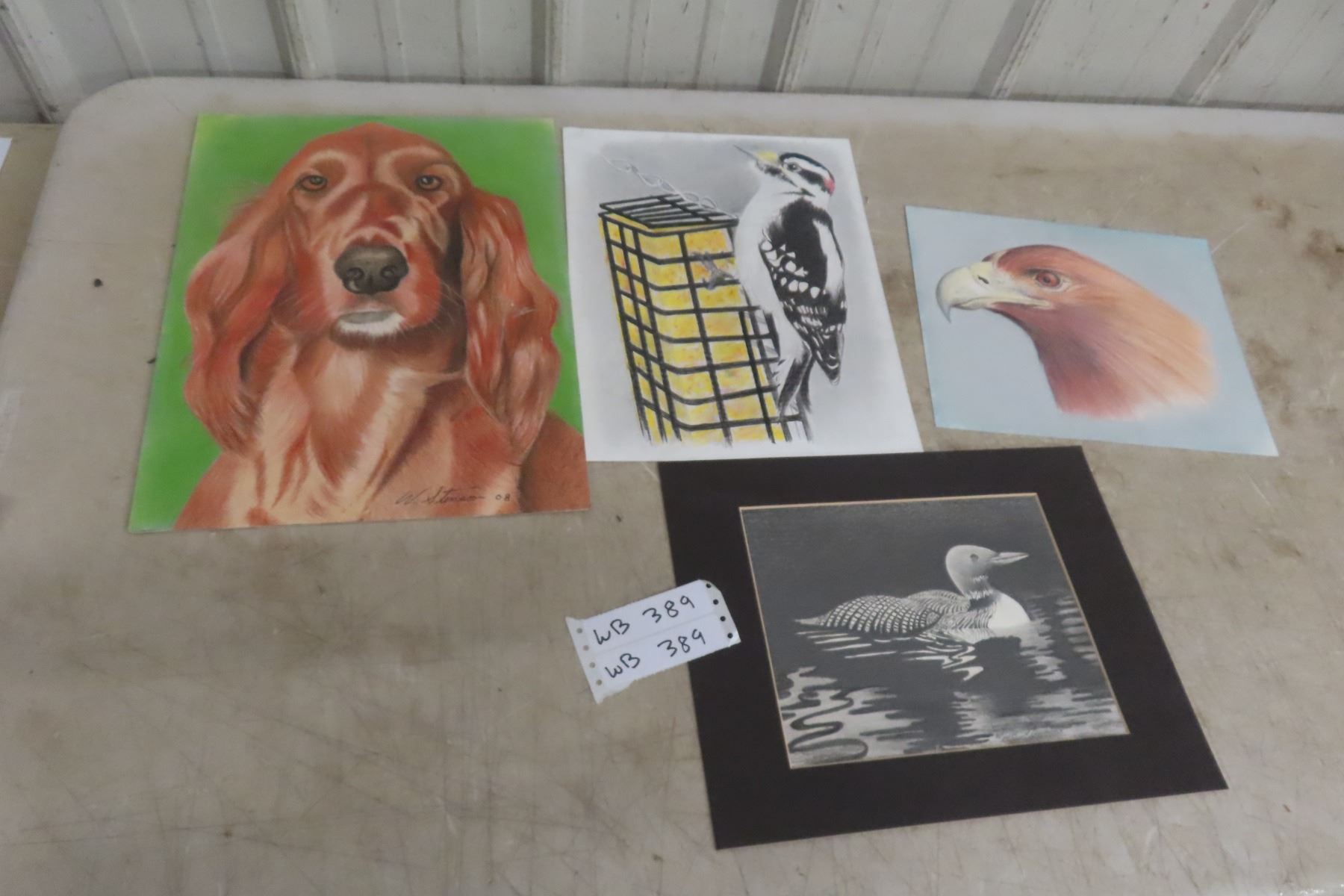 Lot 389 4 Amazing Sketch Drawings by Wayne Stinson, Canadian Artist – Wildlife and Irish Setter Dog