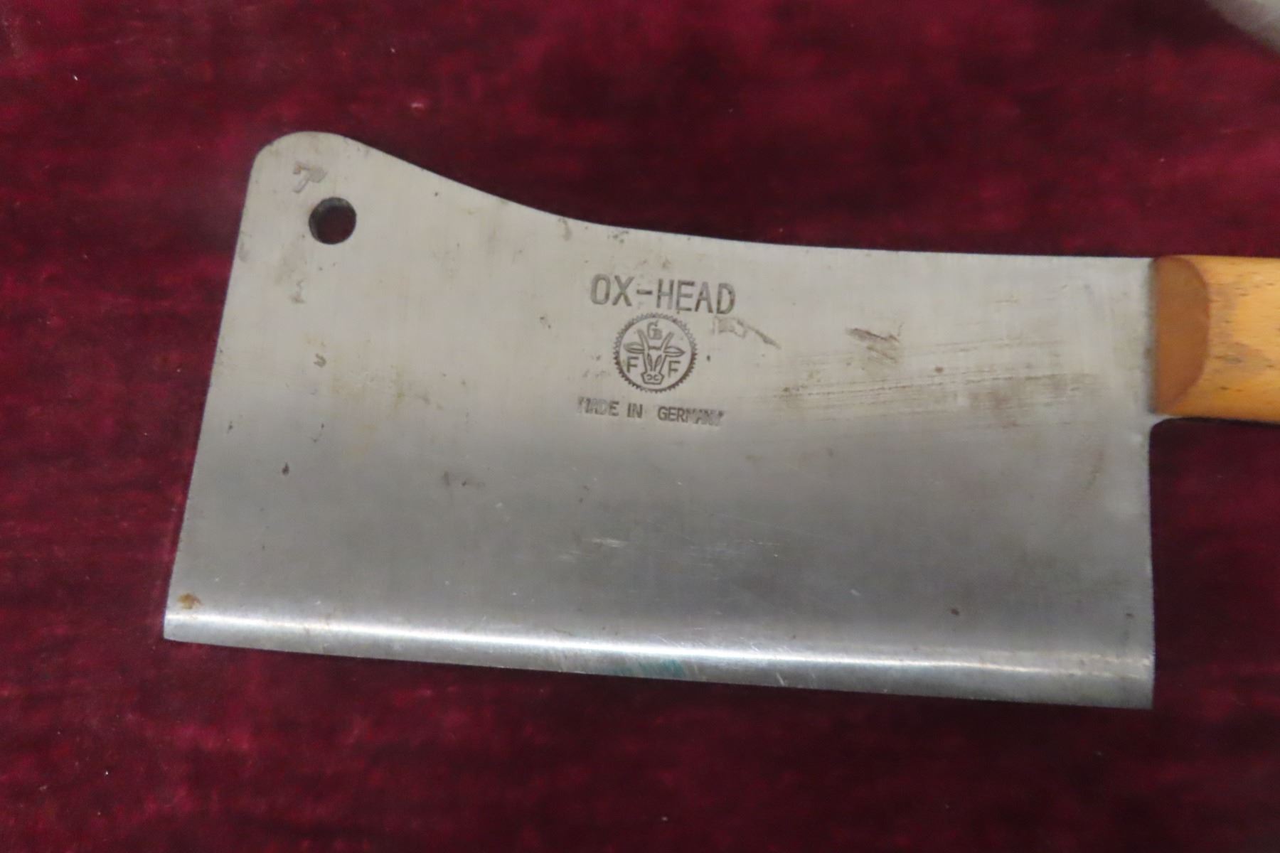 Lot 391 Vintage Ox-Head Solid Steel Butcher Meat Cleaver Knife, 7" Blade – Made in Germany