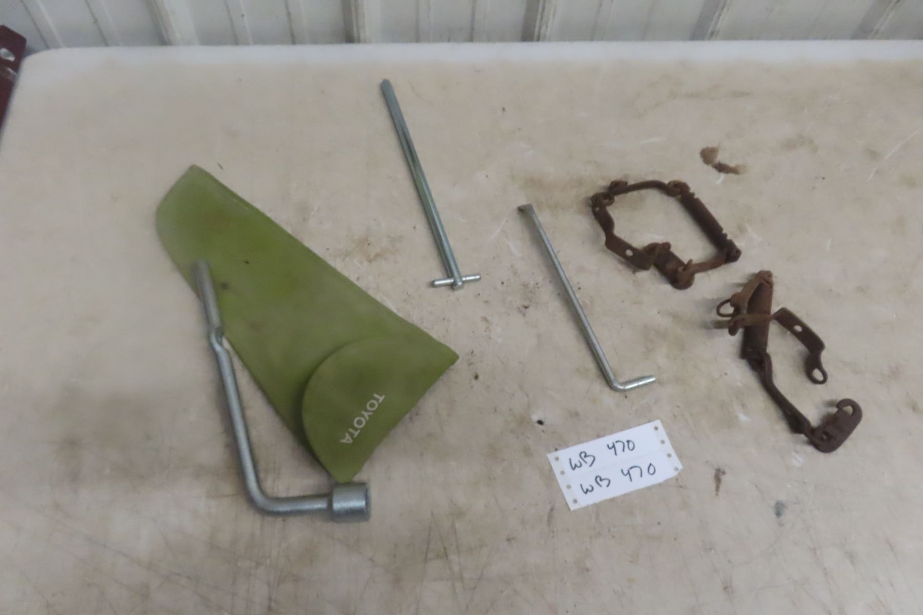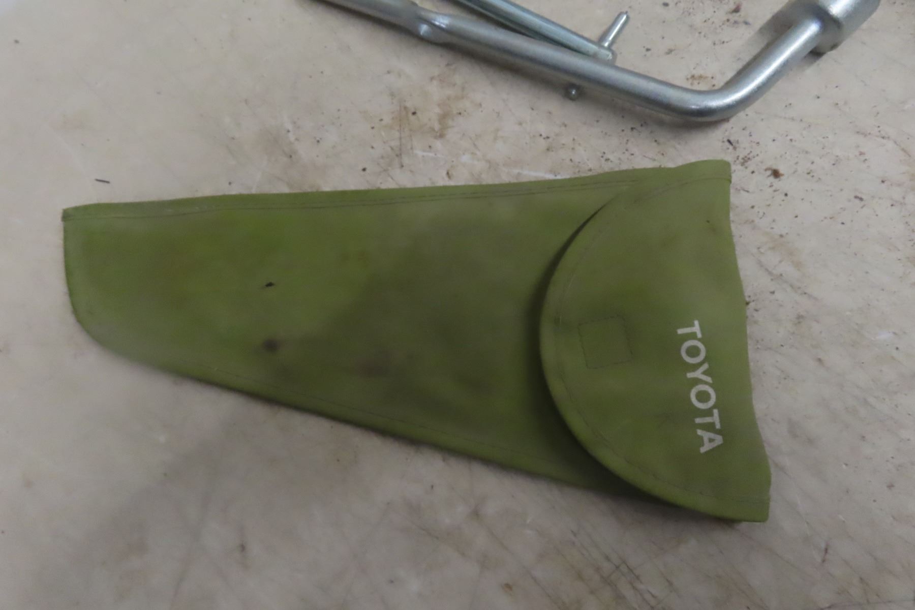 Lot 470 Vintage Toyota Tire Jack, Lug Wrench and Hub Tool Kit in Green Motor Bag, Made in Japan; and More