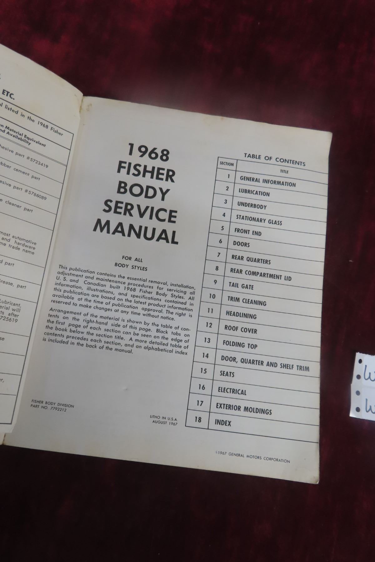 Lot 446 1968 Body by Fisher Service Automobile Manual