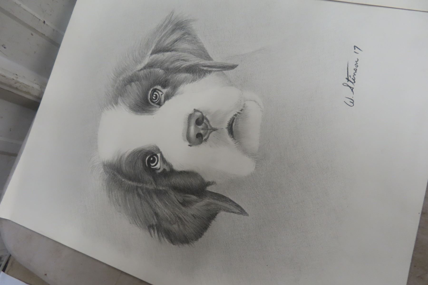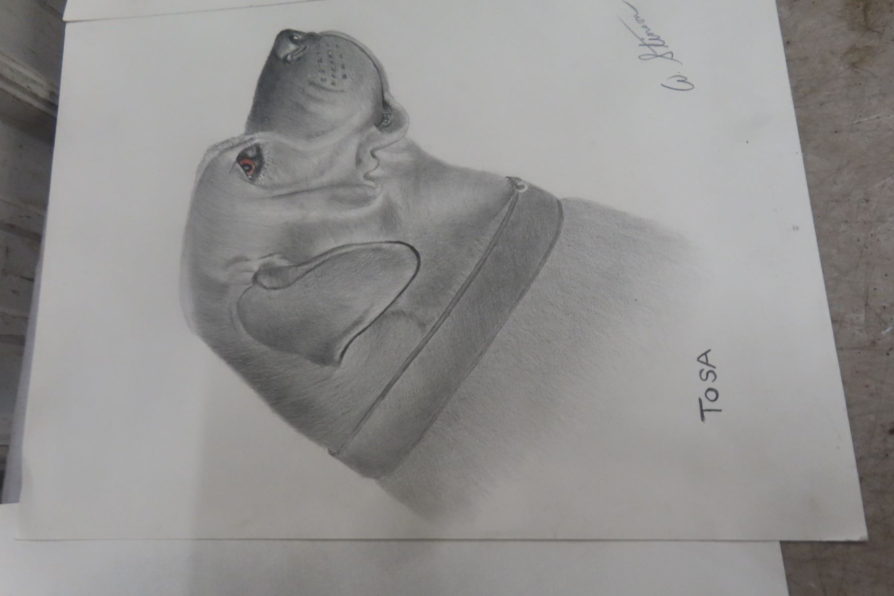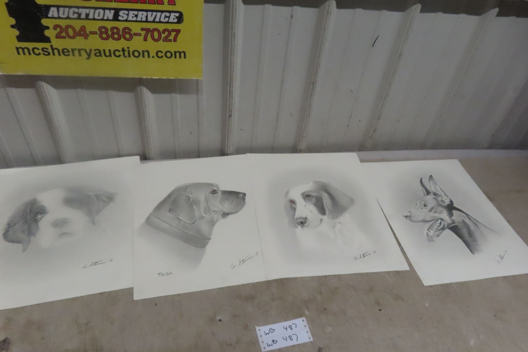 Lot 487 4 Artist-Signed Dog Sketch Drawings by Stinson: Bernese Mountain Dog, Doberman Pinscher