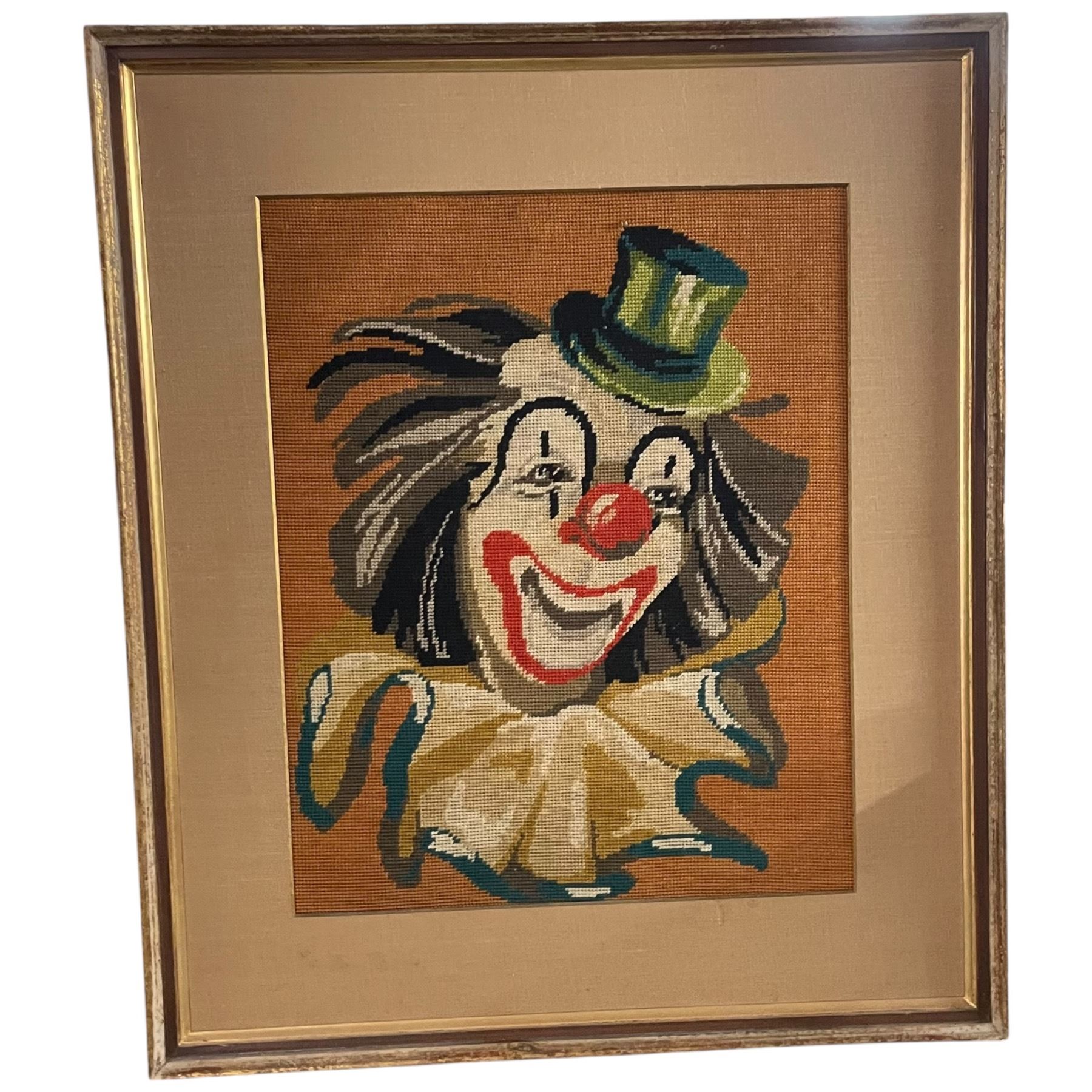 Lot 1259 Mid Century Needlepoint of a Clown 23x27"