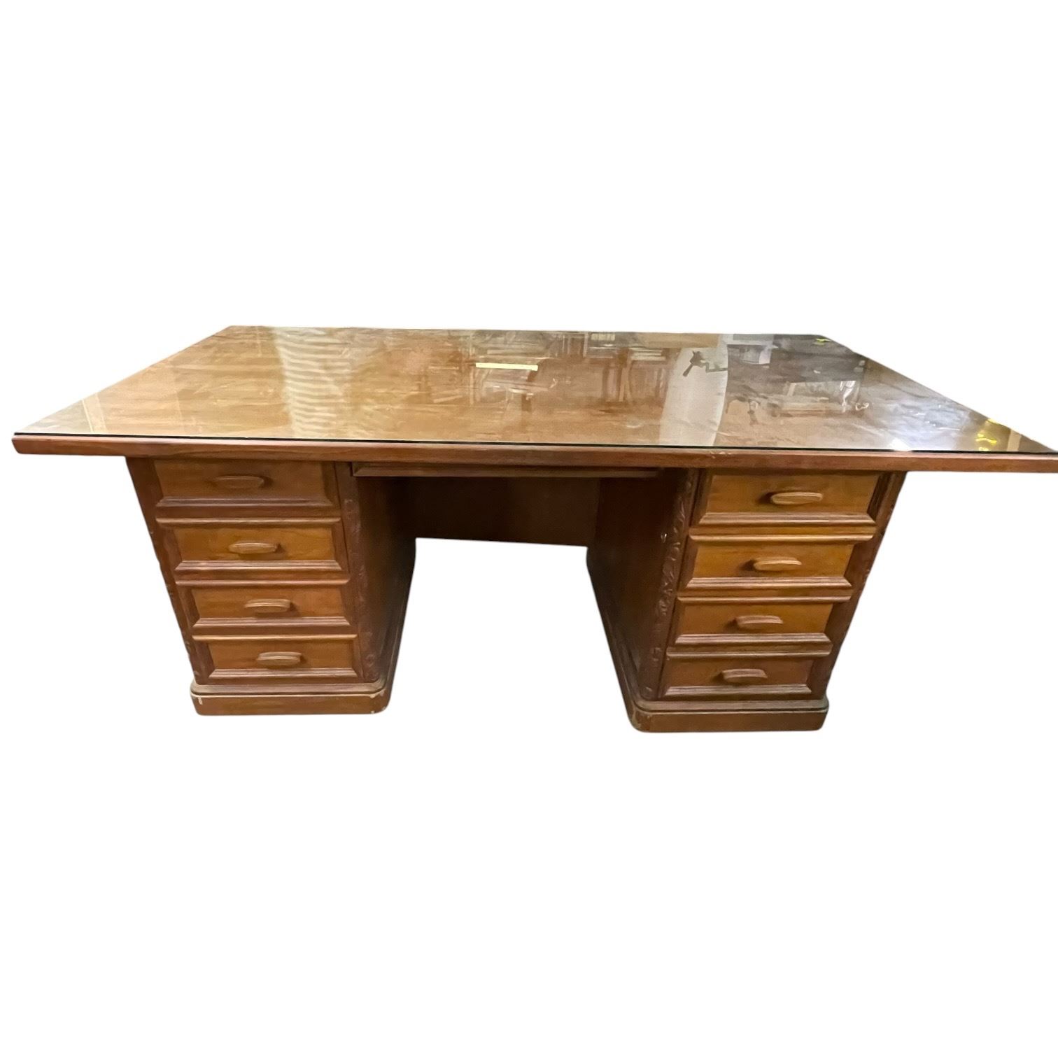 Lot 1261 Teak Stained Dutch Carved Glass Top Desk 71x36x30"