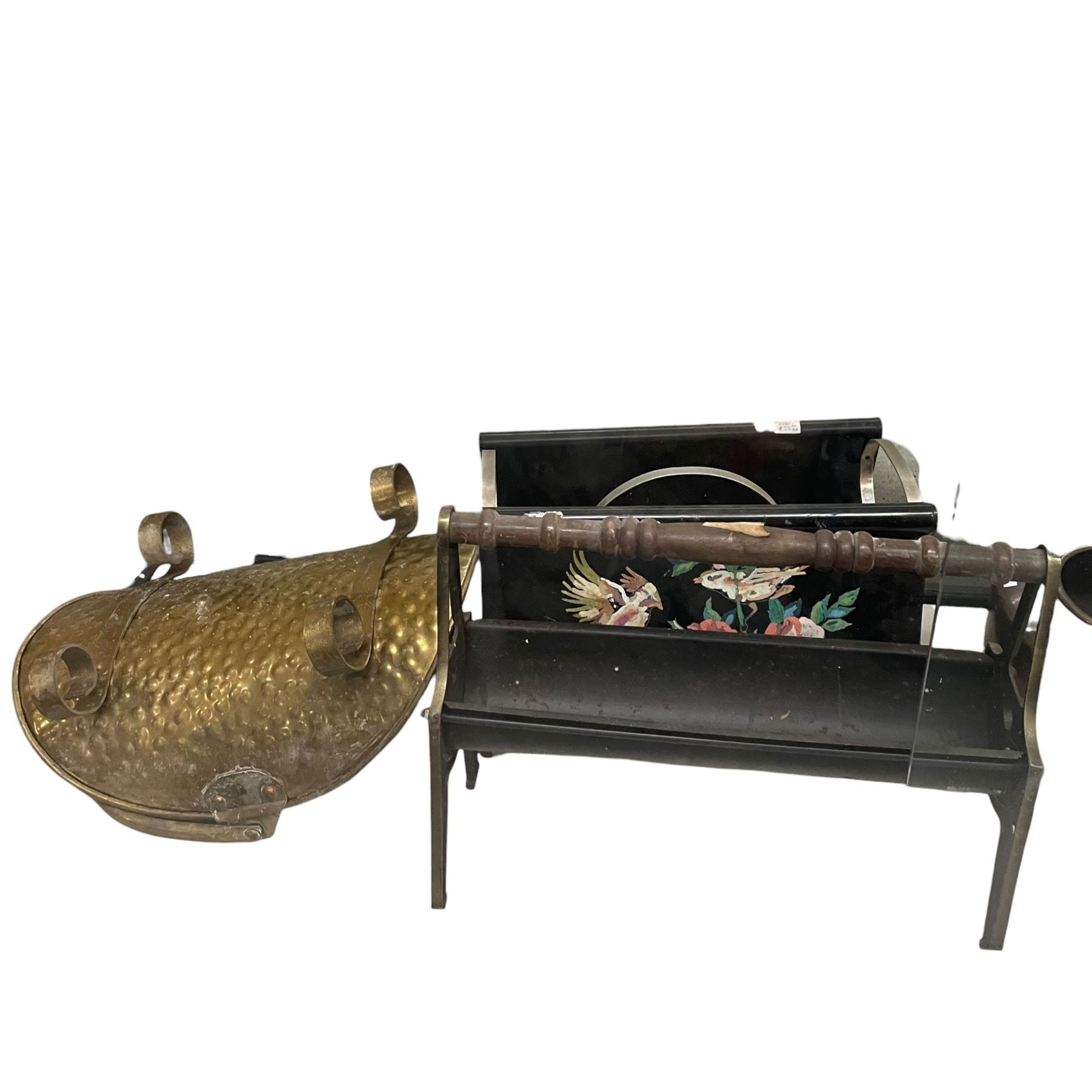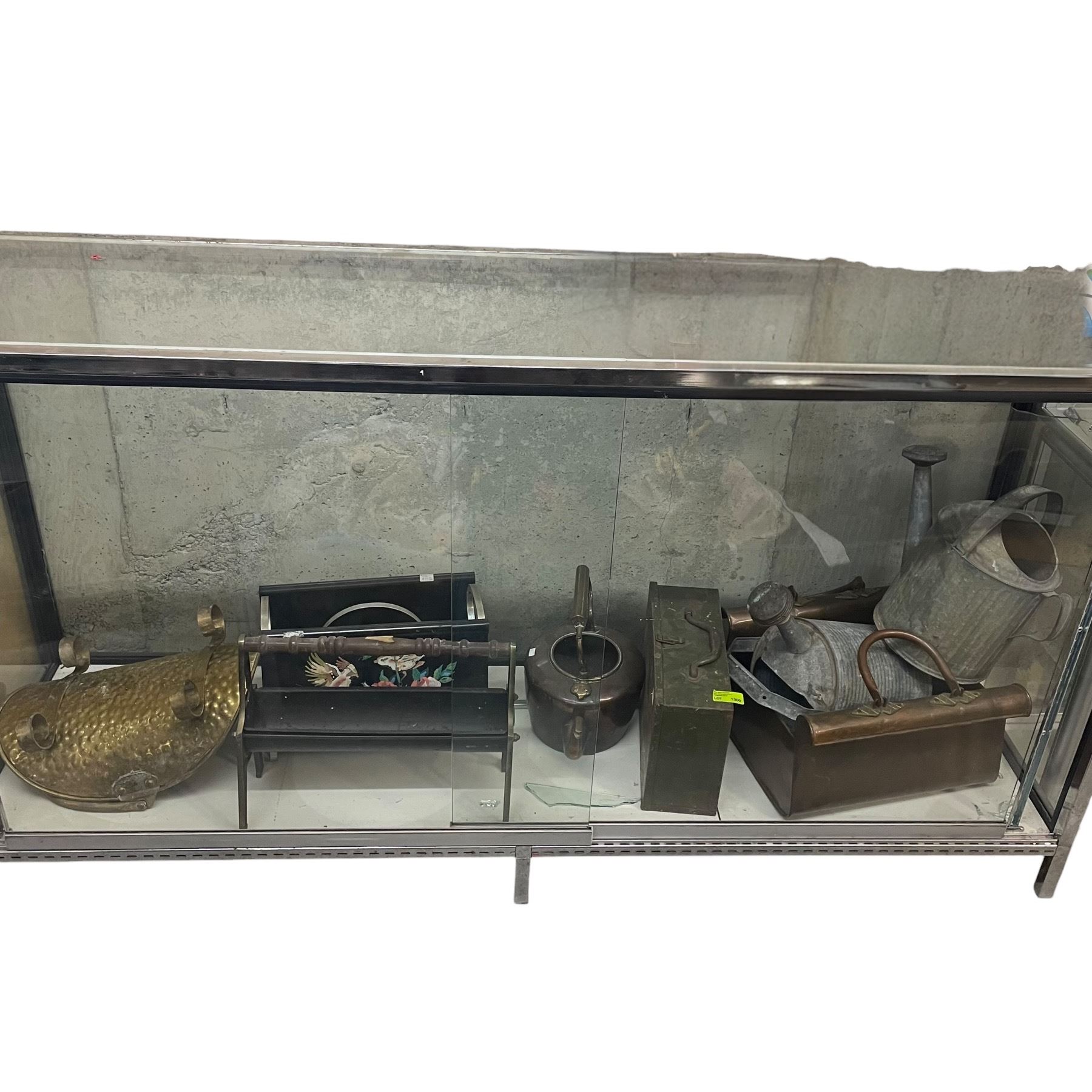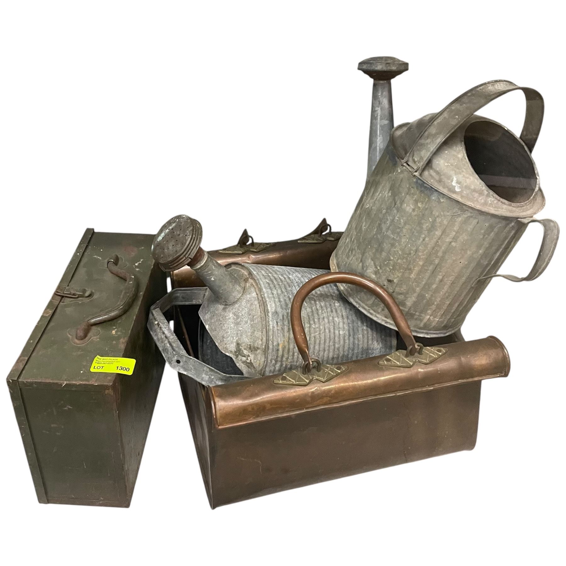 Lot 1300 Collection of Watering Cans, Firewood Baskets, Metal Case and More (Brass & Steel)