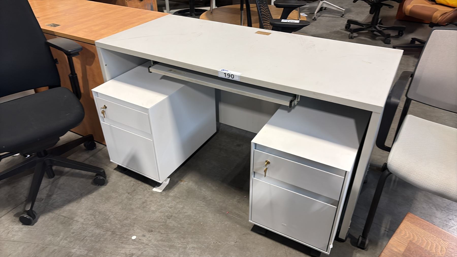 Lot 190 SMALL GREY COMPUTER TABLE AND 2 MOBILE PERSONAL FILE CABINETS