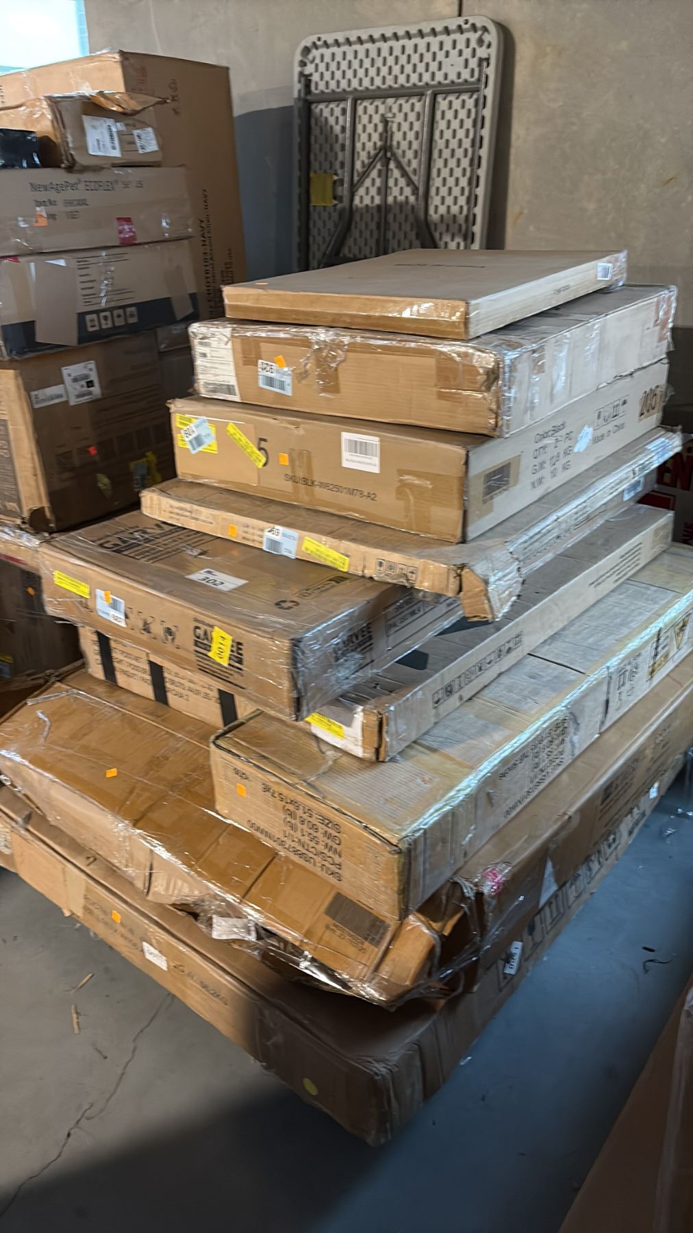 Lot 302 9 READY TO ASSEMBLE FURNITURE INCL BLACK UPHOLSTERED DINING SIDE CHAIRS, BAR STOOLS AND MORE
