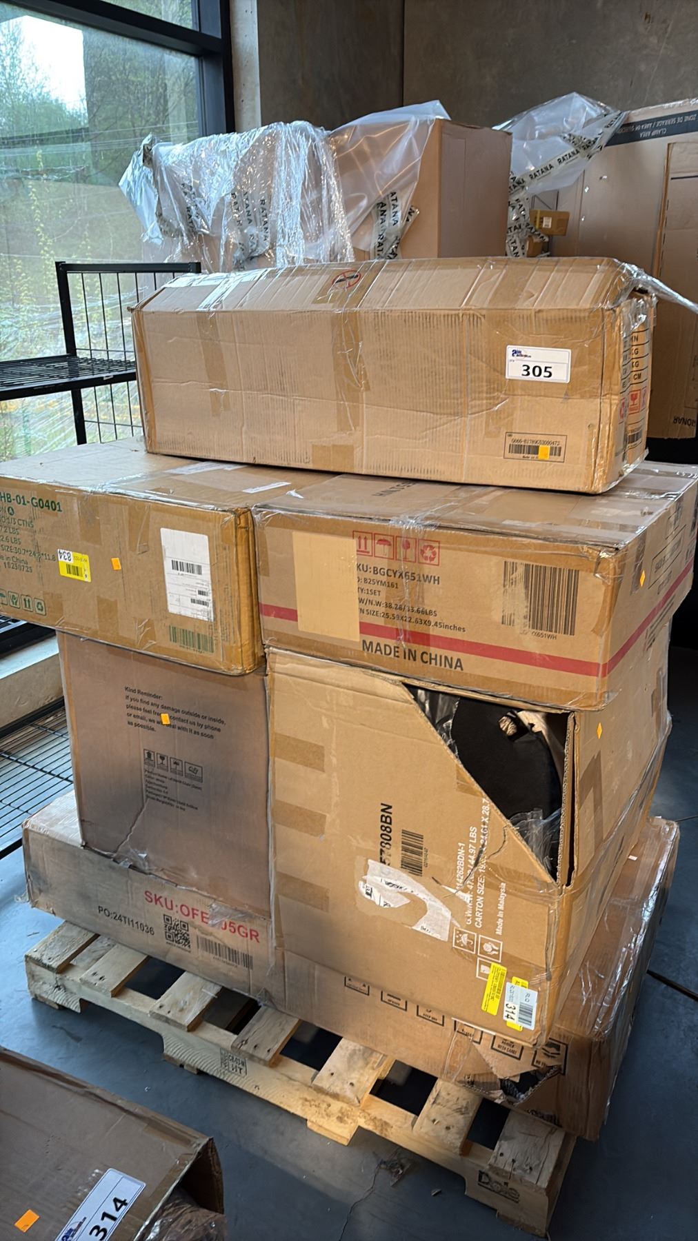 Lot 305 6 READY TO ASSEMBLE FURNITURE INCL ARTIFICIAL HOLIDAY TREE, BROWN WINGBACK SIDE CHAIR, DINING CHAIR