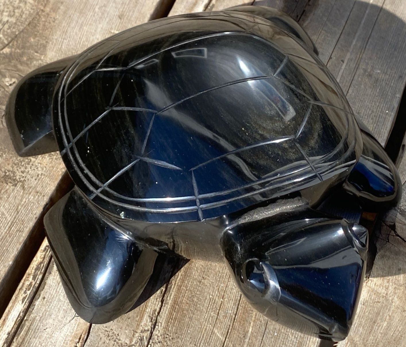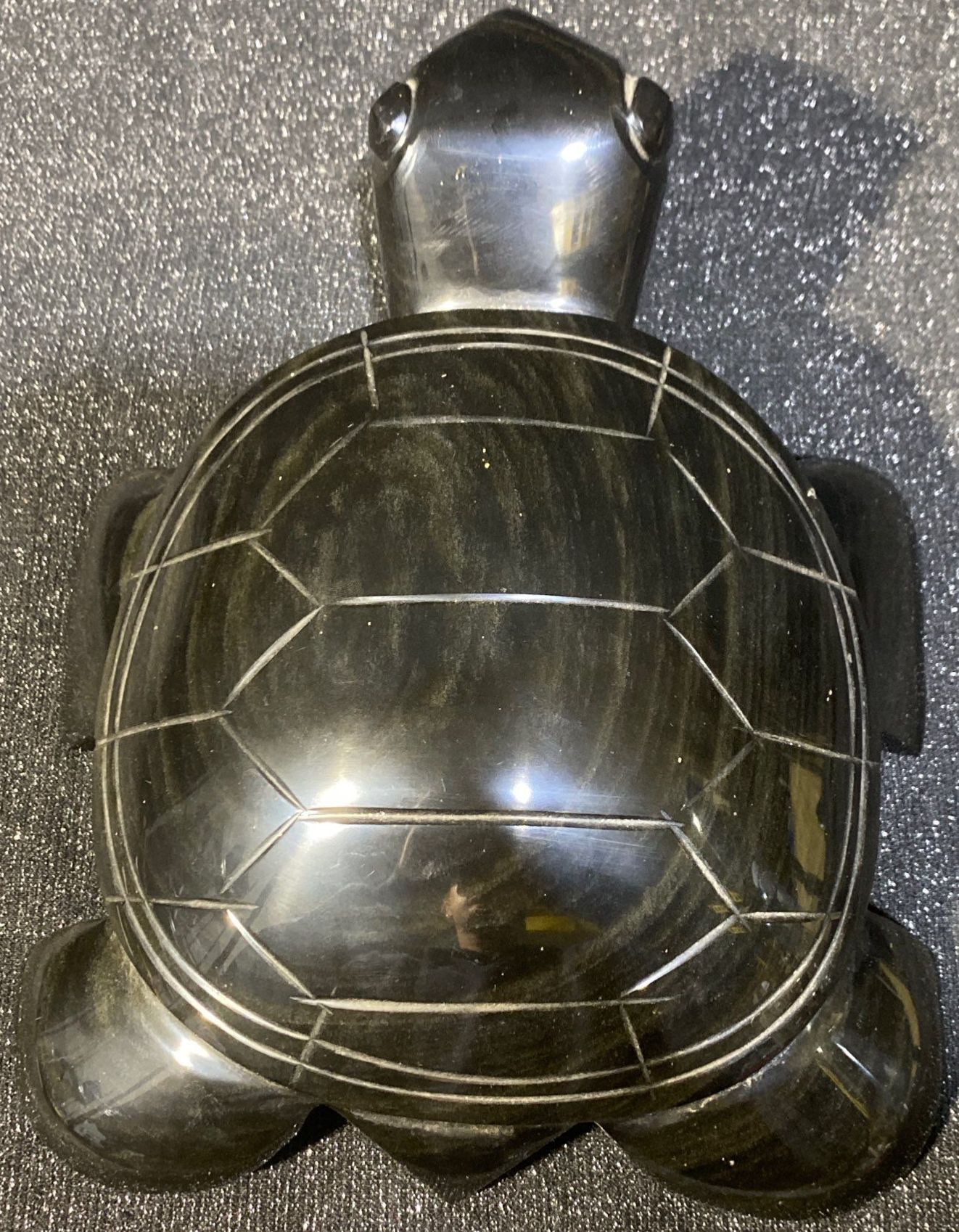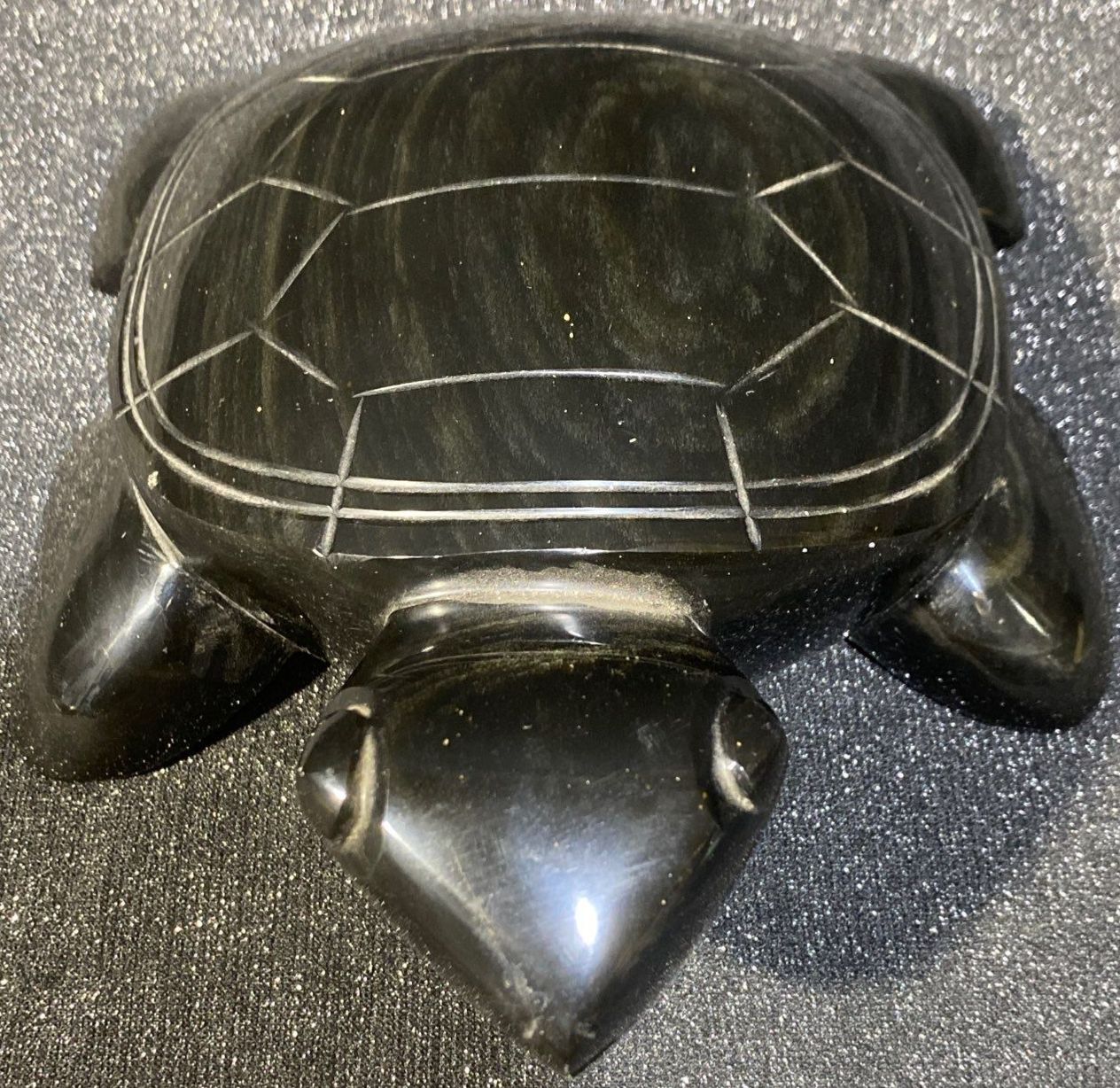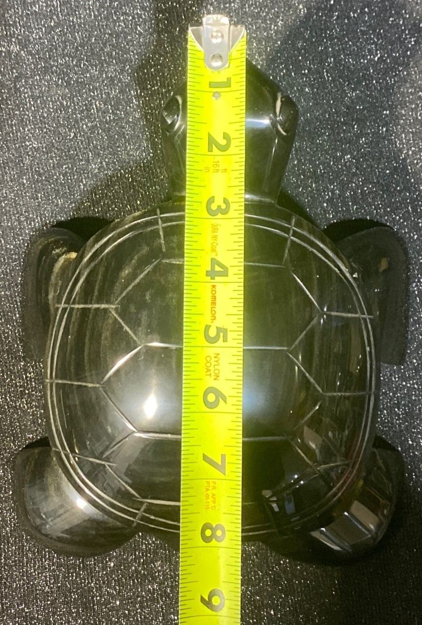 Lot 59 Large Hand Carved Black Obsidian Aztec Turtle Statue Green Shimmer 6 Pounds