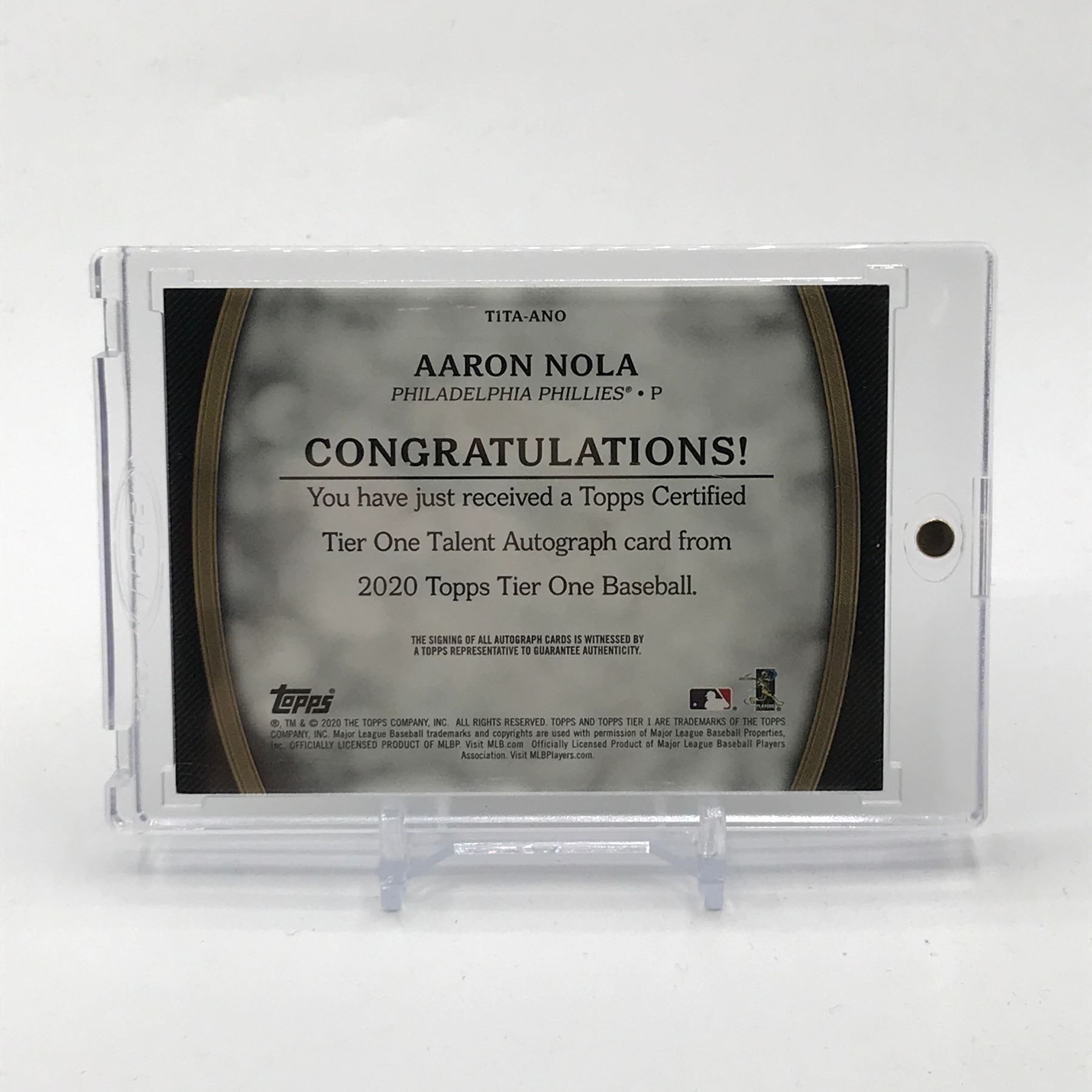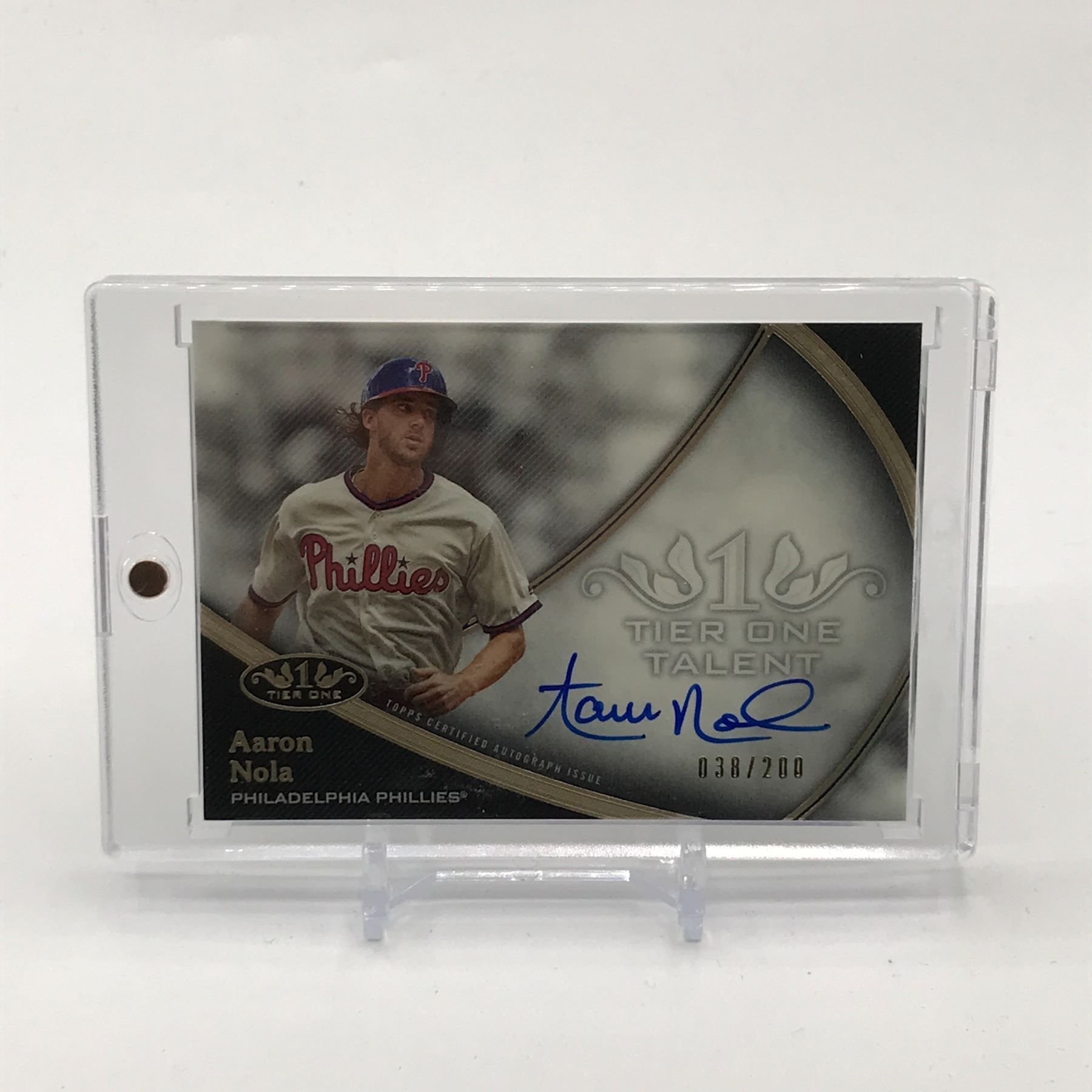 Lot 201 2020 TOPPS TIER ONE BASEBALL AARON NOLA SIGNED TRADING CARD - 038/200