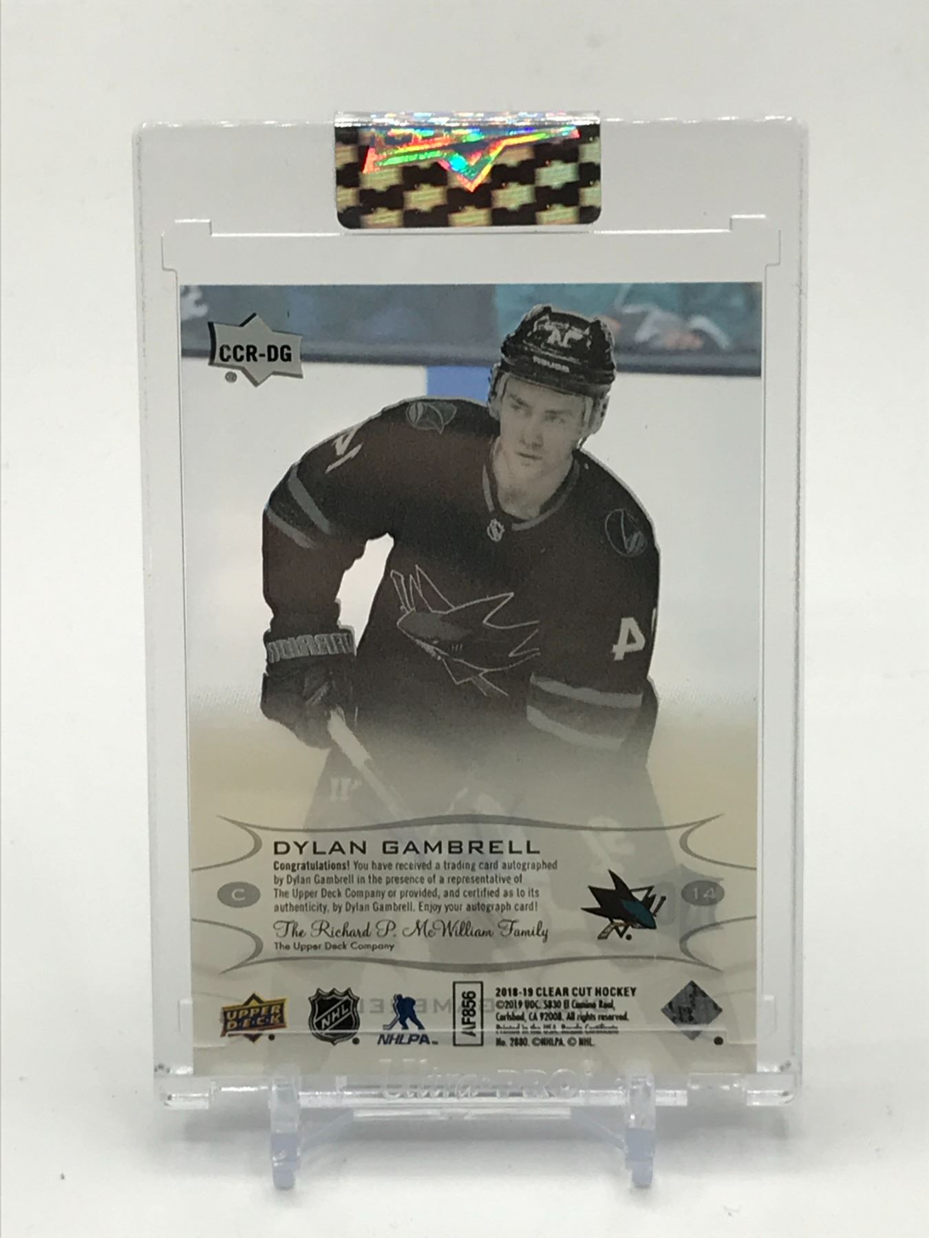 Lot 374 2018-19 UPPER DECK CLEAR CUT HOCKEY DYLAN GAMBRELL SIGNED TRADING CARD