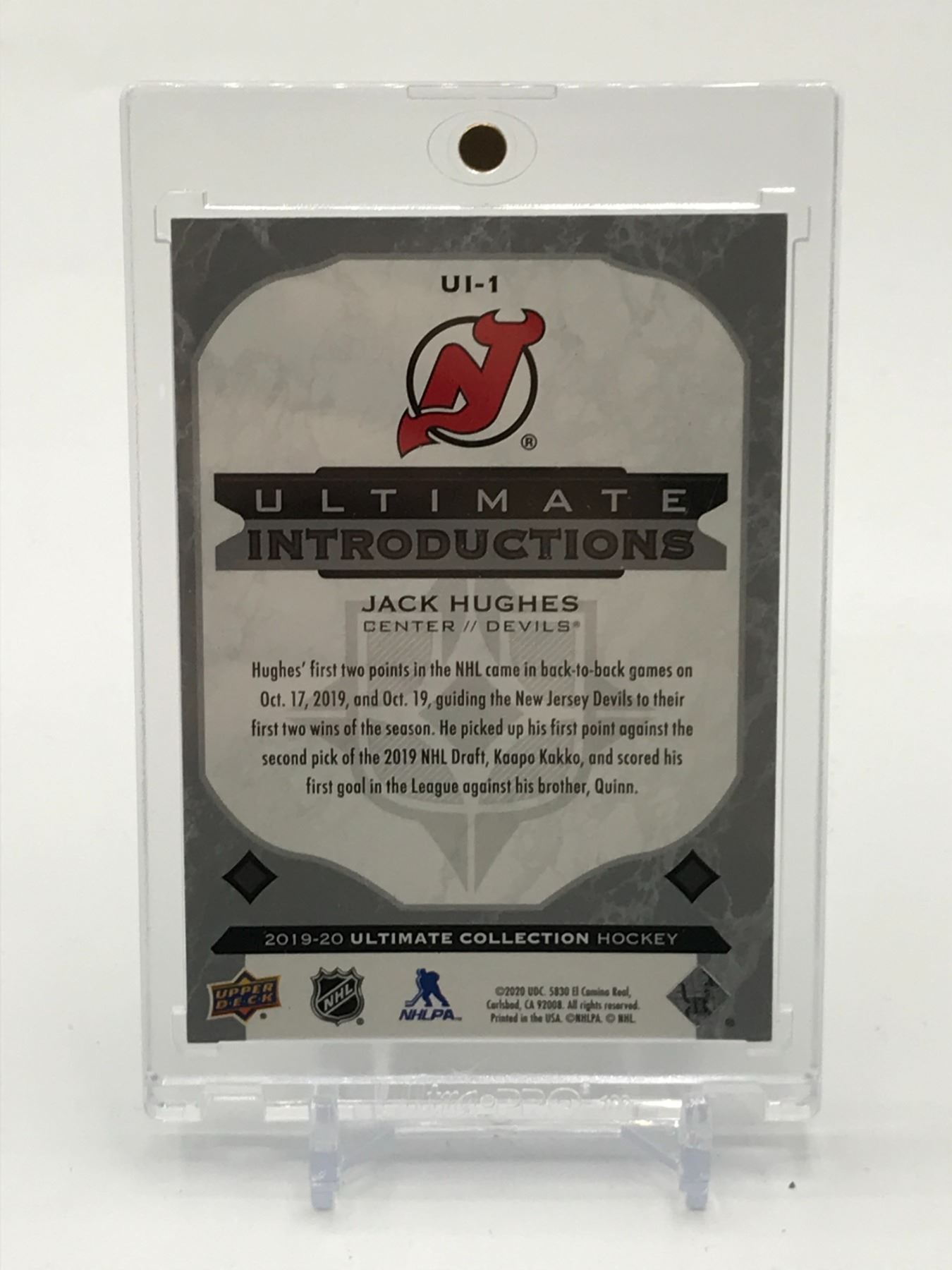 Lot 449 2019-20 UPPER DECK ULTIMATE COLLECTION HOCKEY JACK HUGHES TRADING CARD