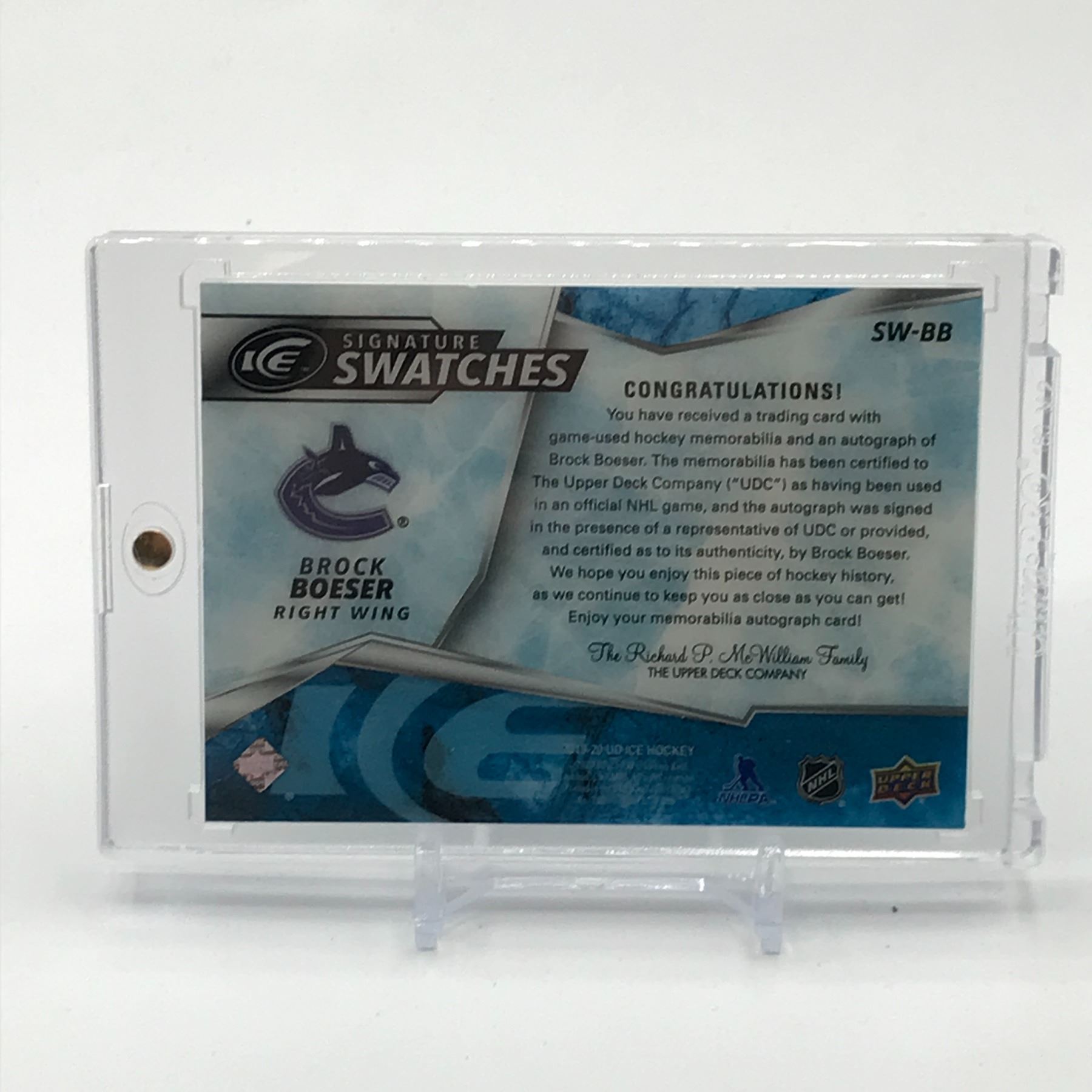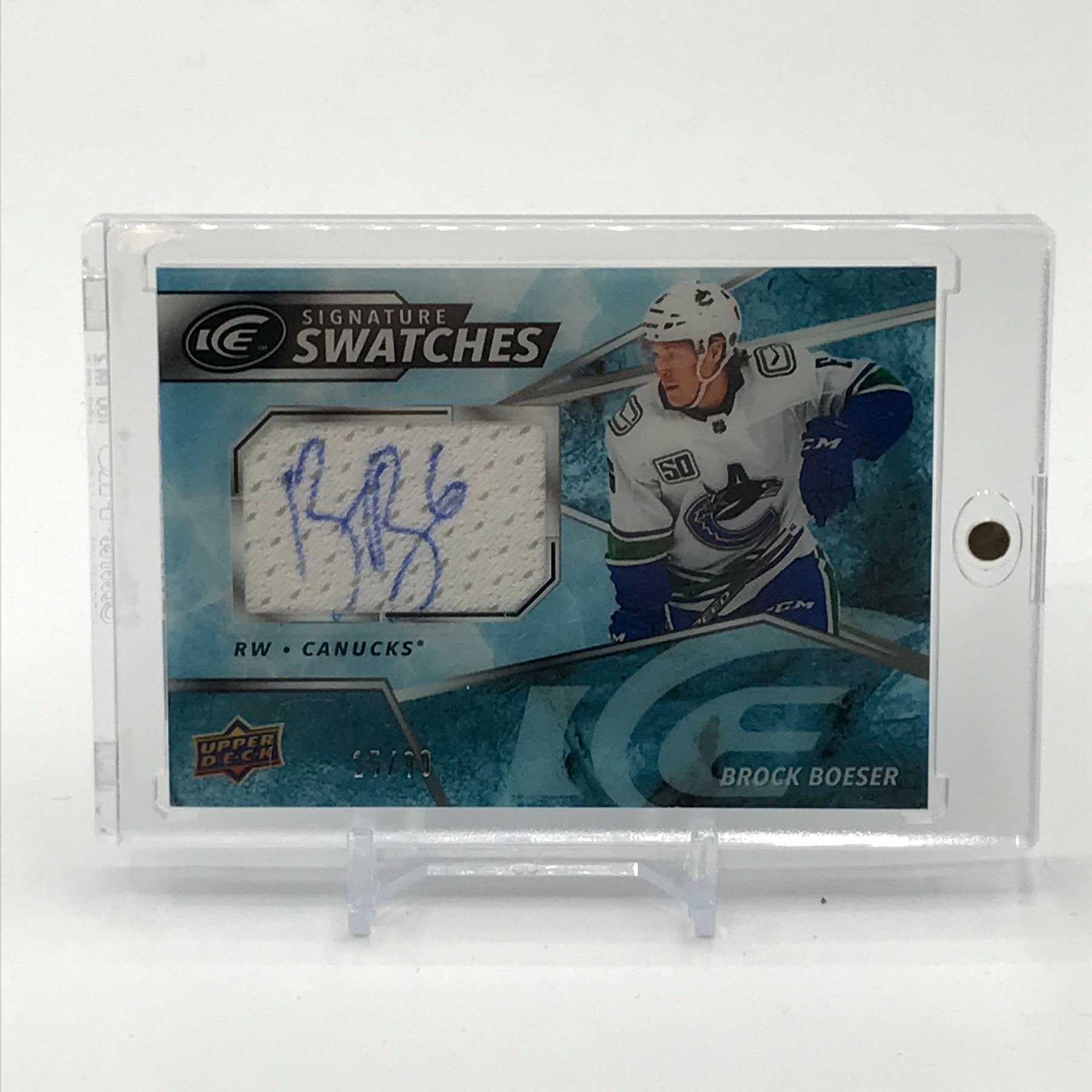 Lot 477 2019-20 UPPER DECK HOCKEY BROCK BOESER SIGNATURE SWATCHES SIGNED PATCH TRADING CARD 15/90