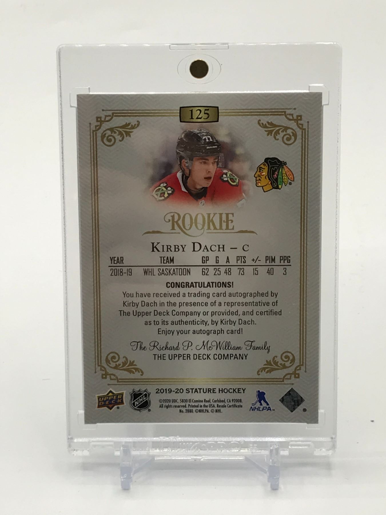 Lot 492 2019-20 UPPER DECK STATURE HOCKEY KIRBY DACH SIGNED ROOKIE TRADING CARD