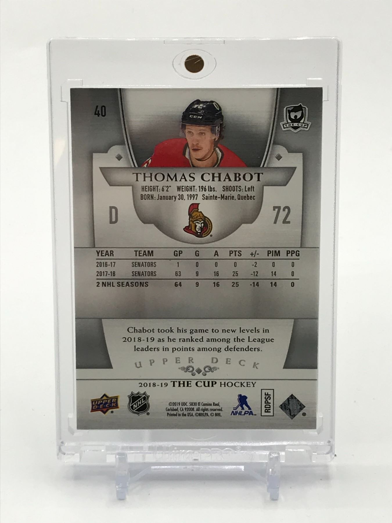 Lot 530 2018-19 UPPER DECK THE CUP HOCKEY THOMAS CHABOT TRADING CARD 222/249