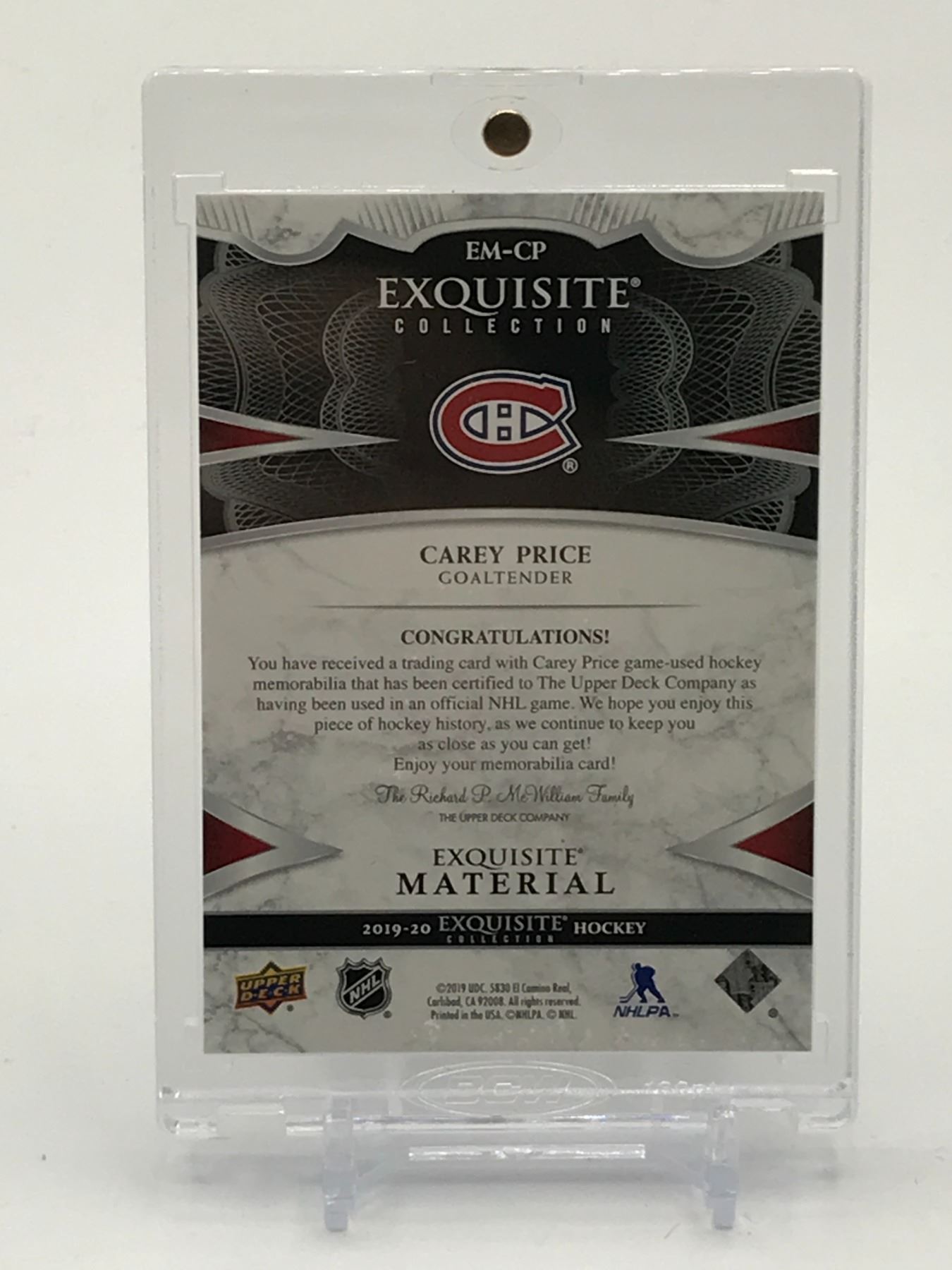 Lot 549 2019-20 UPPER DECK EXQUISITE COLLECTION HOCKEY CAREY PRICE PATCH TRADING CARD 34/49