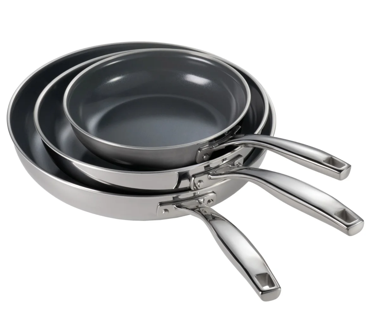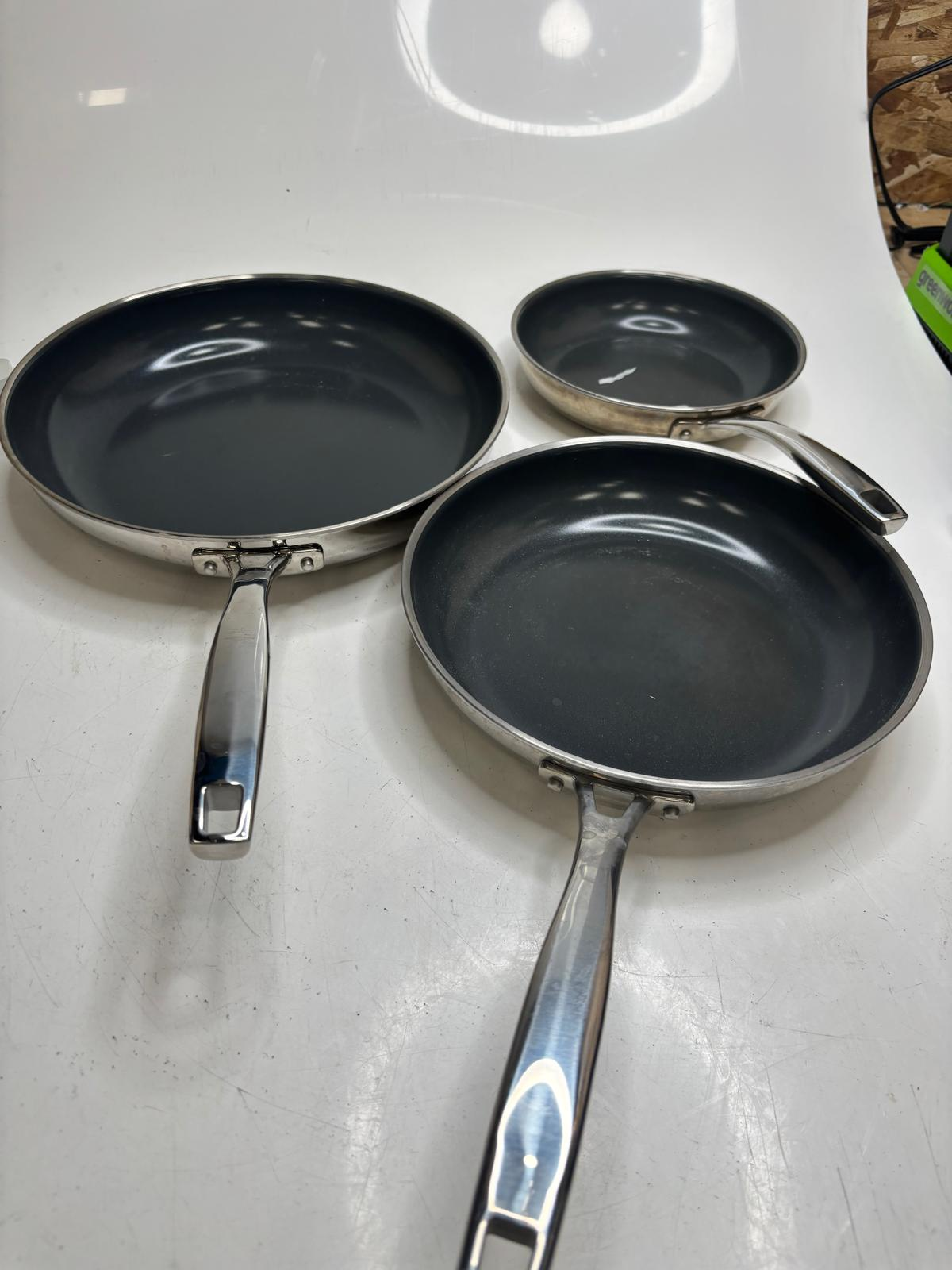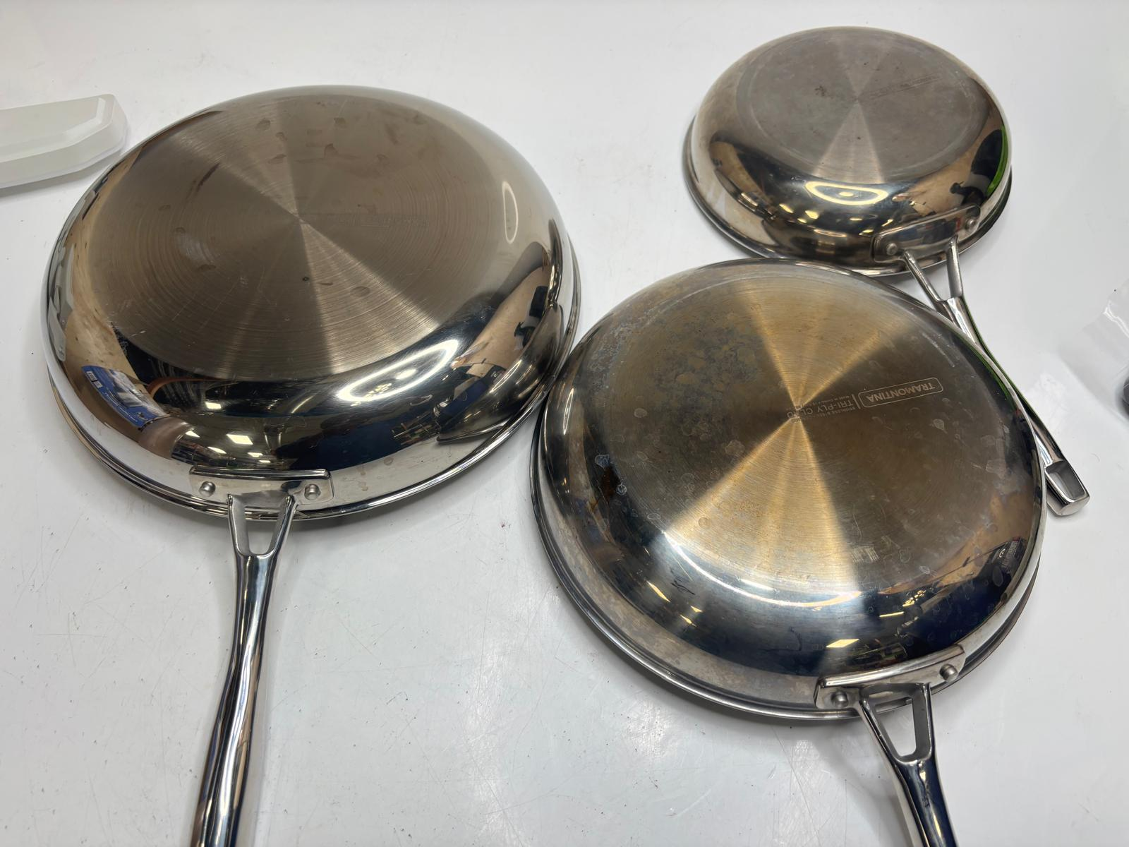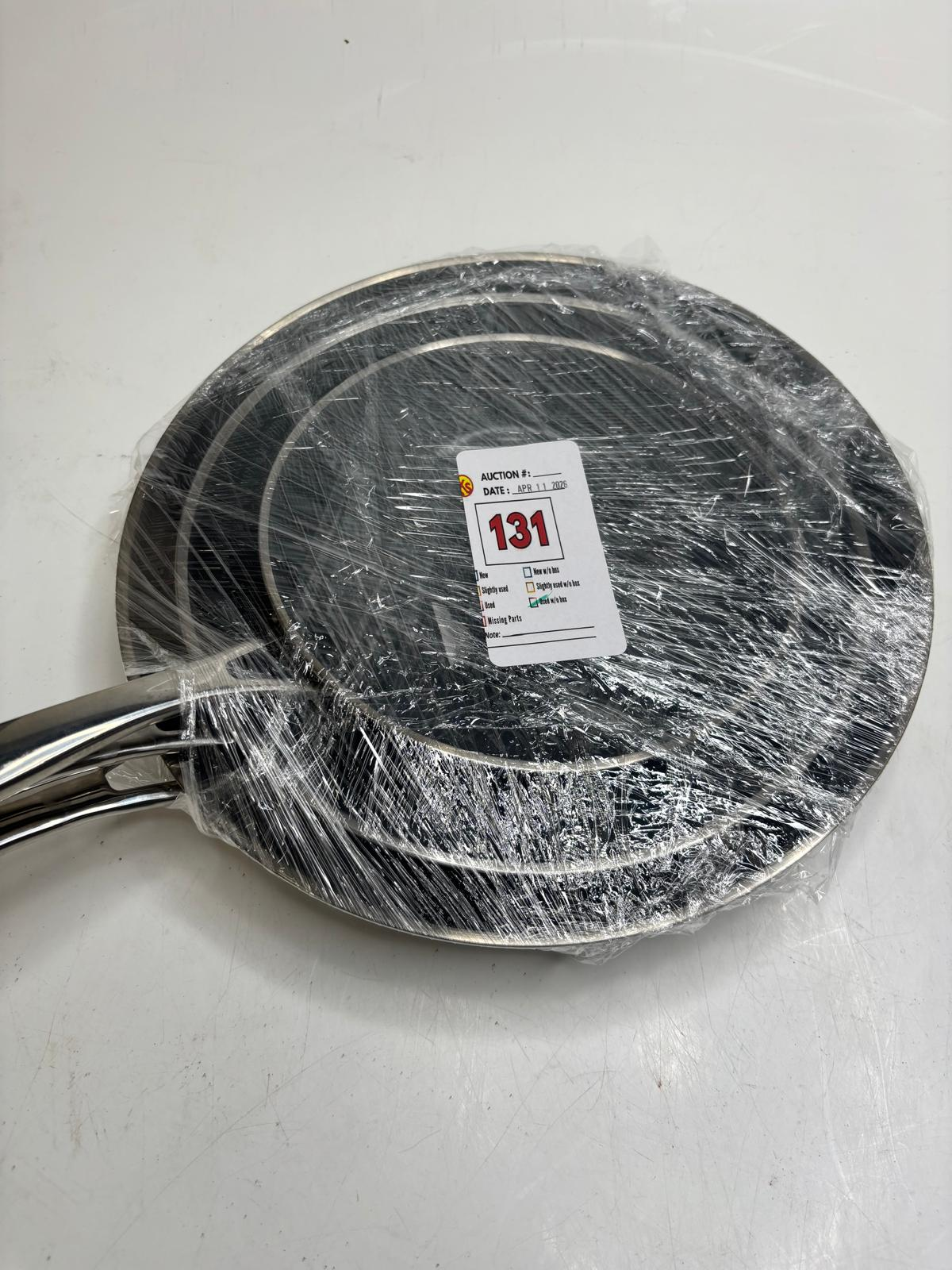 Lot 131 TRAMONTINA STAINLESS STEEL WITH CERAMIC NON-STICK SKILLET SET, 3-PIECE -UNB