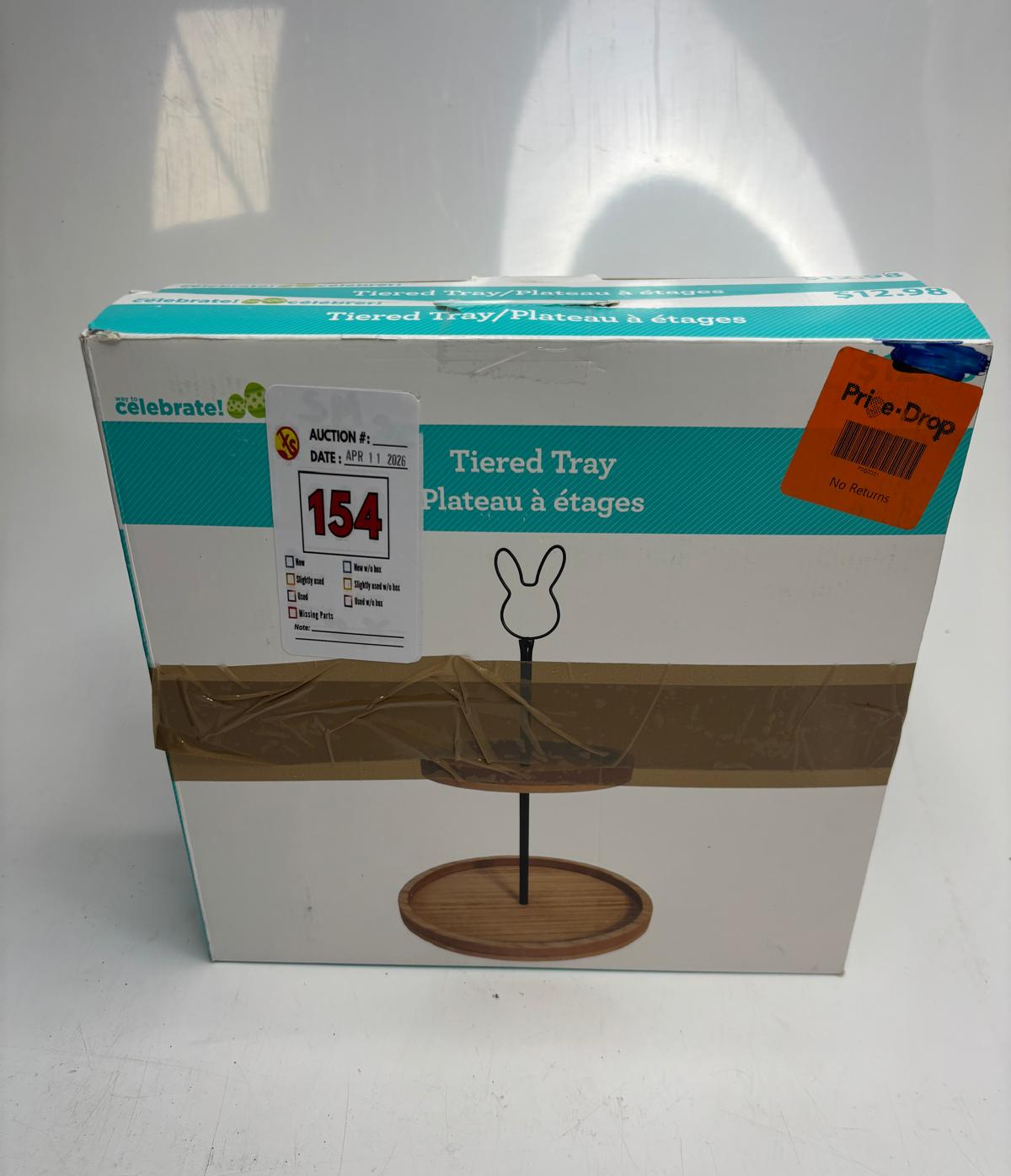 Lot 154 DECORATIVE WOODEN TIERED TRAY STAND 2 PCS
