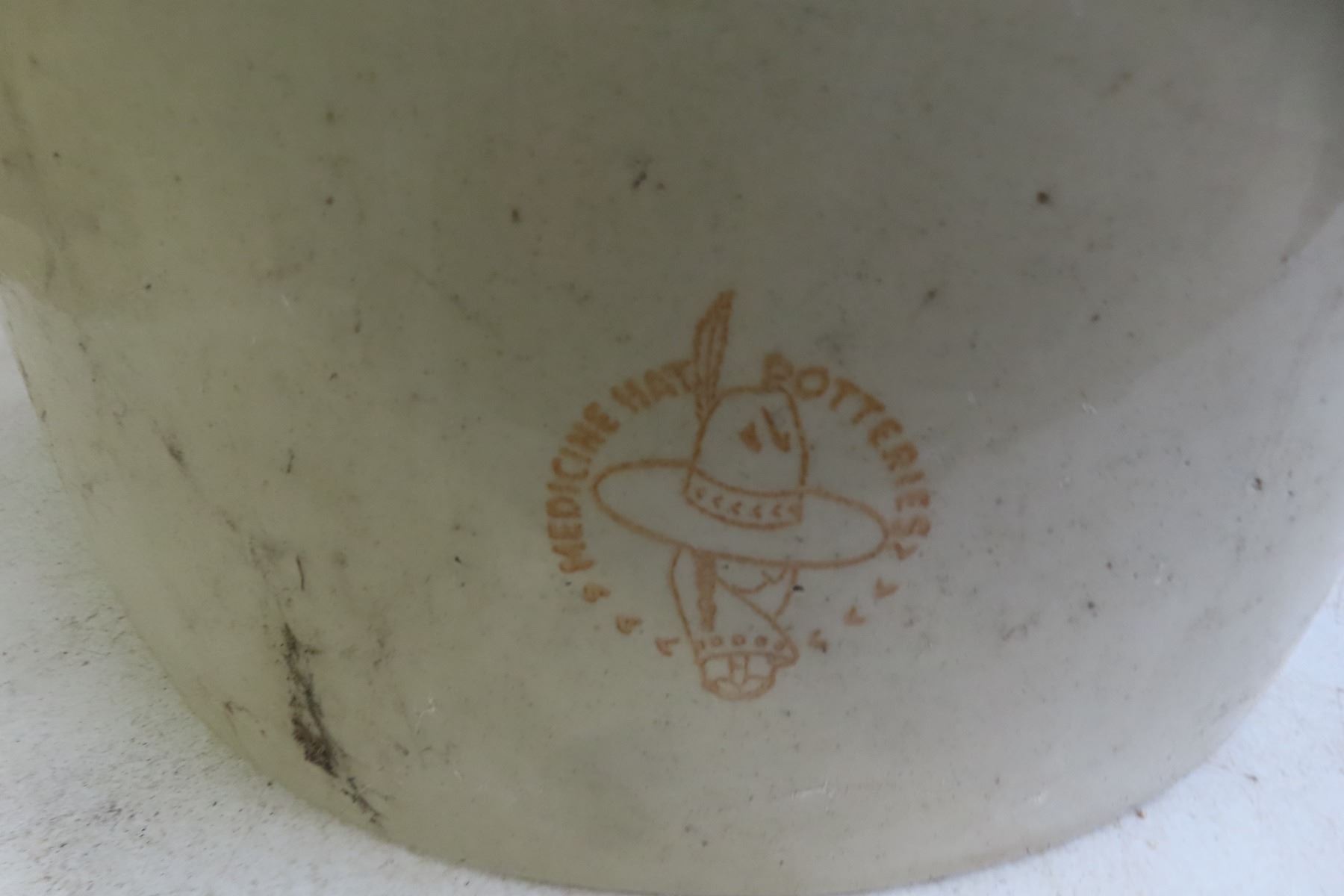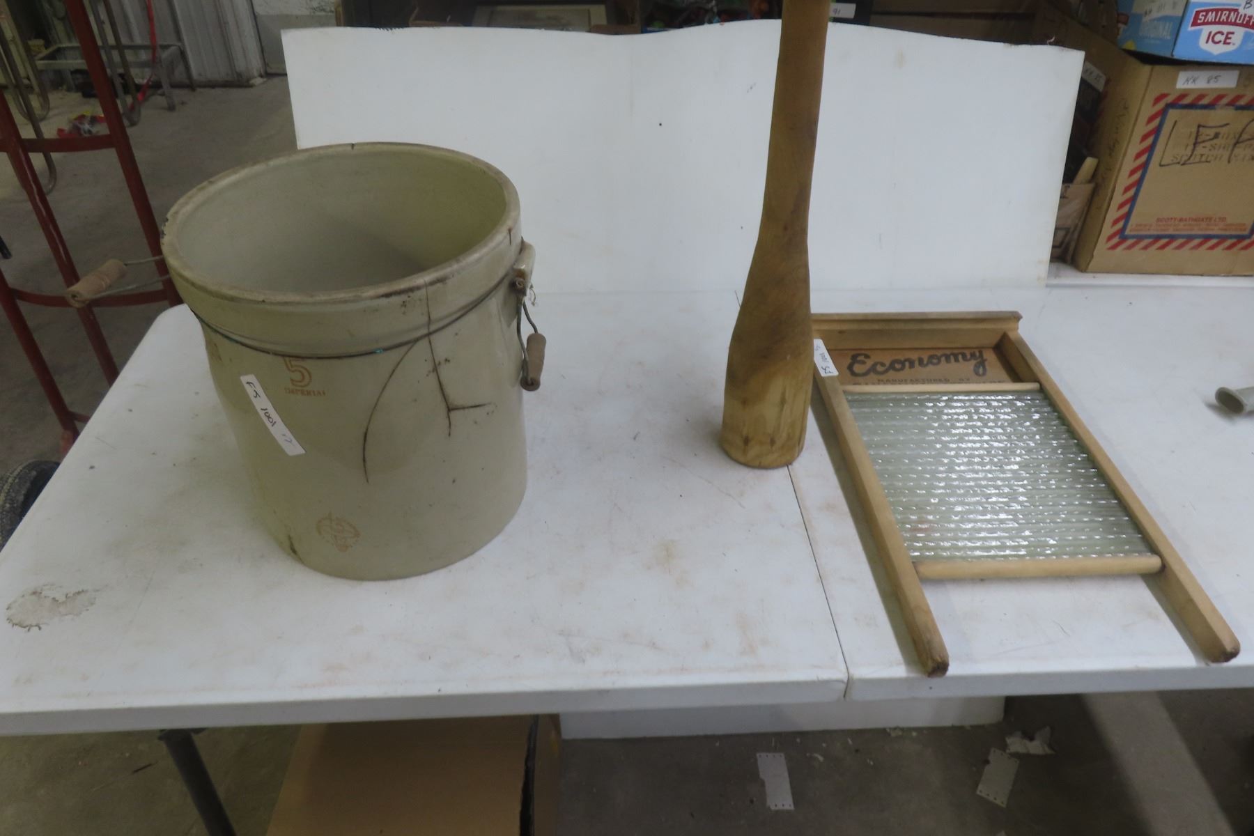Lot 1001 Antique Lot: Medicine Hat Pottery 5-Gallon Crock, Washboard