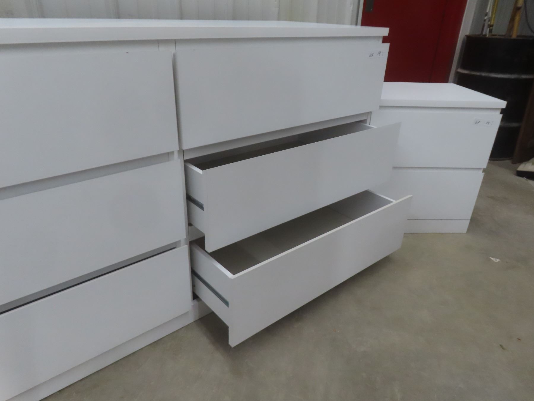 Ashley Onita White Double Dresser and Nightstand – Modern Style, Crisp White Finish. Dresser: 60"W × 17"D × 36"H, Good Condition. Nightstand: 28"W × 16"D × 27"H, Like New