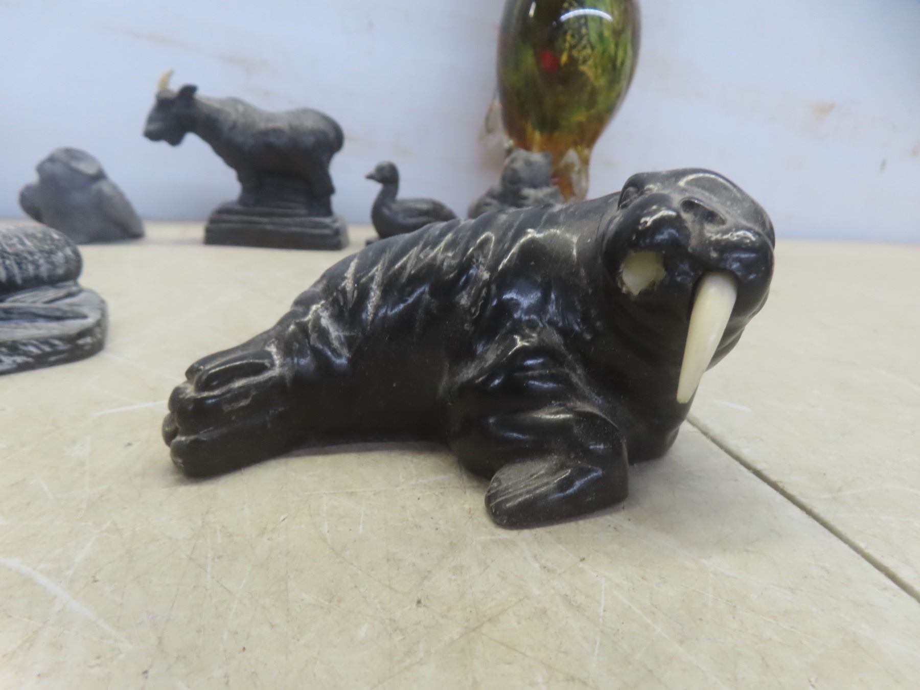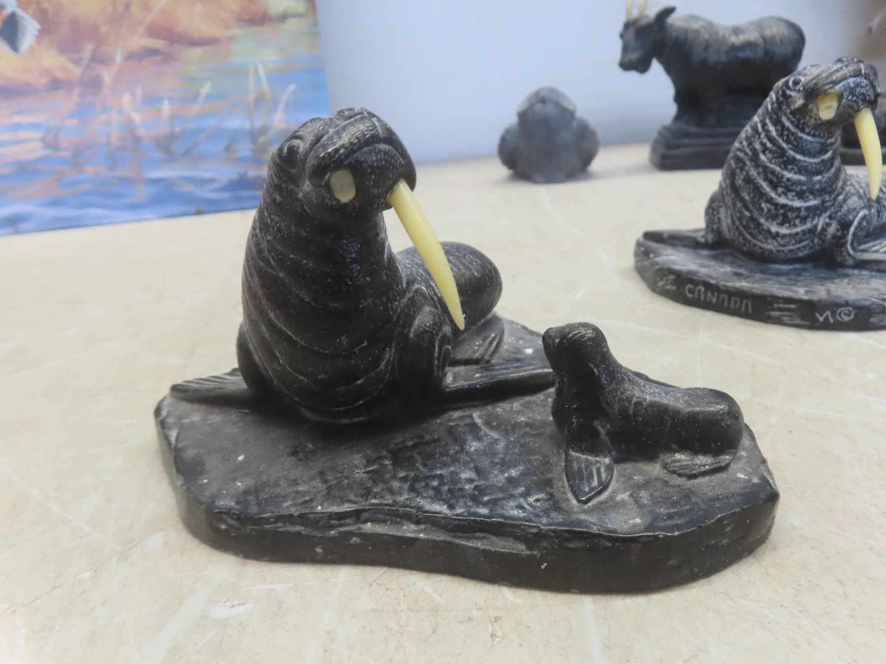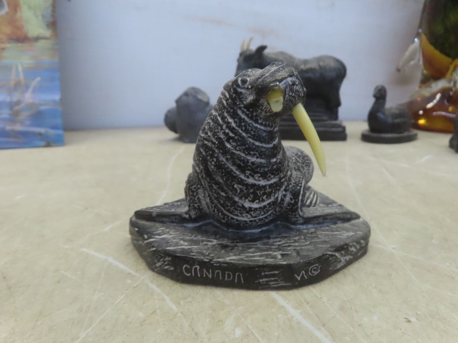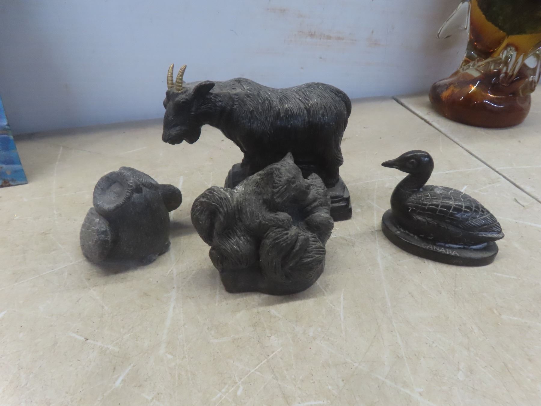 Ducks Unlimited Metal Picture, 12½" × 16"; Canada Remembers Collector Plate; Digital Picture Frame; 7 Soapstone-Style Figures with Damage