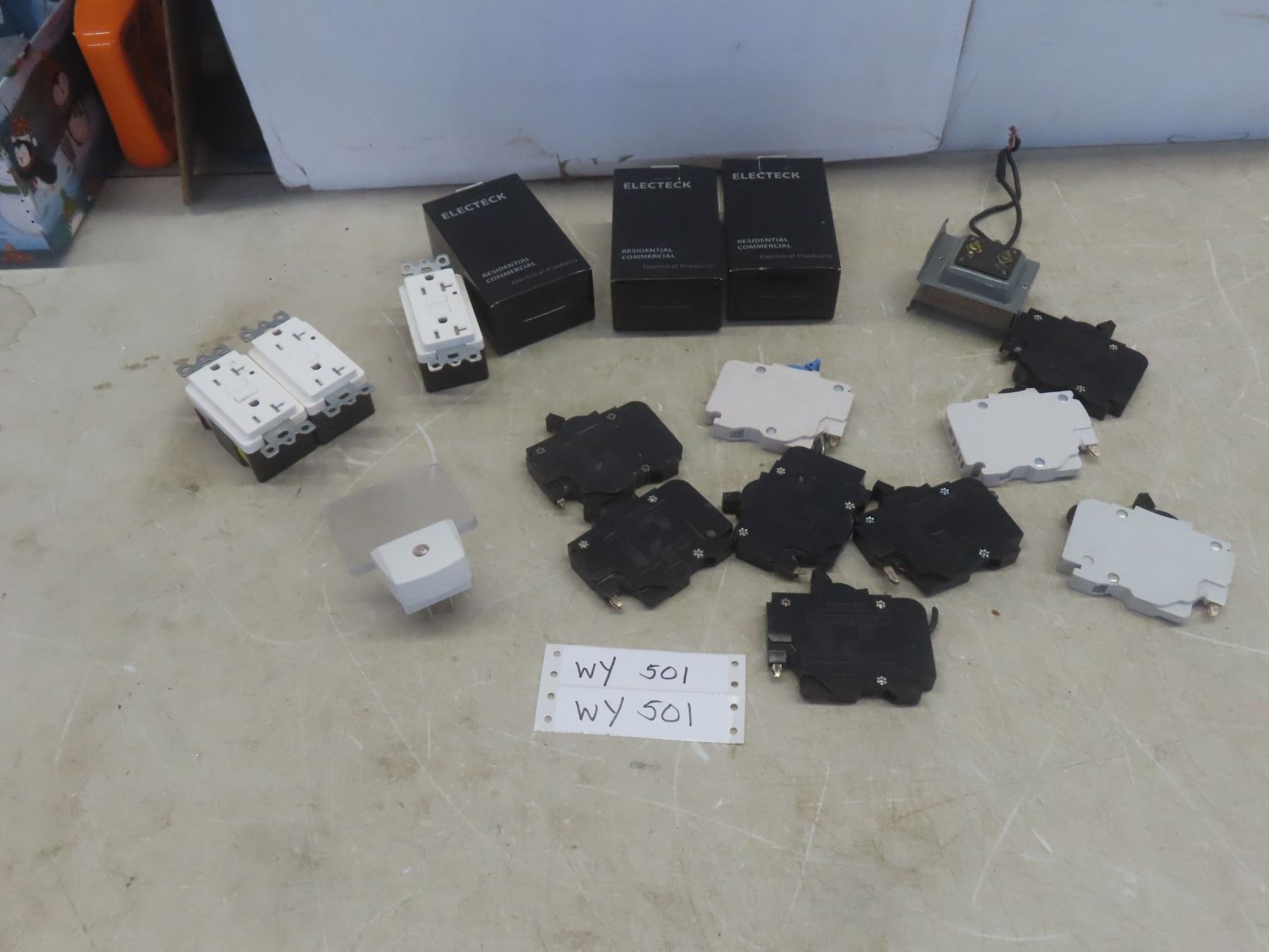 Lot 501 6 New GFCI Receptacles; Doorbell Chime Transformer; 9 Stab-Lok Breakers, 15 and 20 Amp