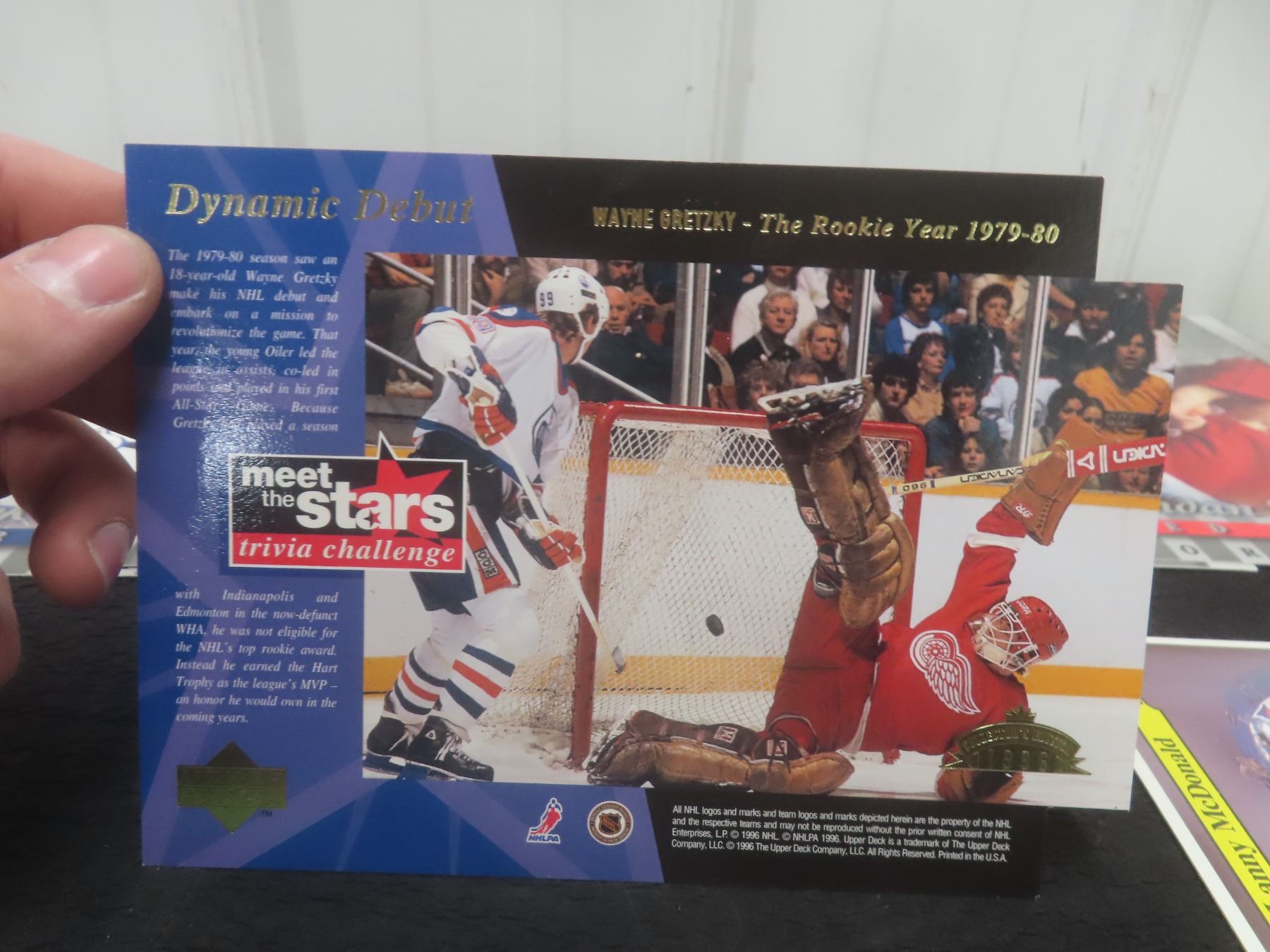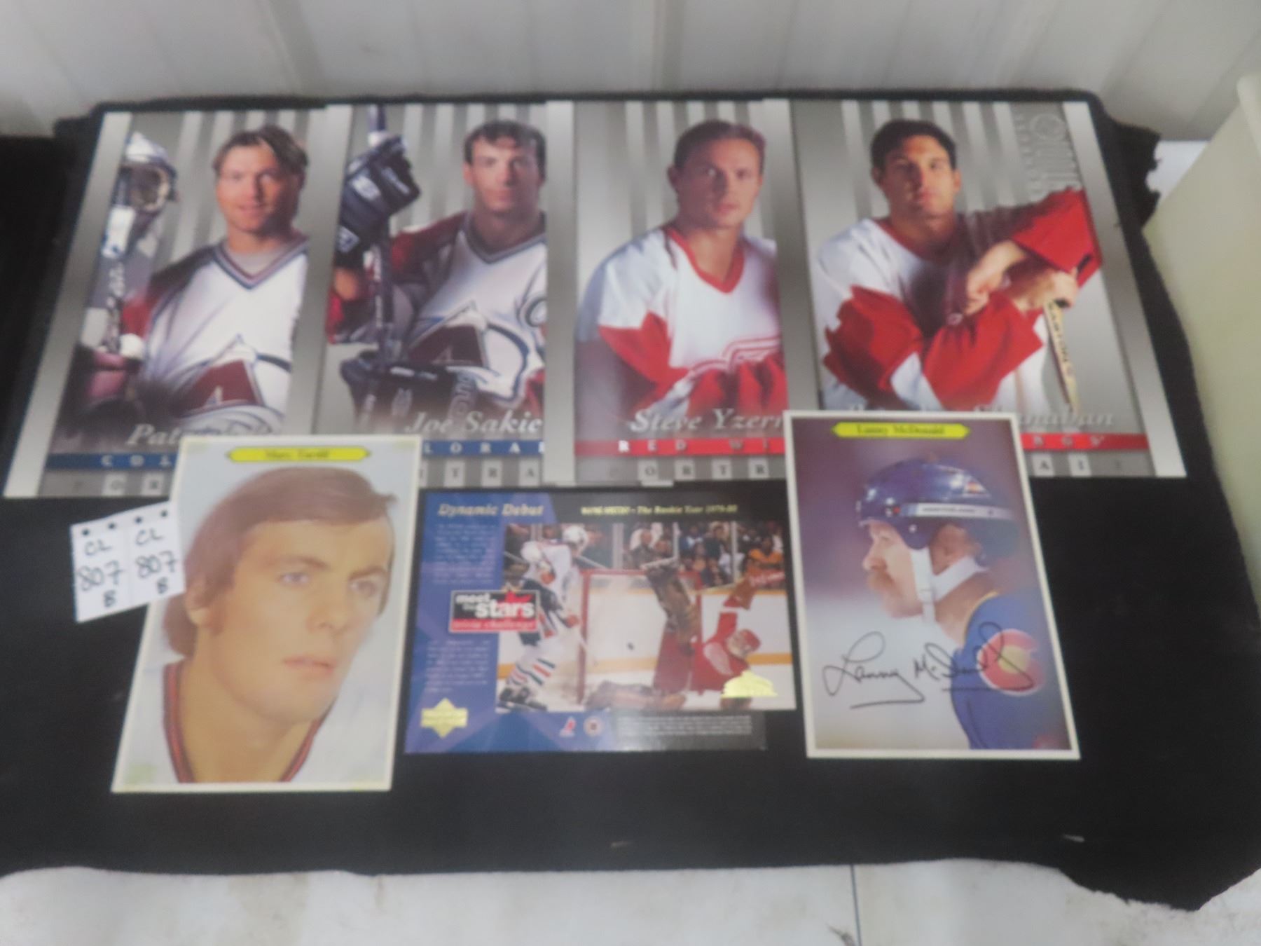 Don Ross Studio Cards – P. Roy, Sakic, Yzerman, Shanahan, Lanny McDonald; Upper Deck Wayne Gretzky 1st Game Debut Signed Photo