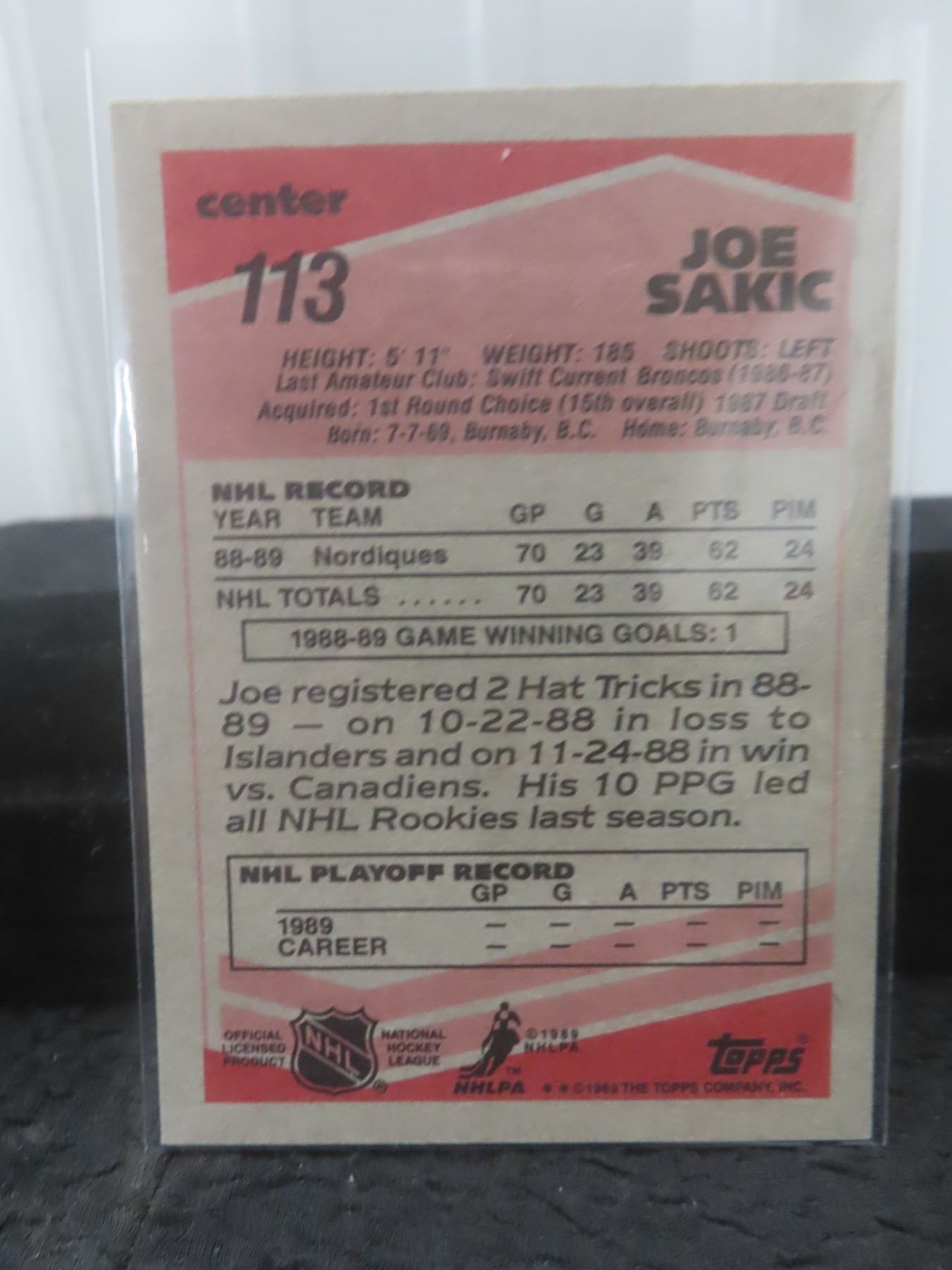 Topps 1989 Joe Sakic Rookie Card – Quebec Nordiques