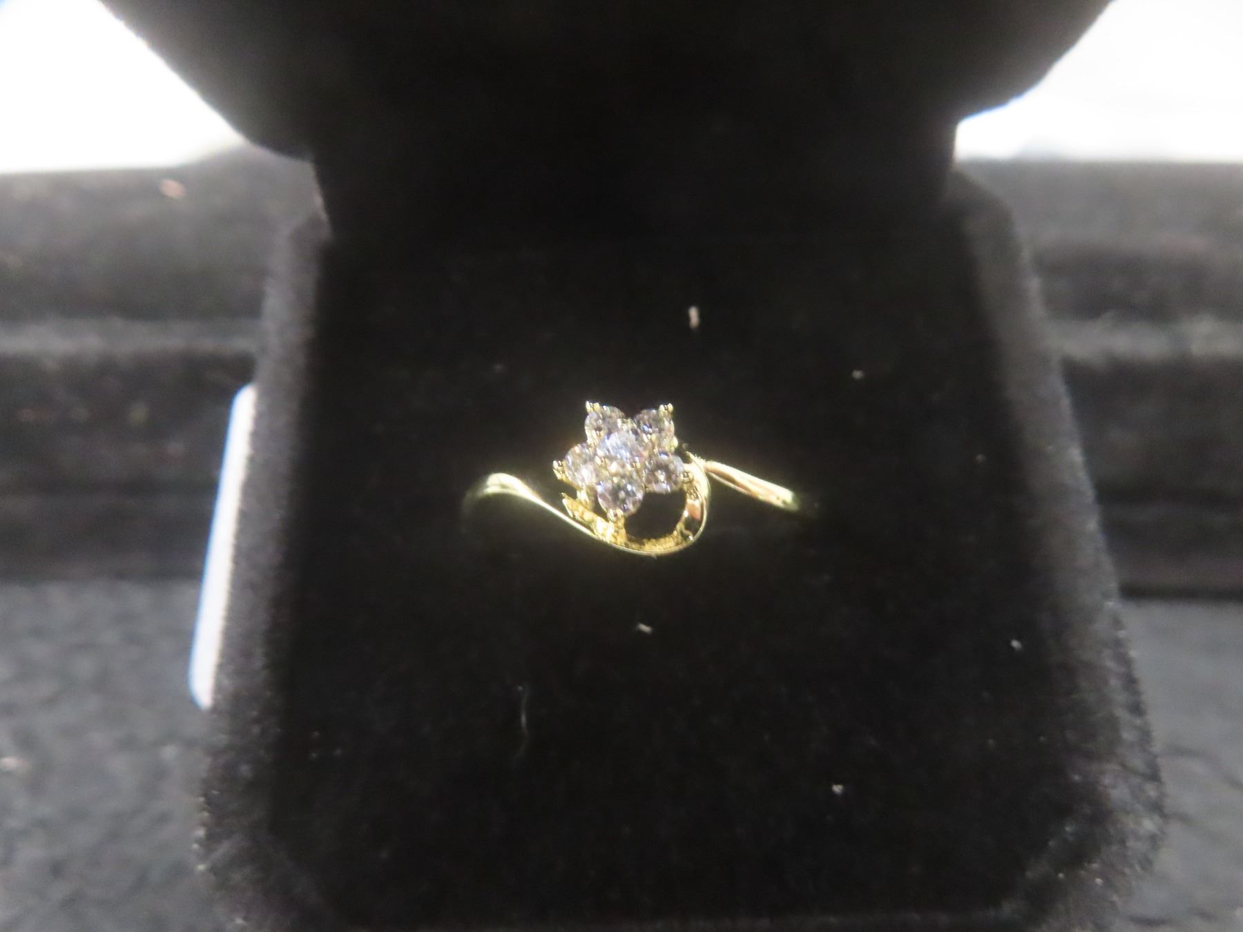 Lot 938B New 14K Gold Plated Simulated Diamond (CZ) Flower Ring – Size 7