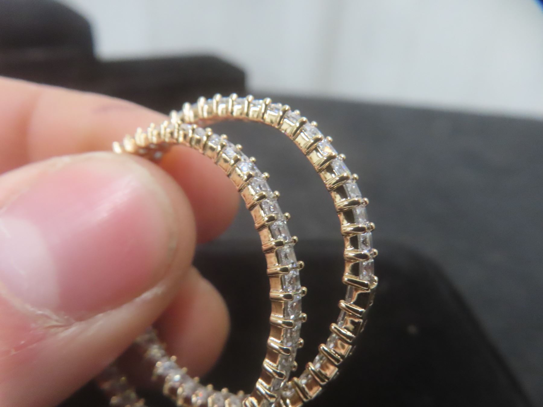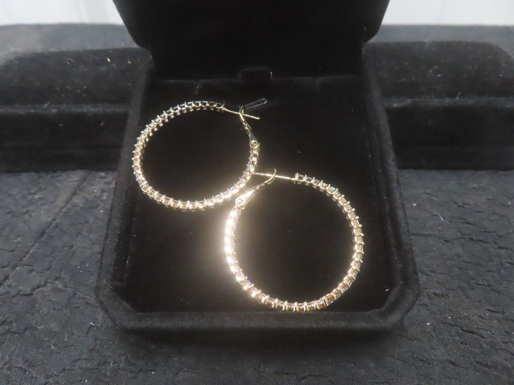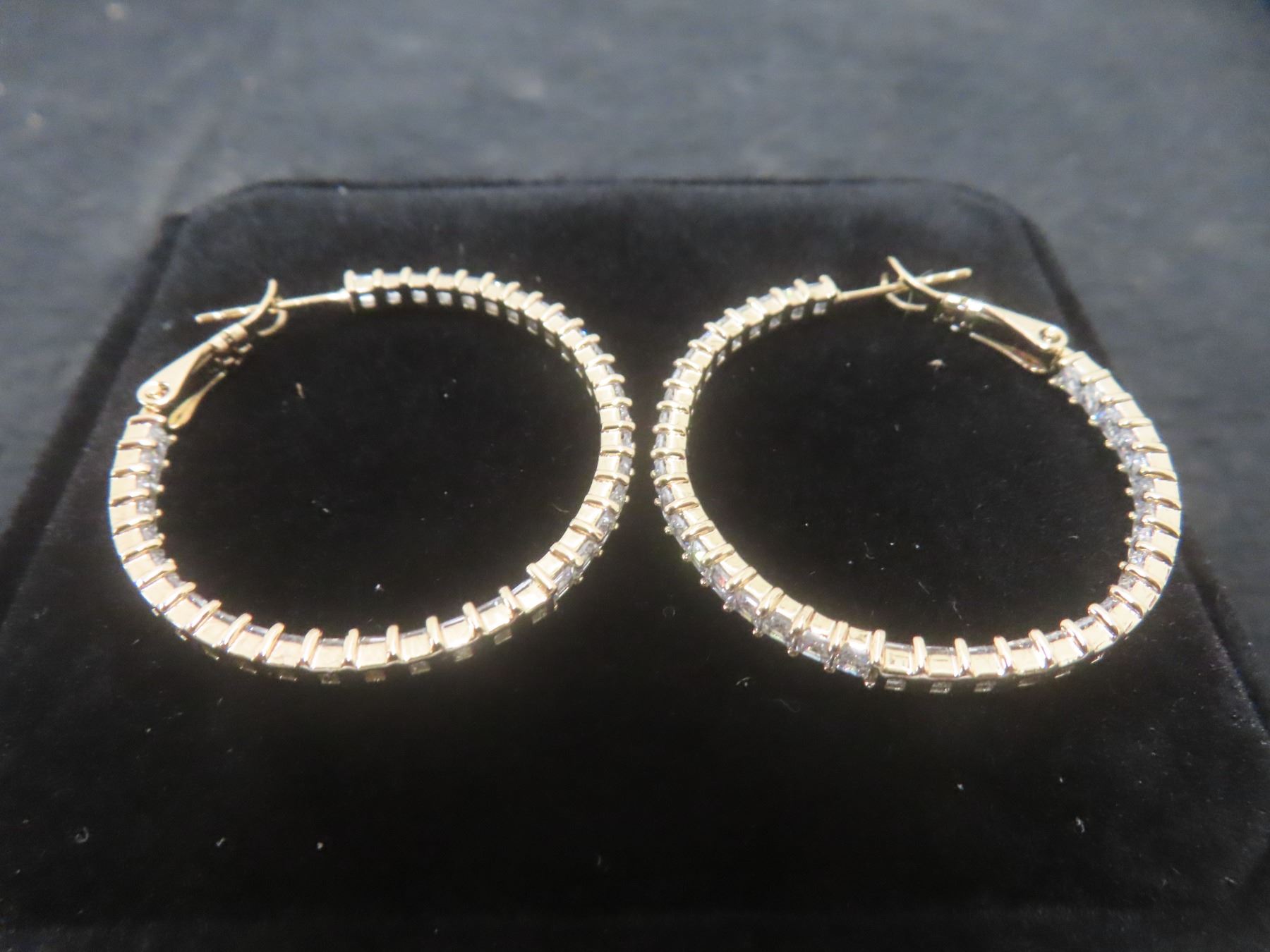 Lot 925B New 18K Gold Plated 33.0mm Princess Cut Simulated Diamond (CZ) Hoop Earrings