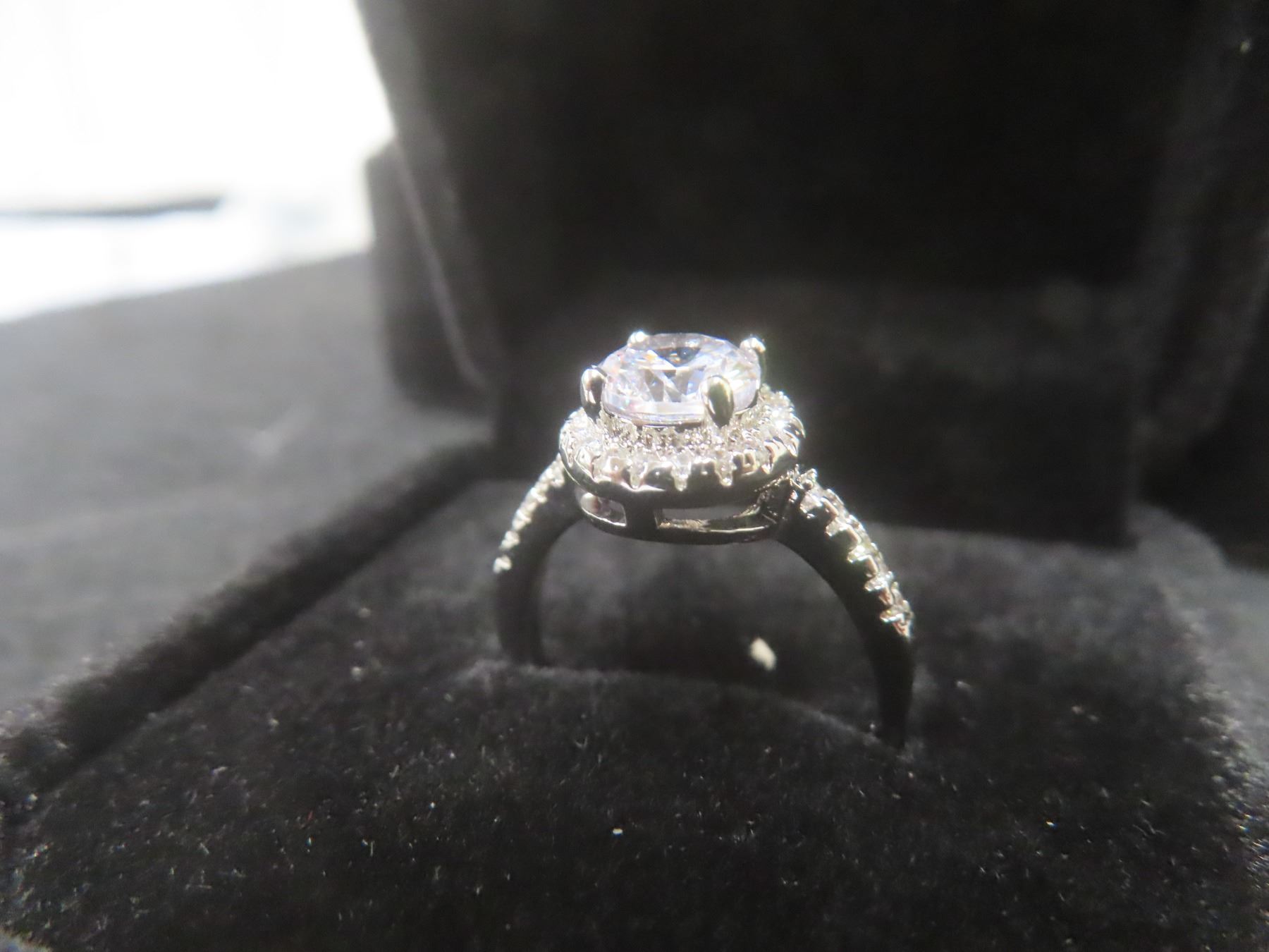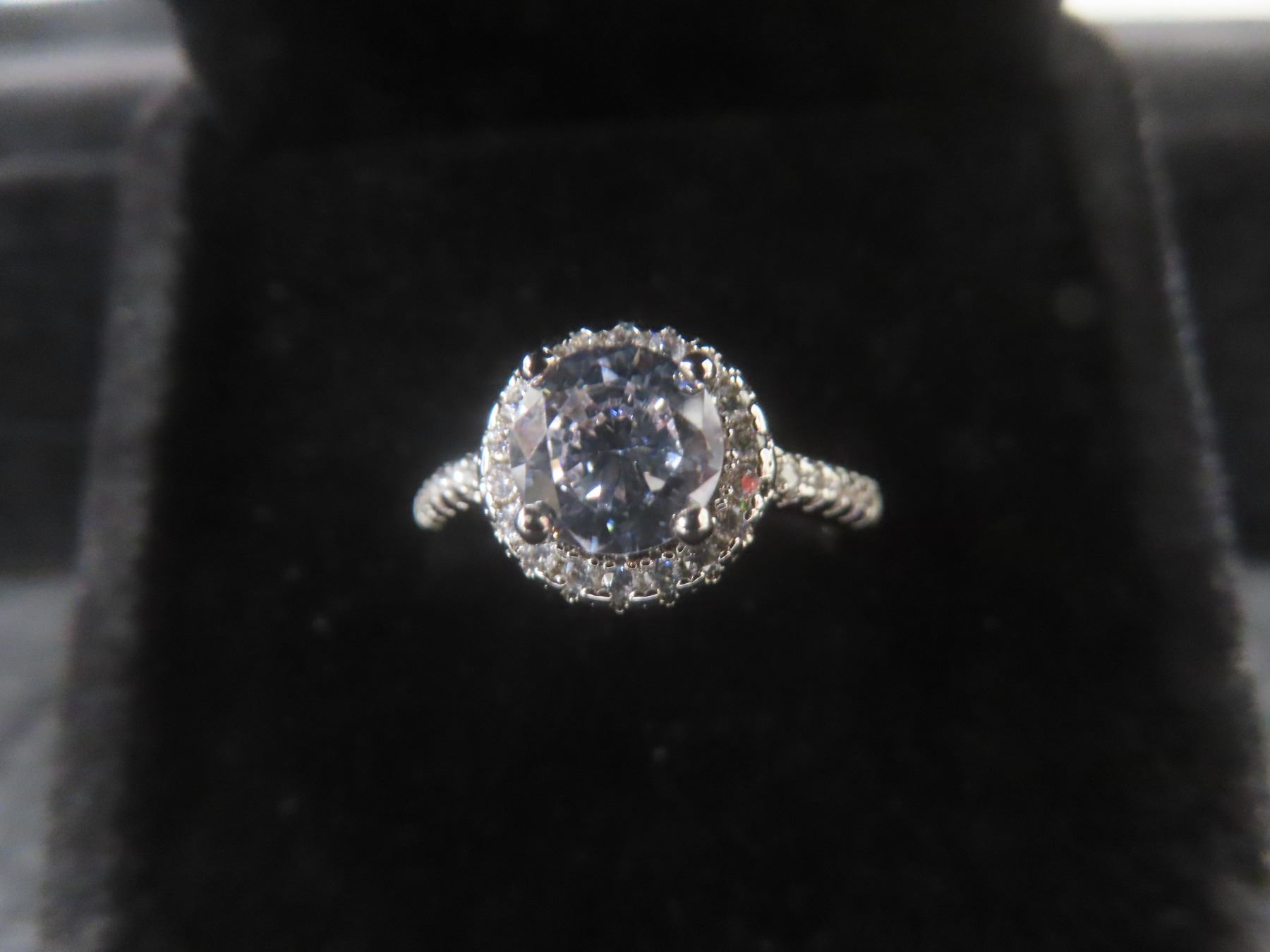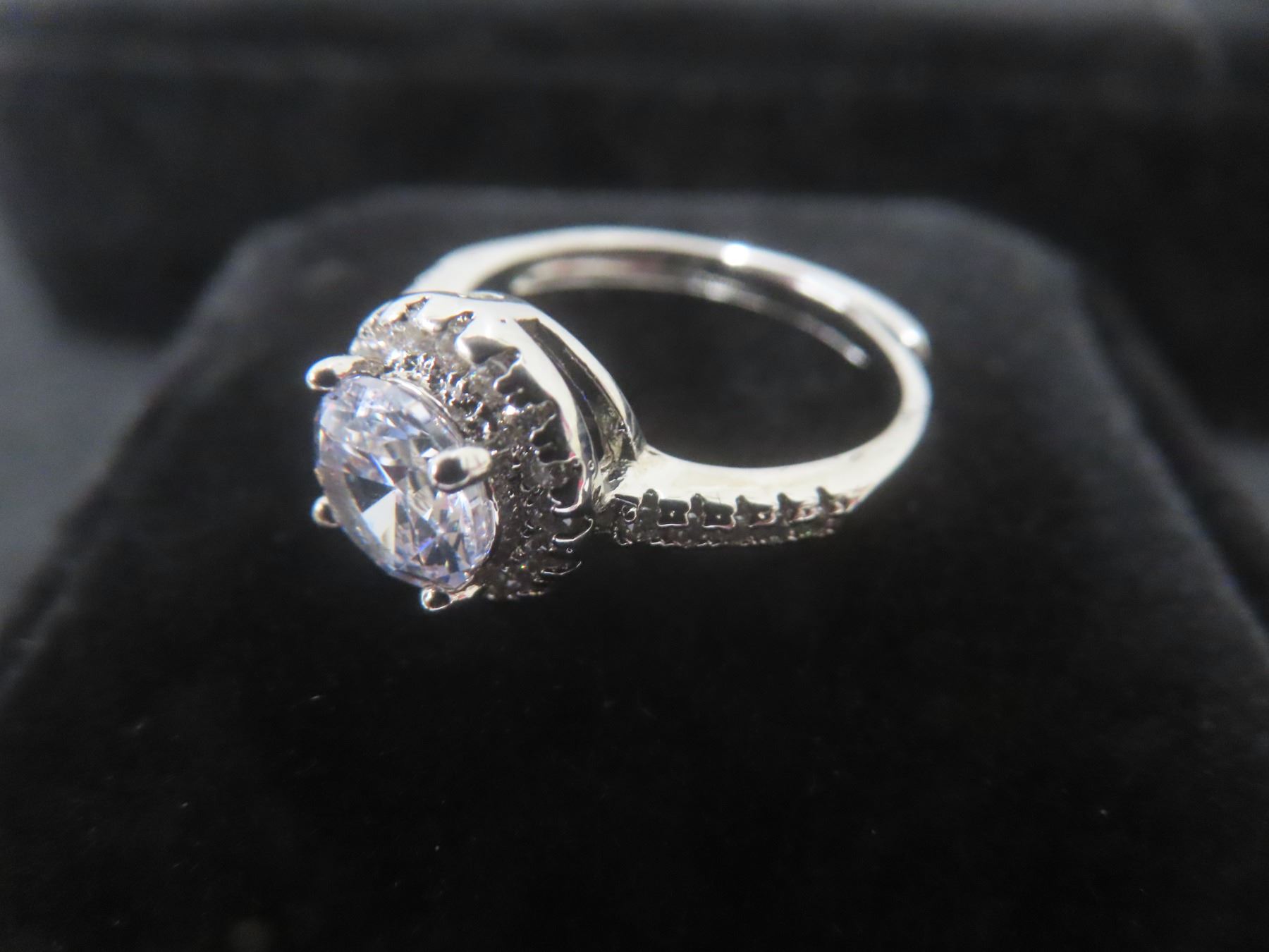 Lot 928B New Platinum Plated 1ct Simulated Diamond (CZ) Halo Ring – Resizable