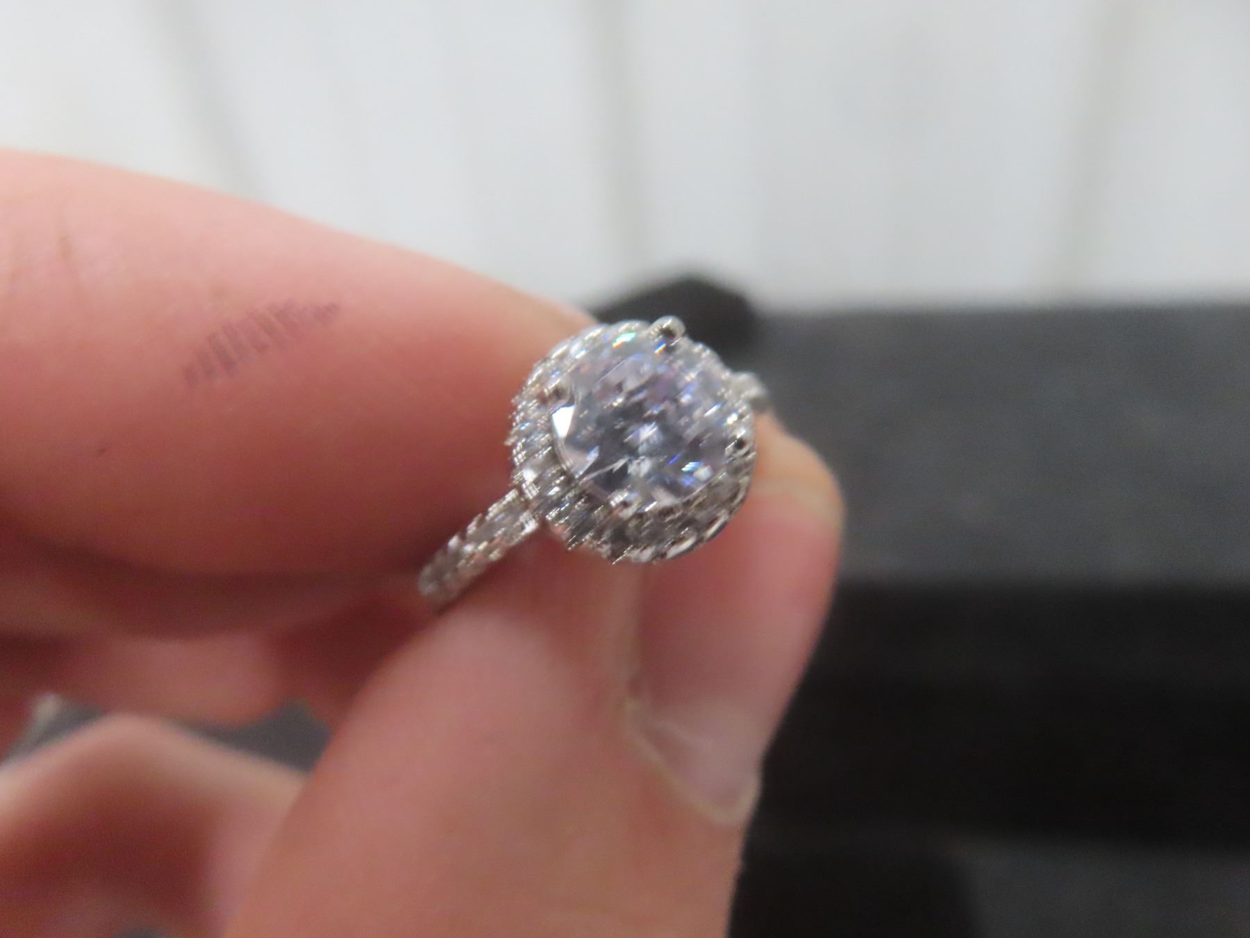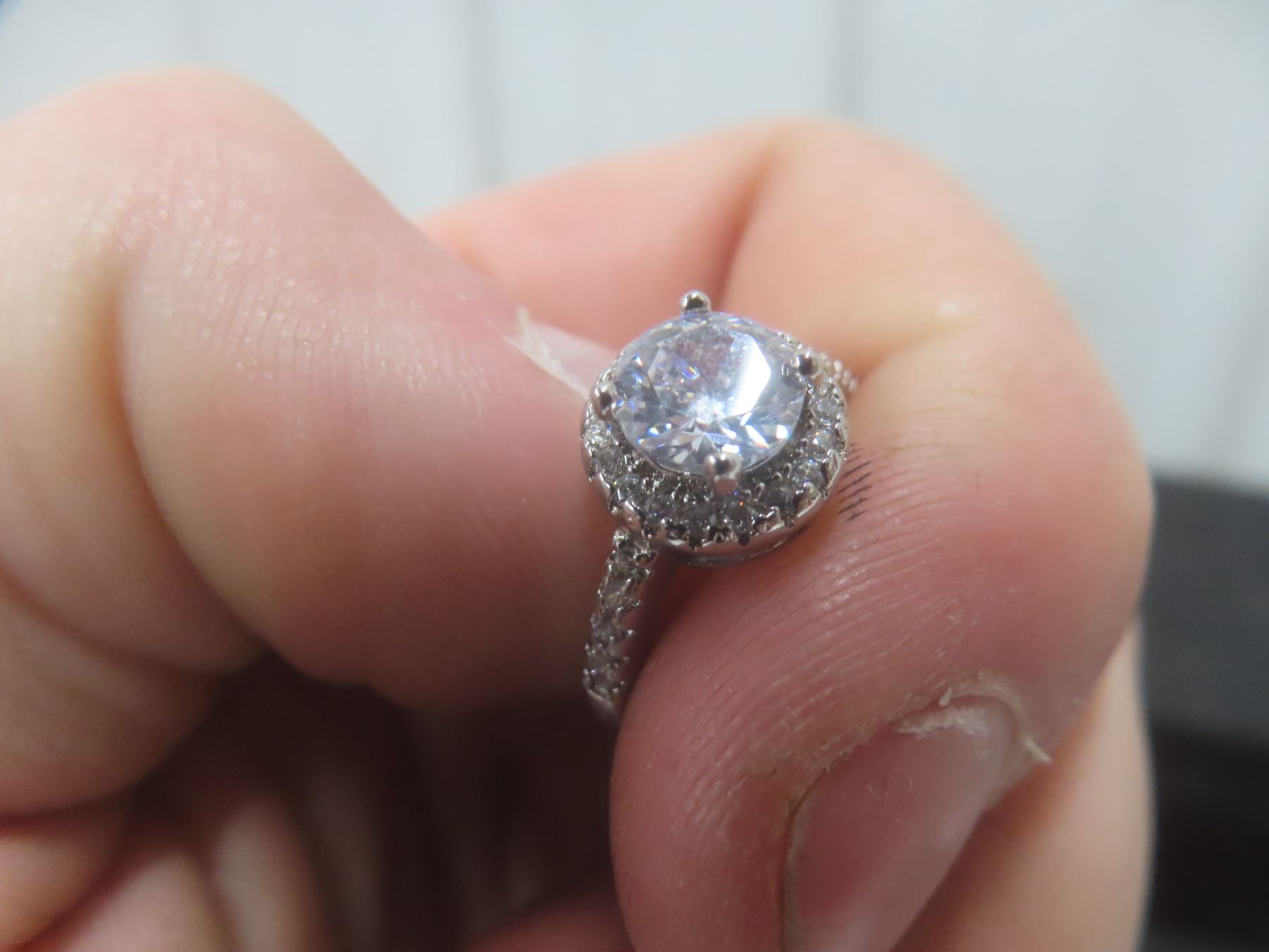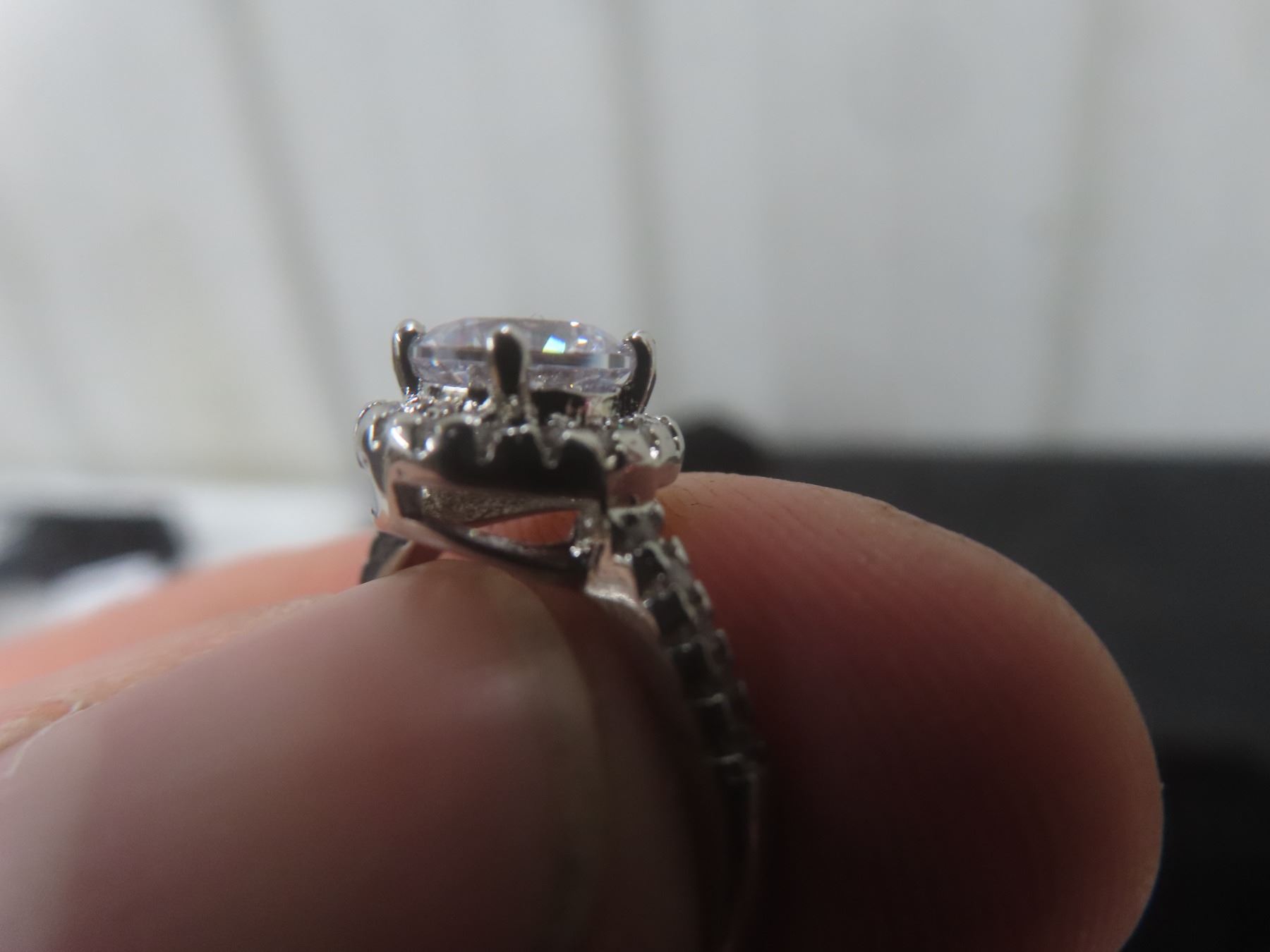 Lot 928B New Platinum Plated 1ct Simulated Diamond (CZ) Halo Ring – Resizable