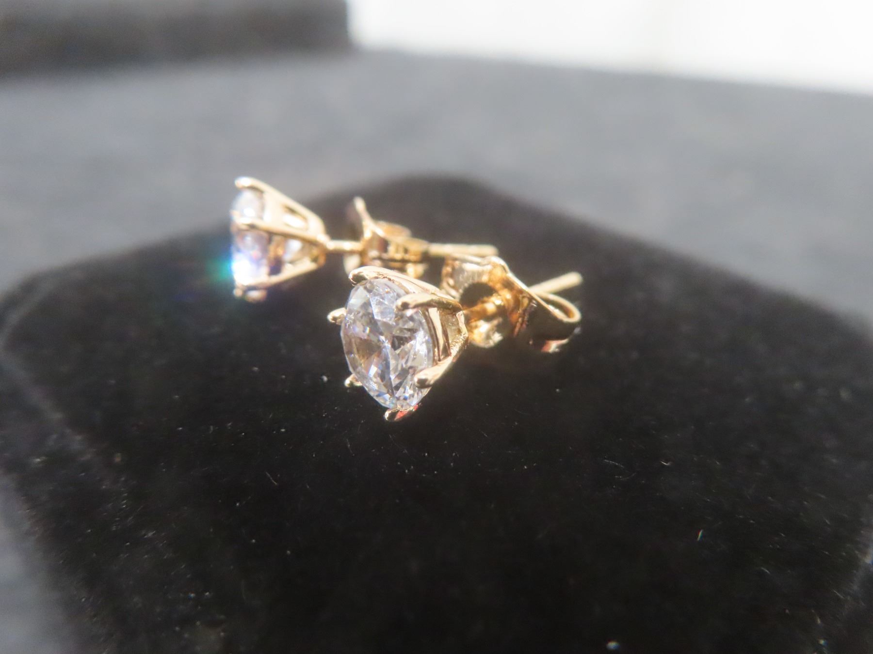 New 18K Gold Plated 0.8ct Each Simulated Diamond (CZ) Stud Earrings