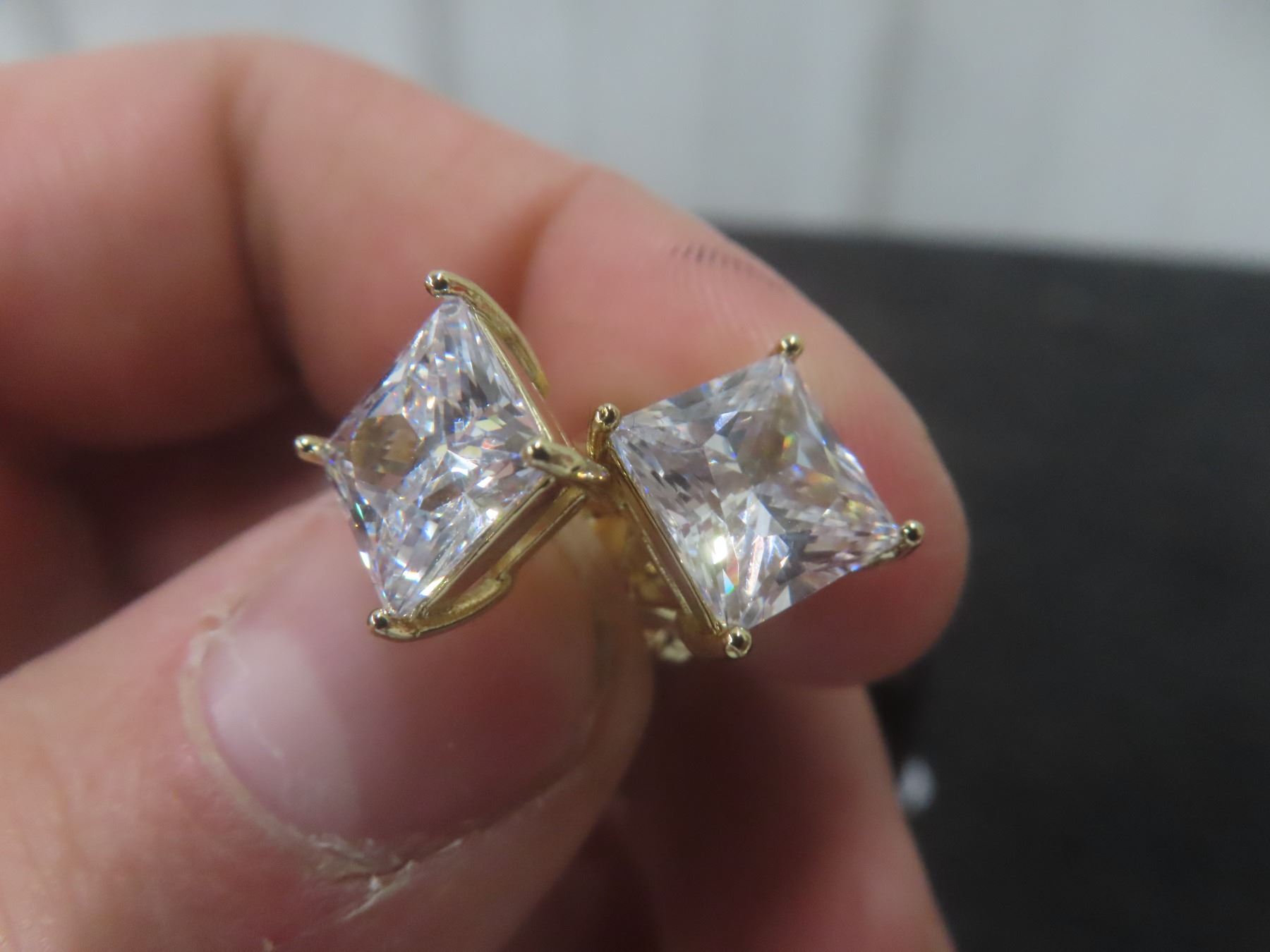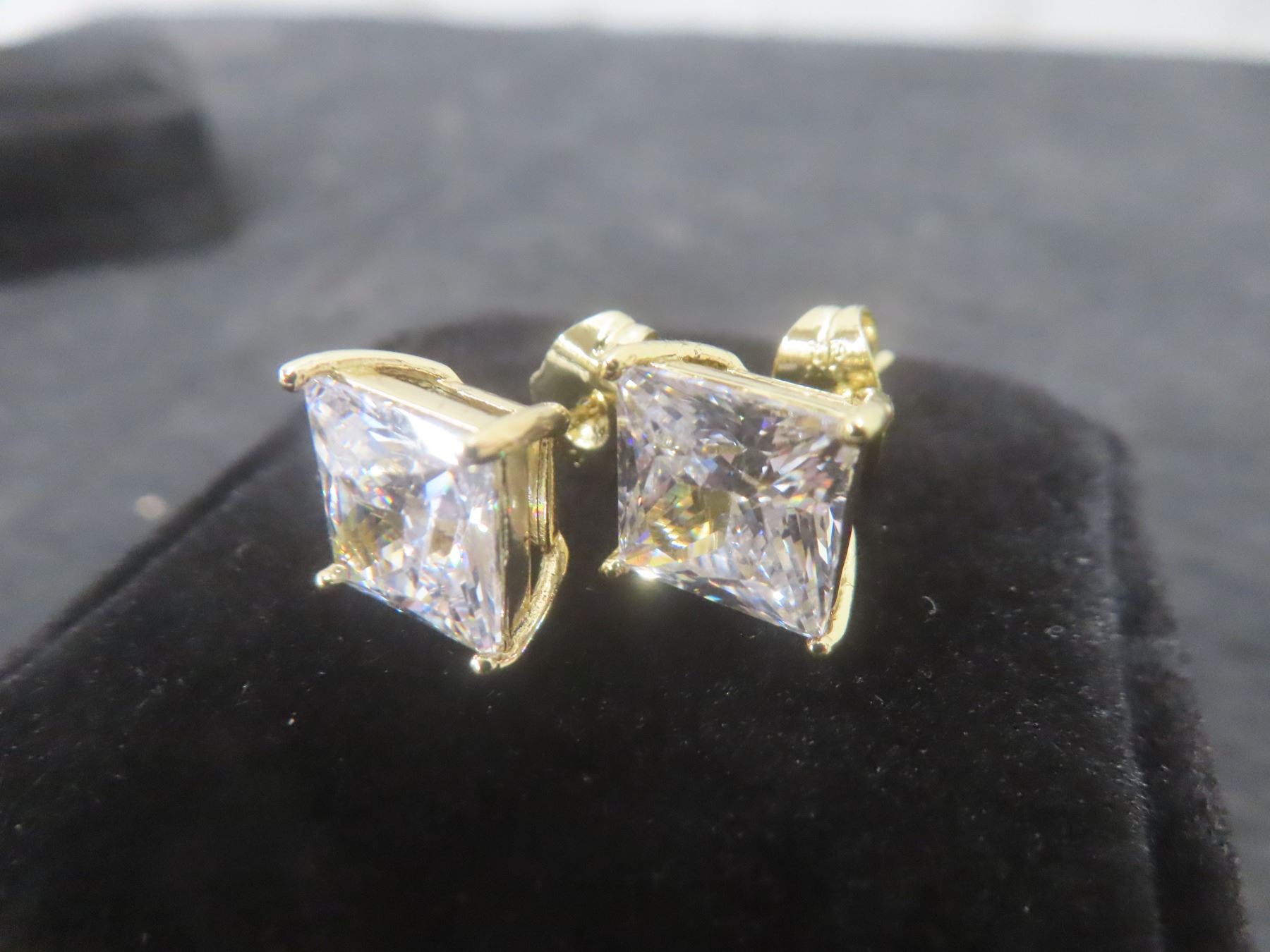 Lot 932B New 14K Gold Plated 3.0ct Each Princess Cut Simulated Diamond (CZ) Stud Earrings