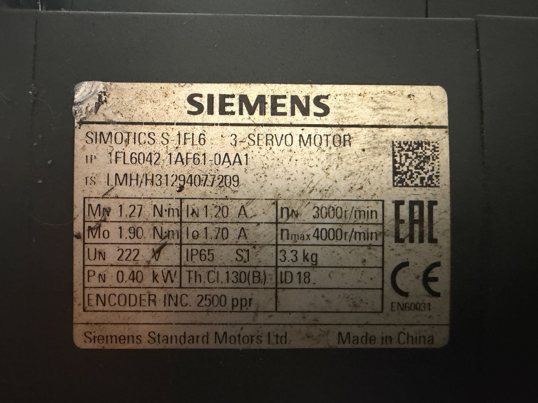 Siemens #1FL6042-1AF61-0AA1 Servo Motor