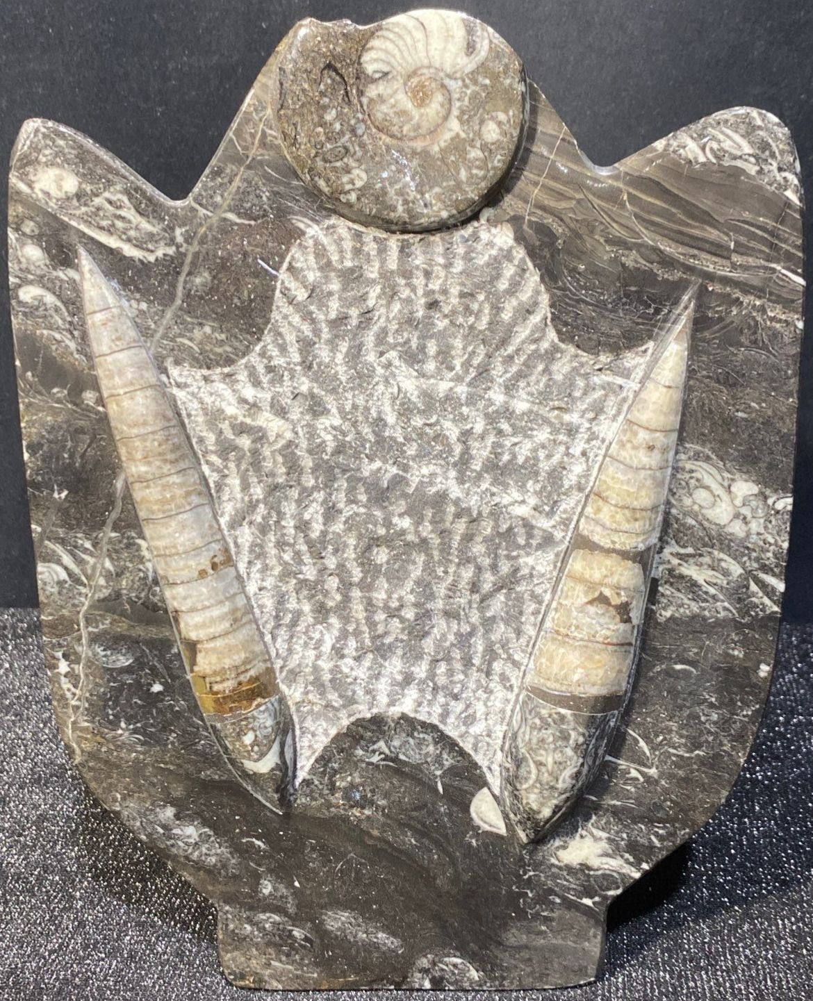 Their unique textures, spiral patterns, and contrasting tones make them exceptional decorative accents for collectors, geology enthusiasts, or anyone seeking a distinctive natural-history centerpiece. These statues offer both scientific fascination and timeless aesthetic appeal.