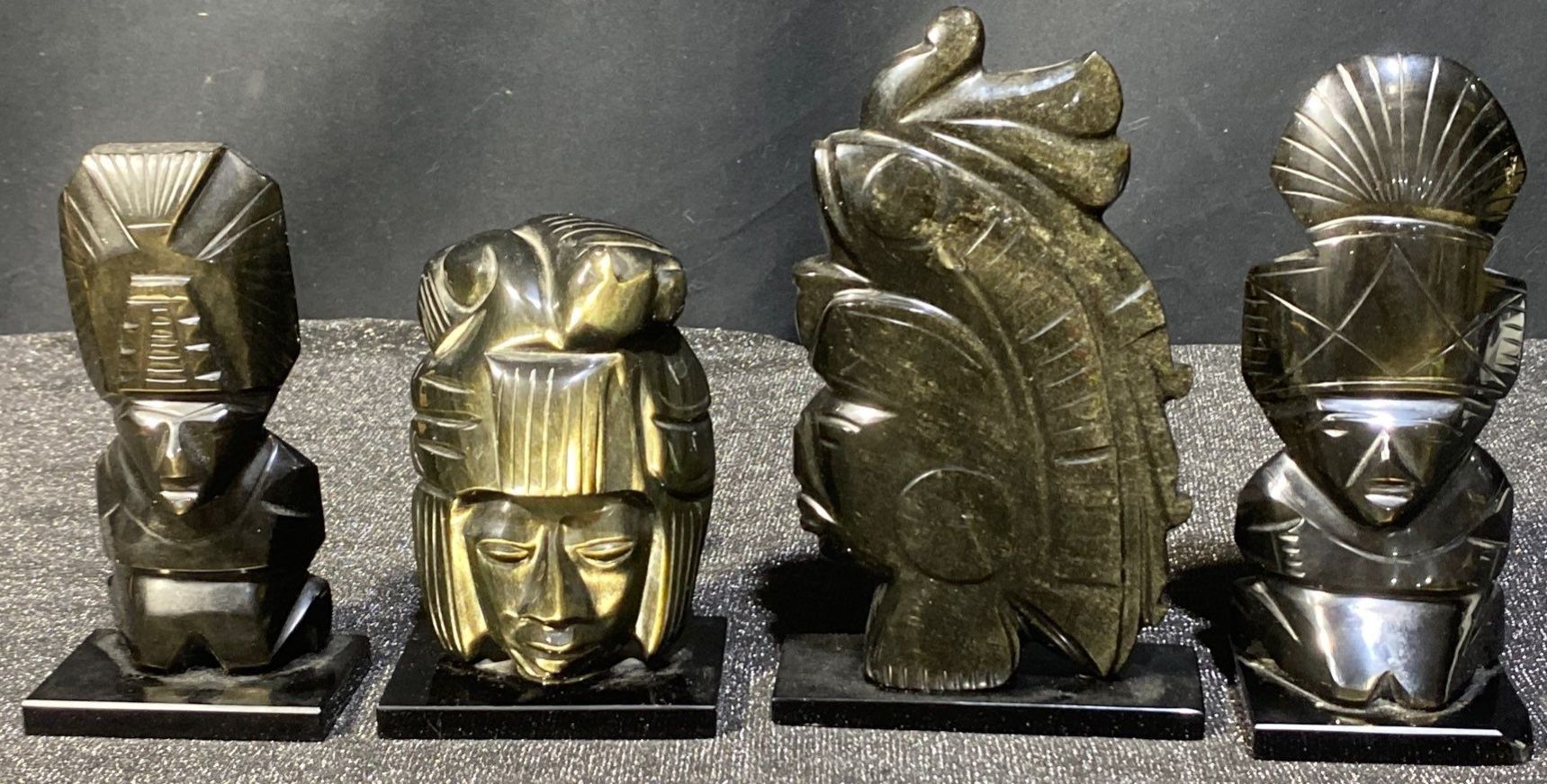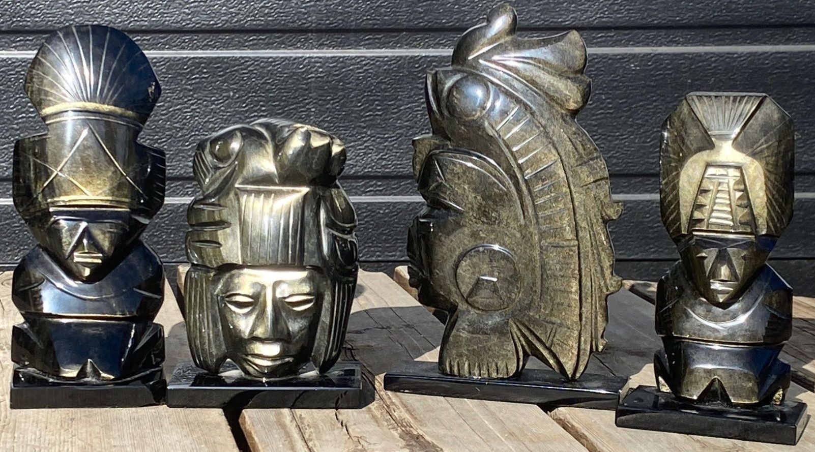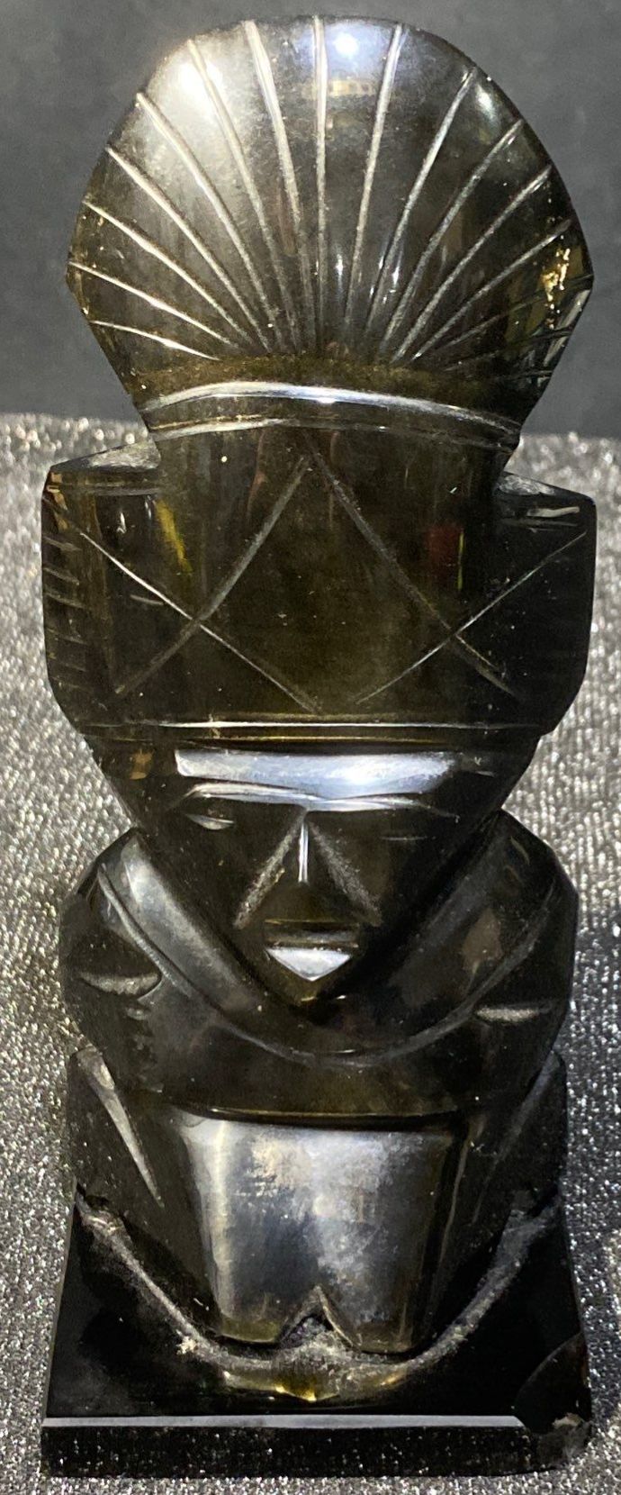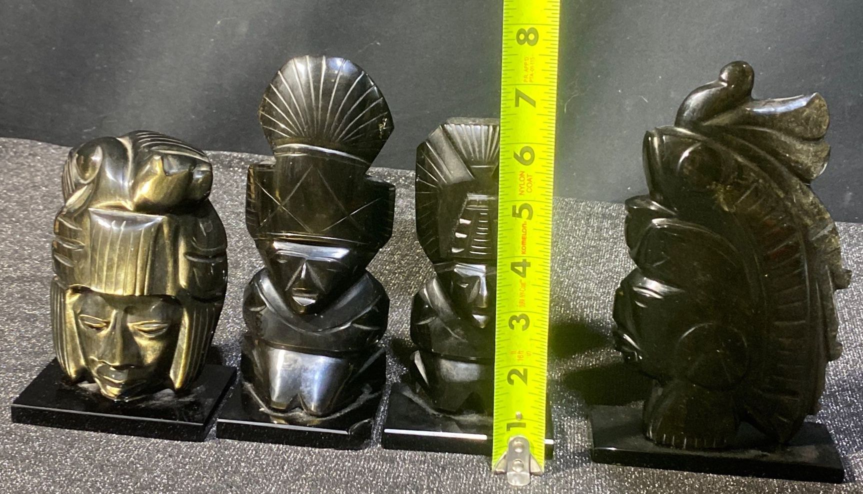 Lot 63 Hand Carved Black Obsidian Aztec Statues- Mexican Made