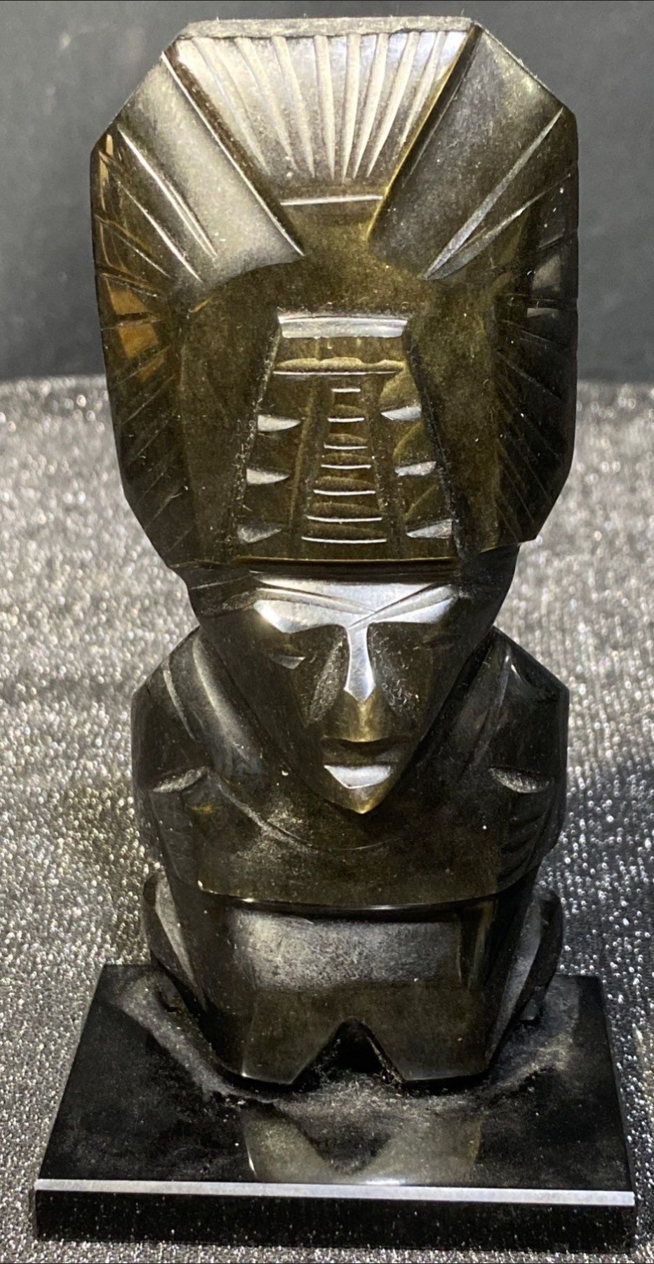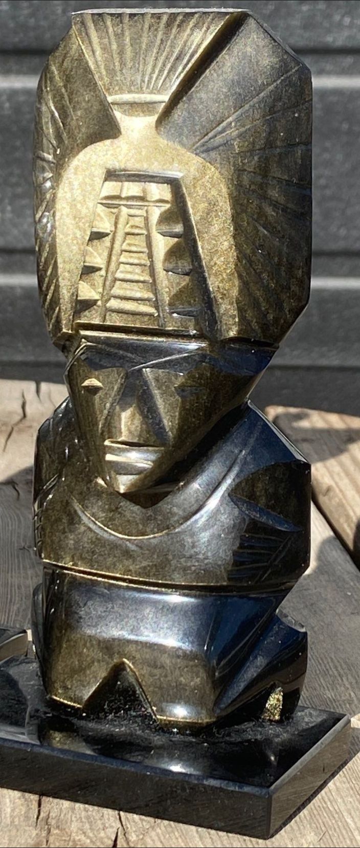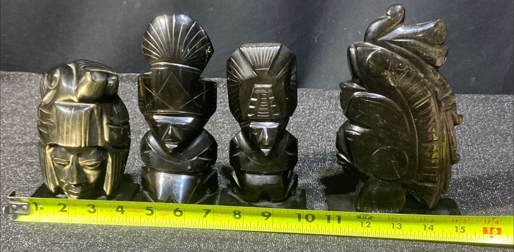 Lot 63 Hand Carved Black Obsidian Aztec Statues- Mexican Made