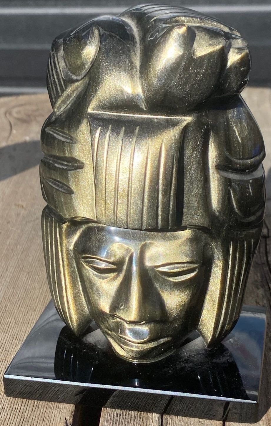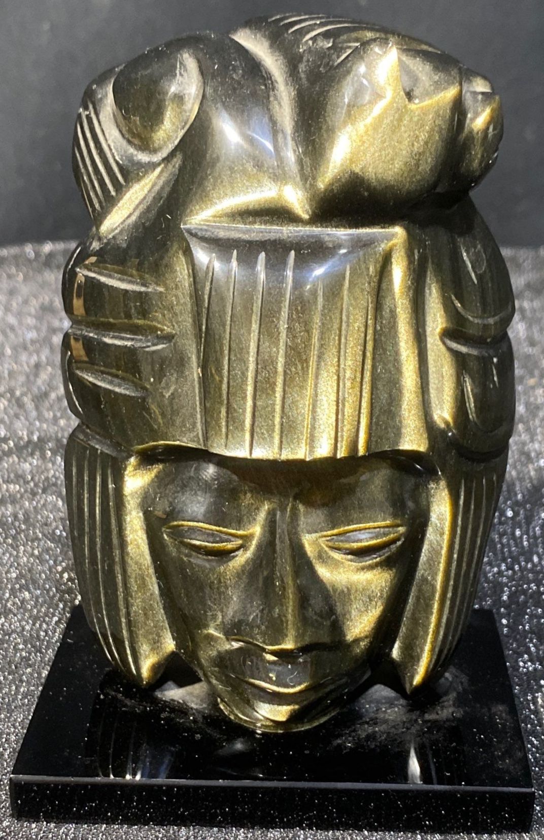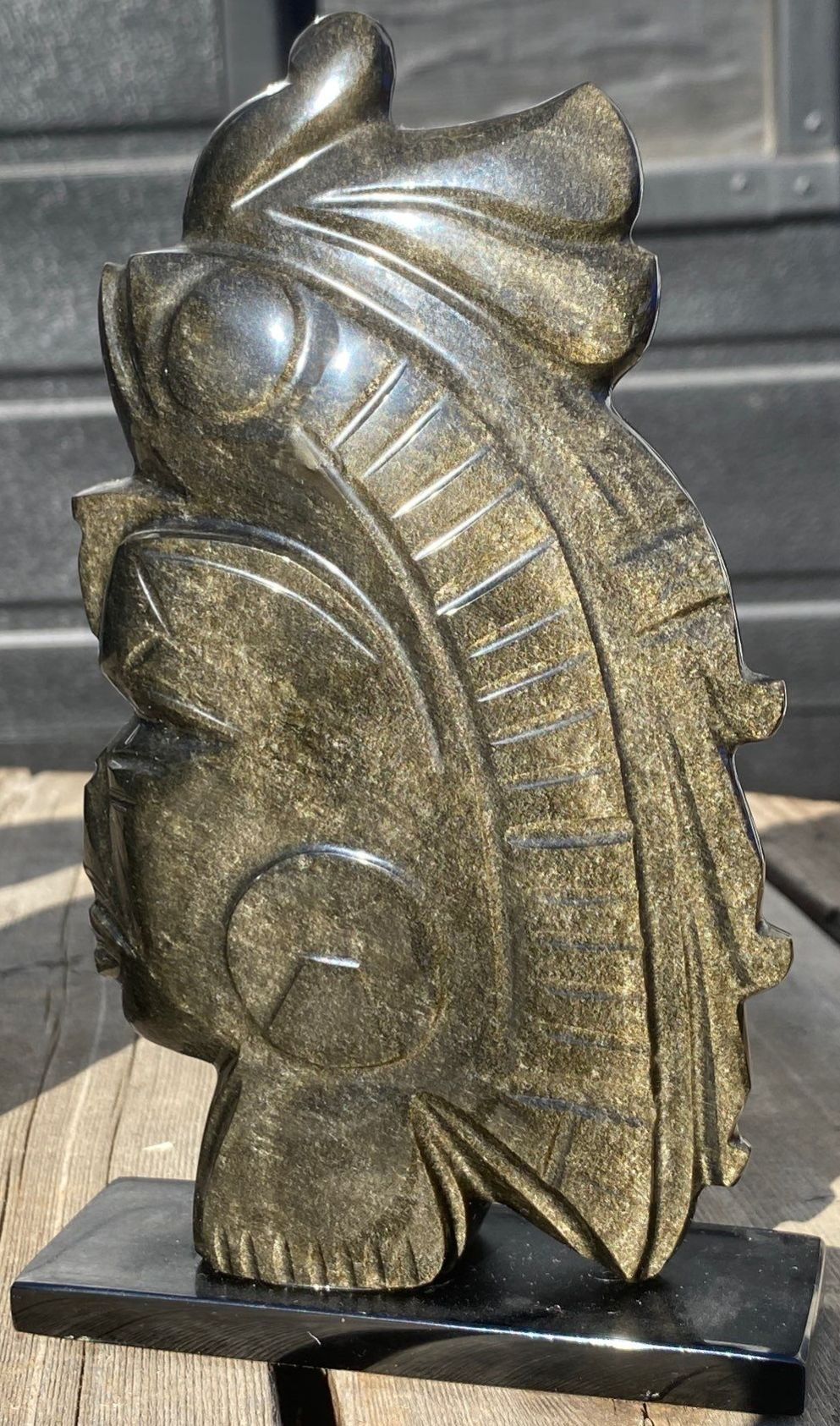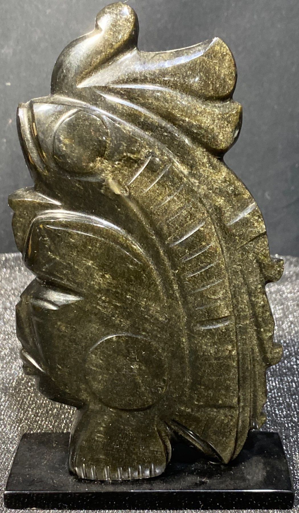 Lot 63 Hand Carved Black Obsidian Aztec Statues- Mexican Made