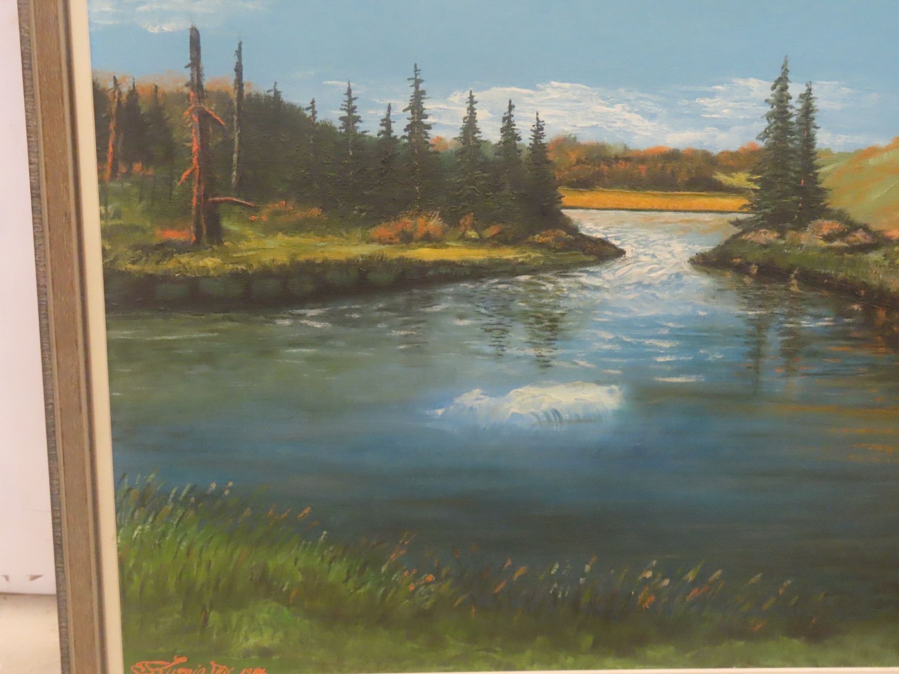 Framed Oil on Canvas, Wilderness Country-Side, Signed and Dated 1986, 24" × 30", Original