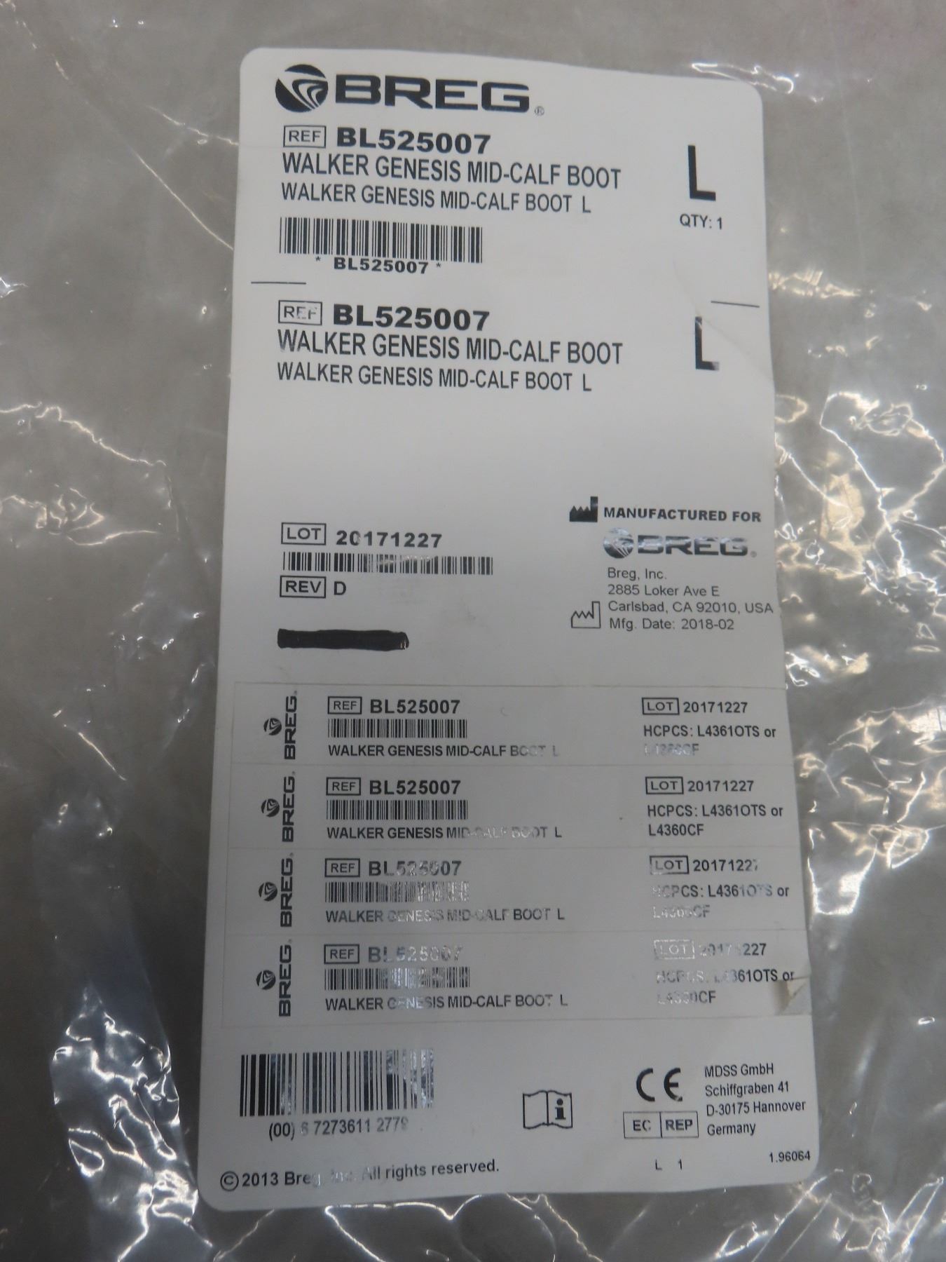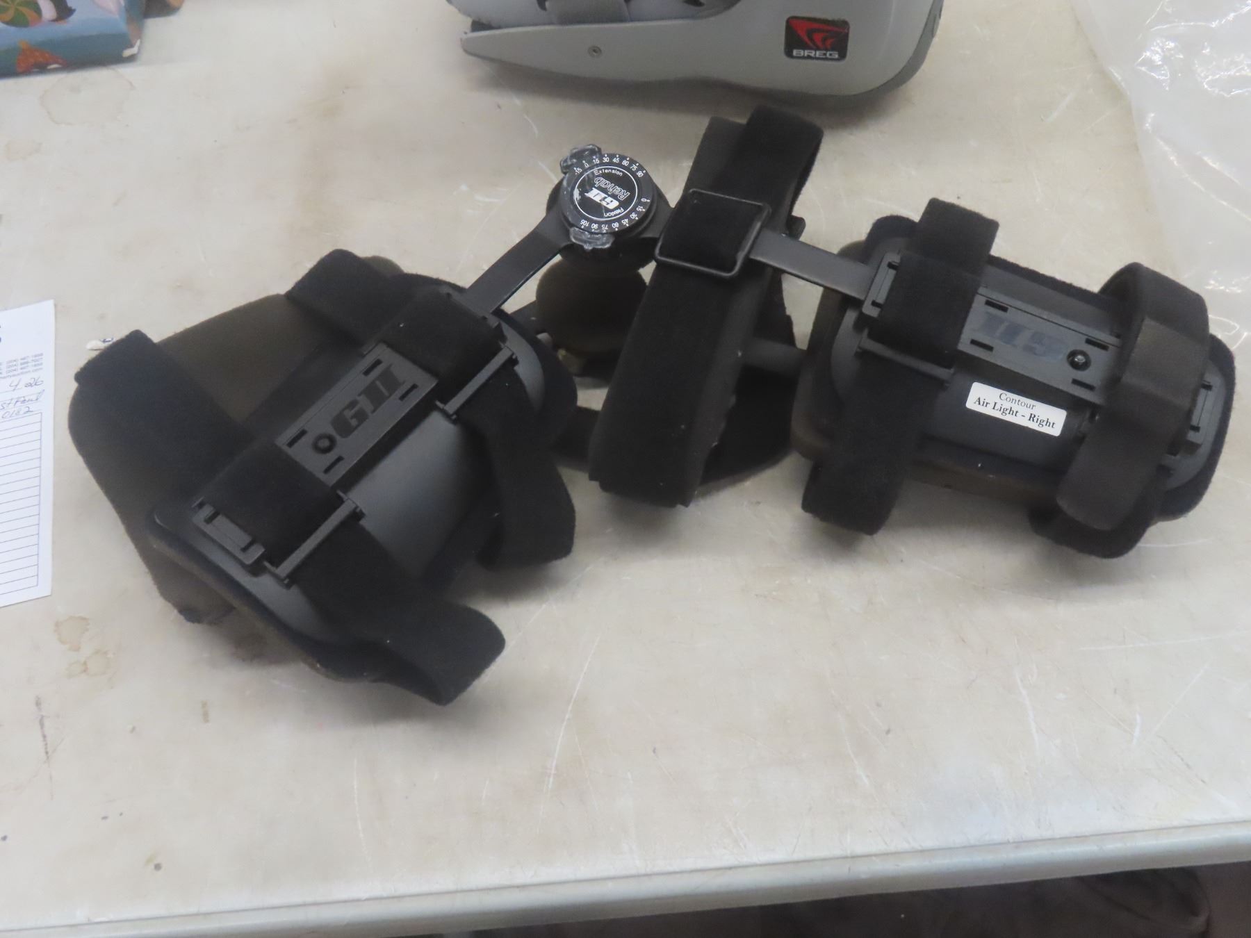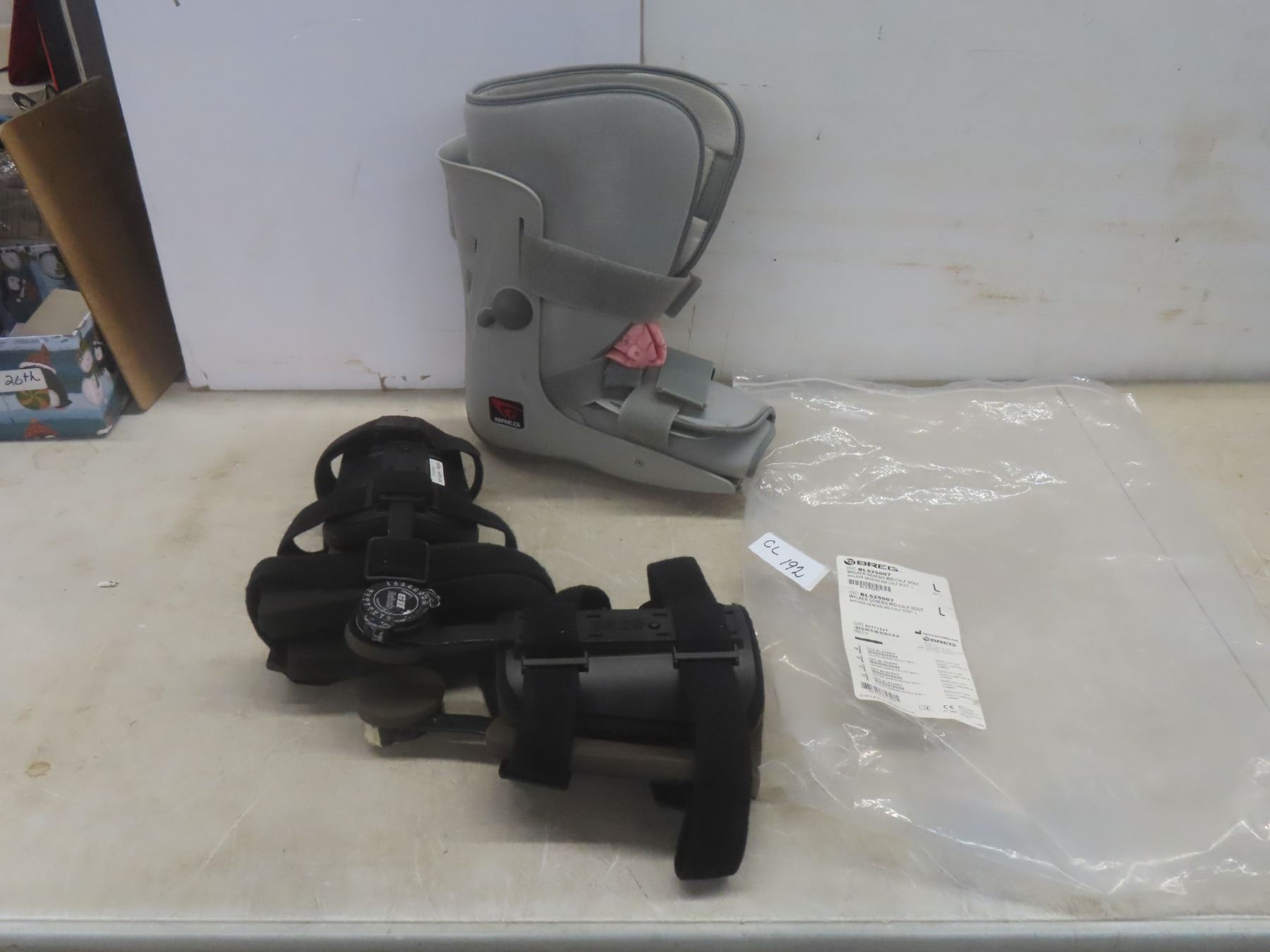 Breg Walking Mid-Calf Boot, Size Large; GII Rehab Knee Brace, Adjustable