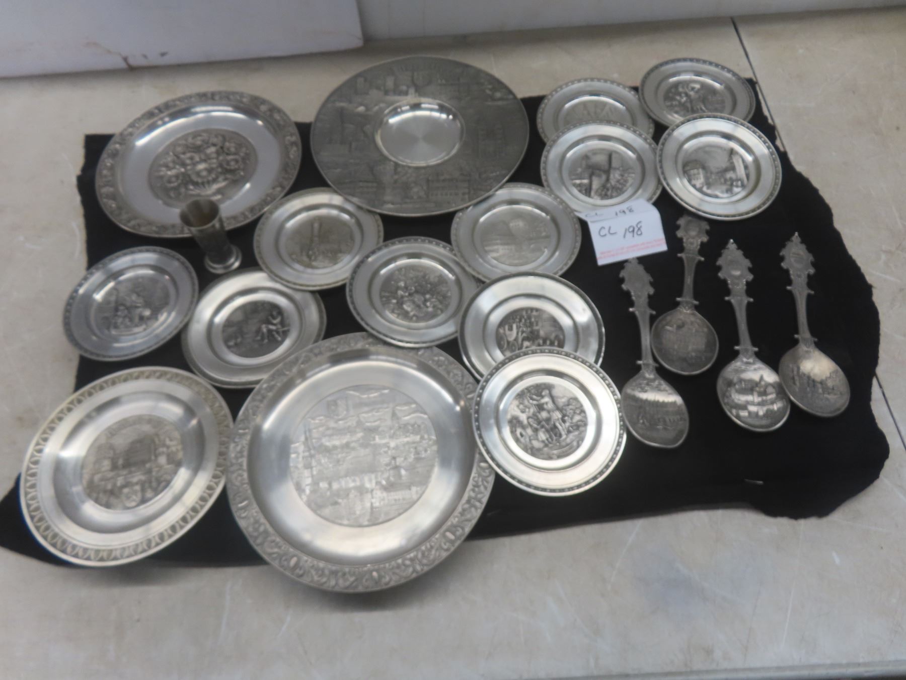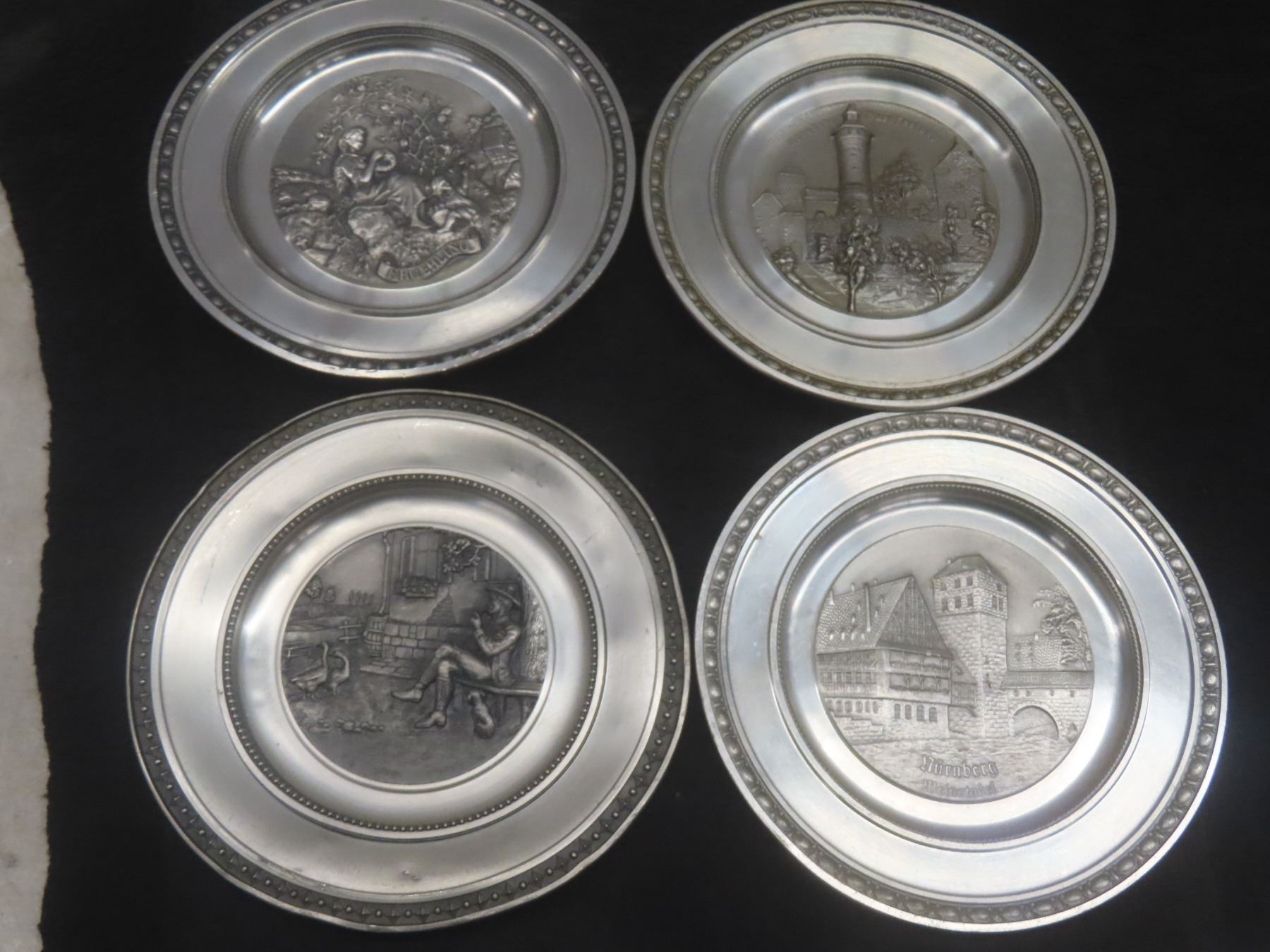 Lot 198 Zinn Made in W Germany 95% Pewter Wall Plates, Various German Cities and Shield