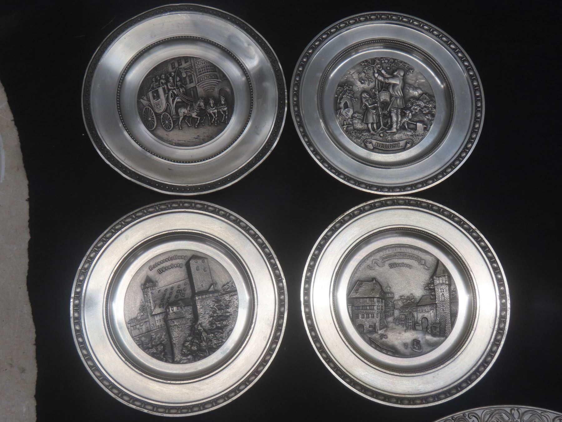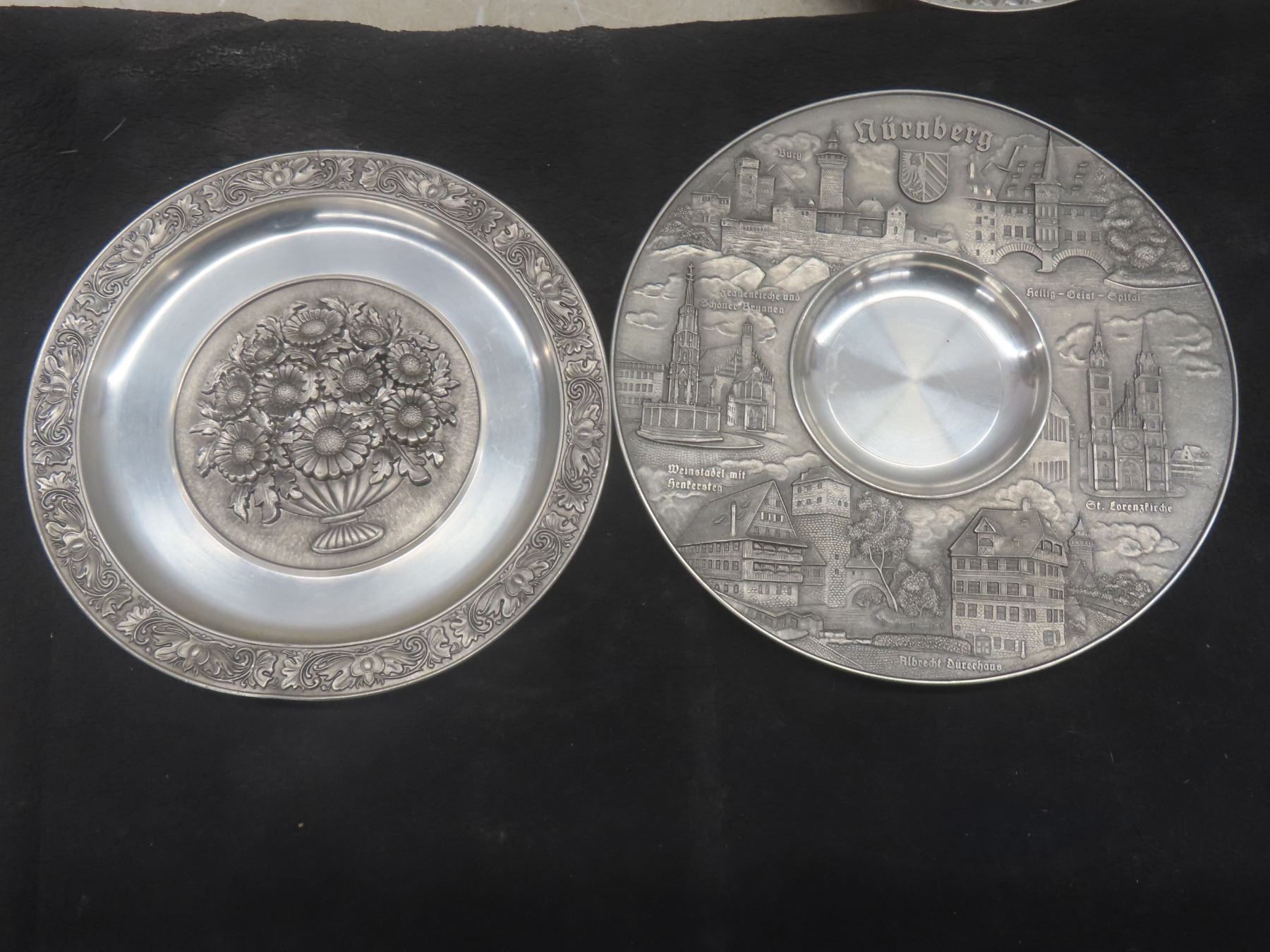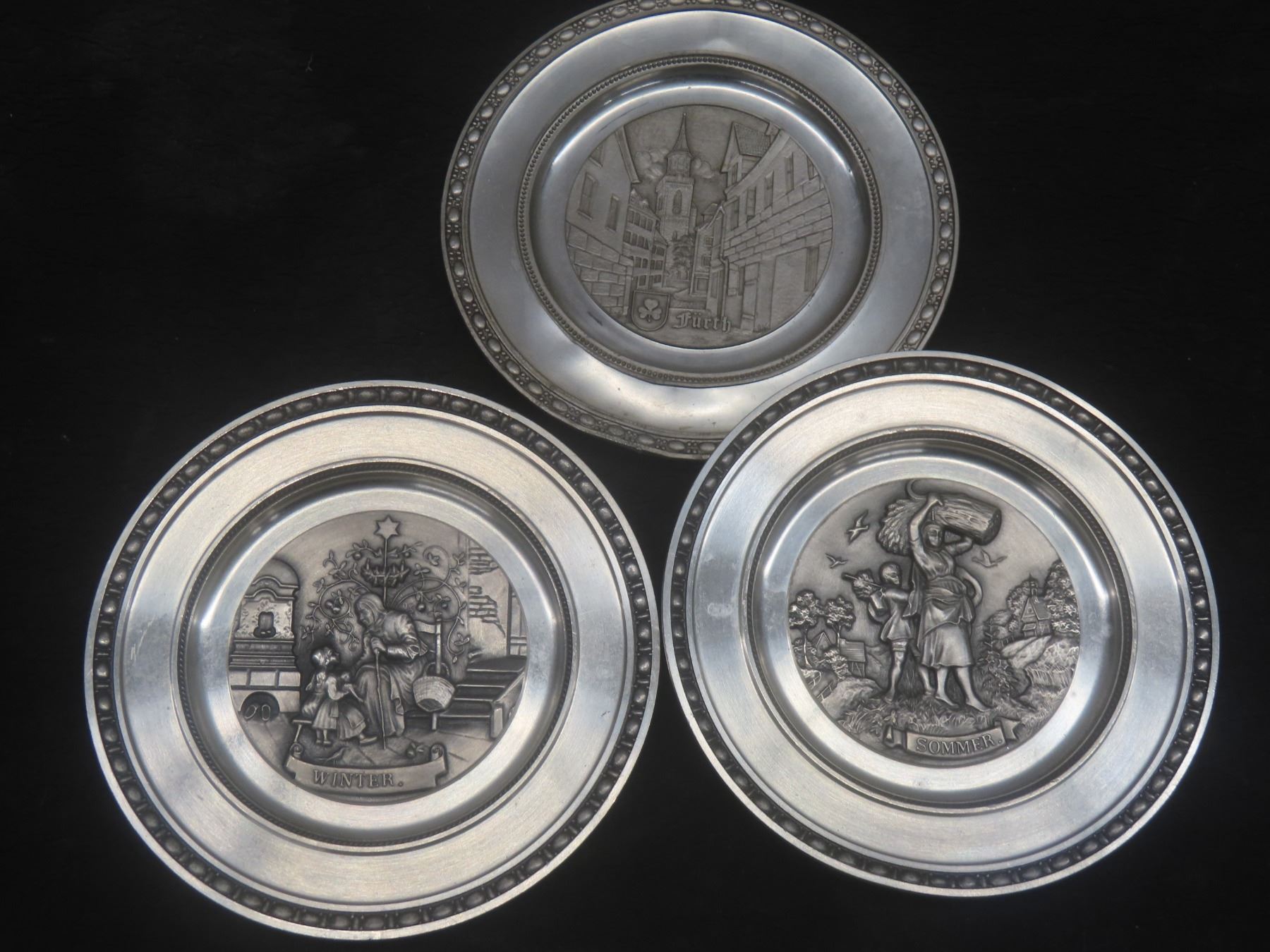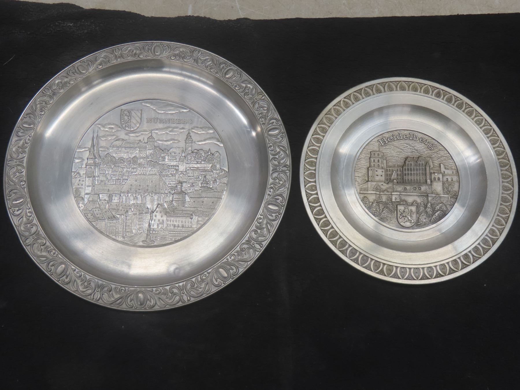 Zinn Made in W Germany 95% Pewter Wall Plates, Various German Cities and Shield