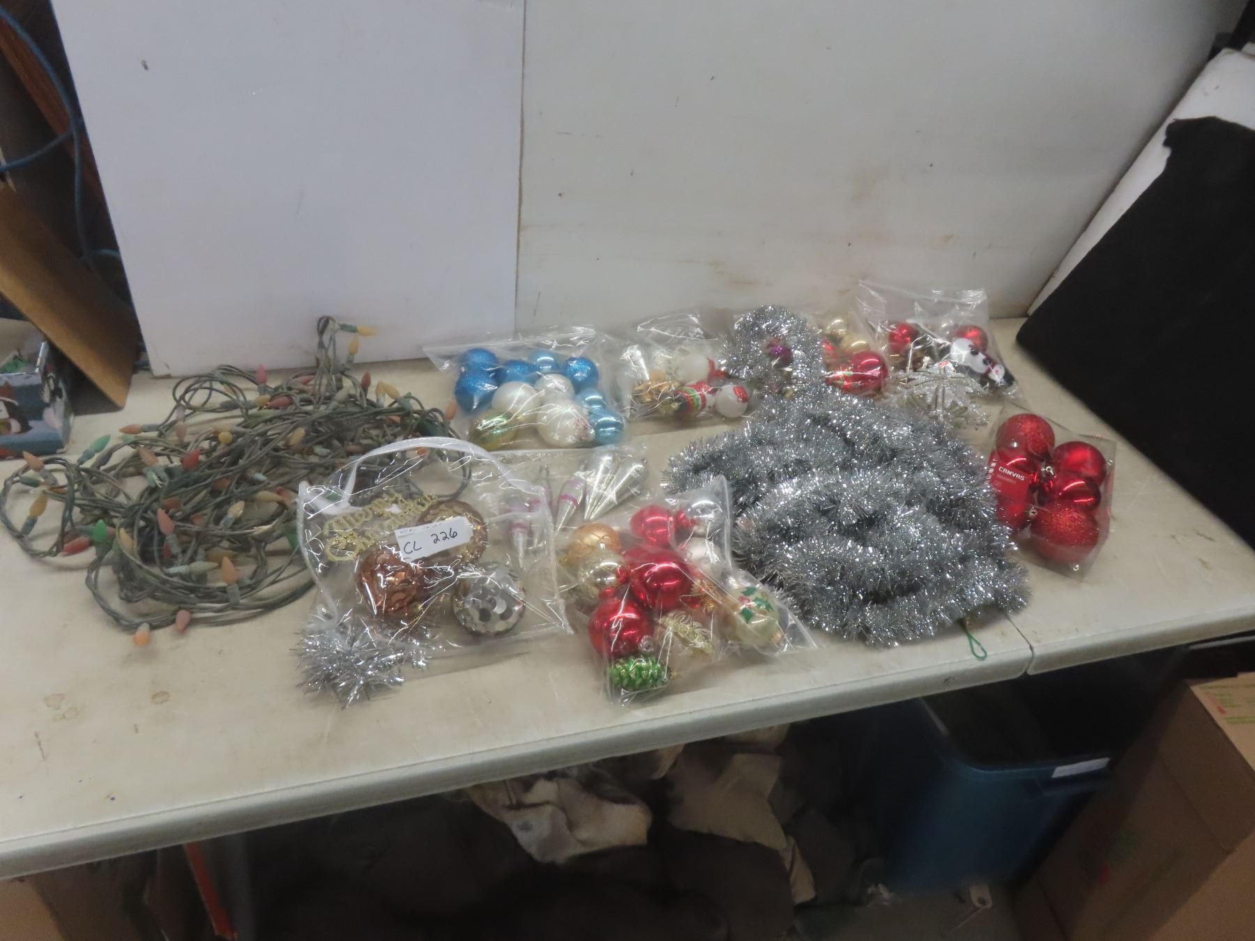 Lot 226 Christmas Ornaments, Trim Garland and Lights