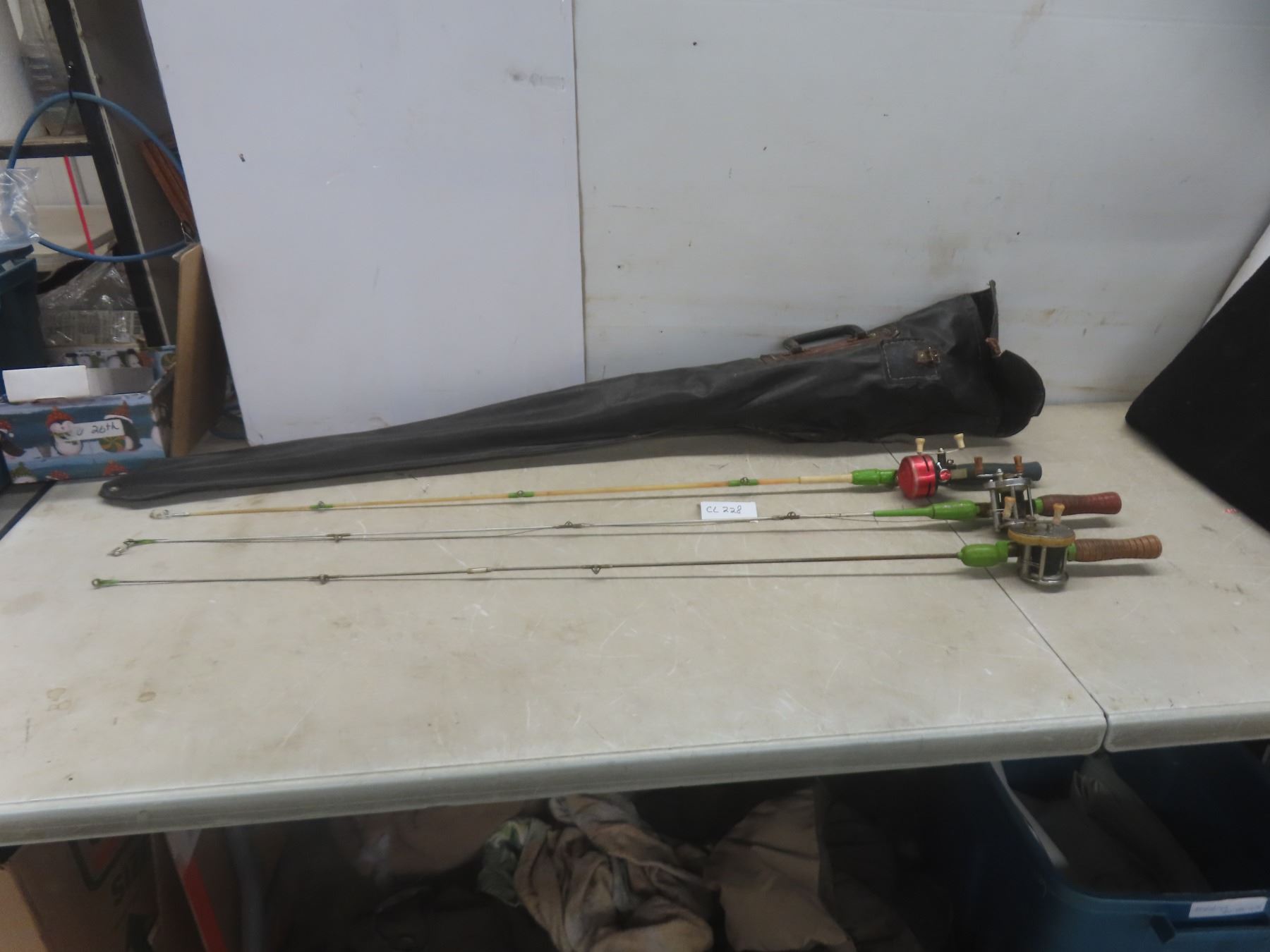 Lot 228 3 Vintage Fishing Rods and Reels with Carrying Case